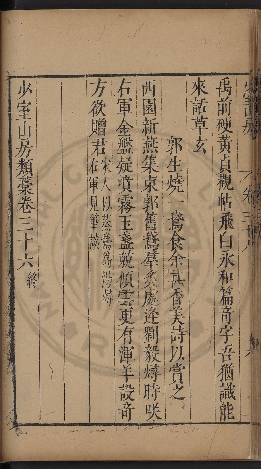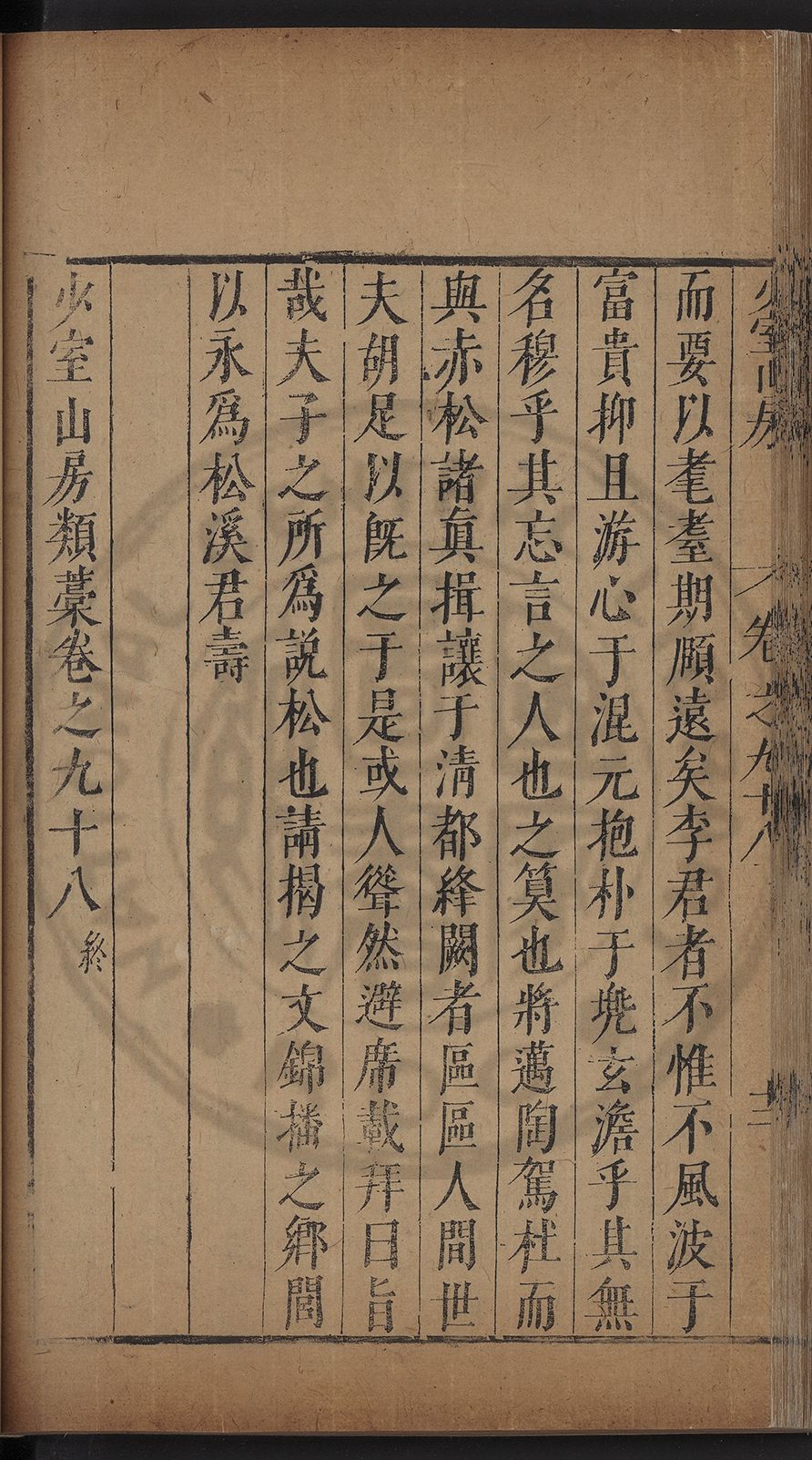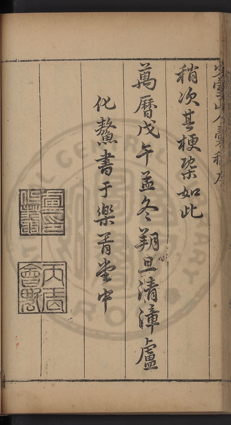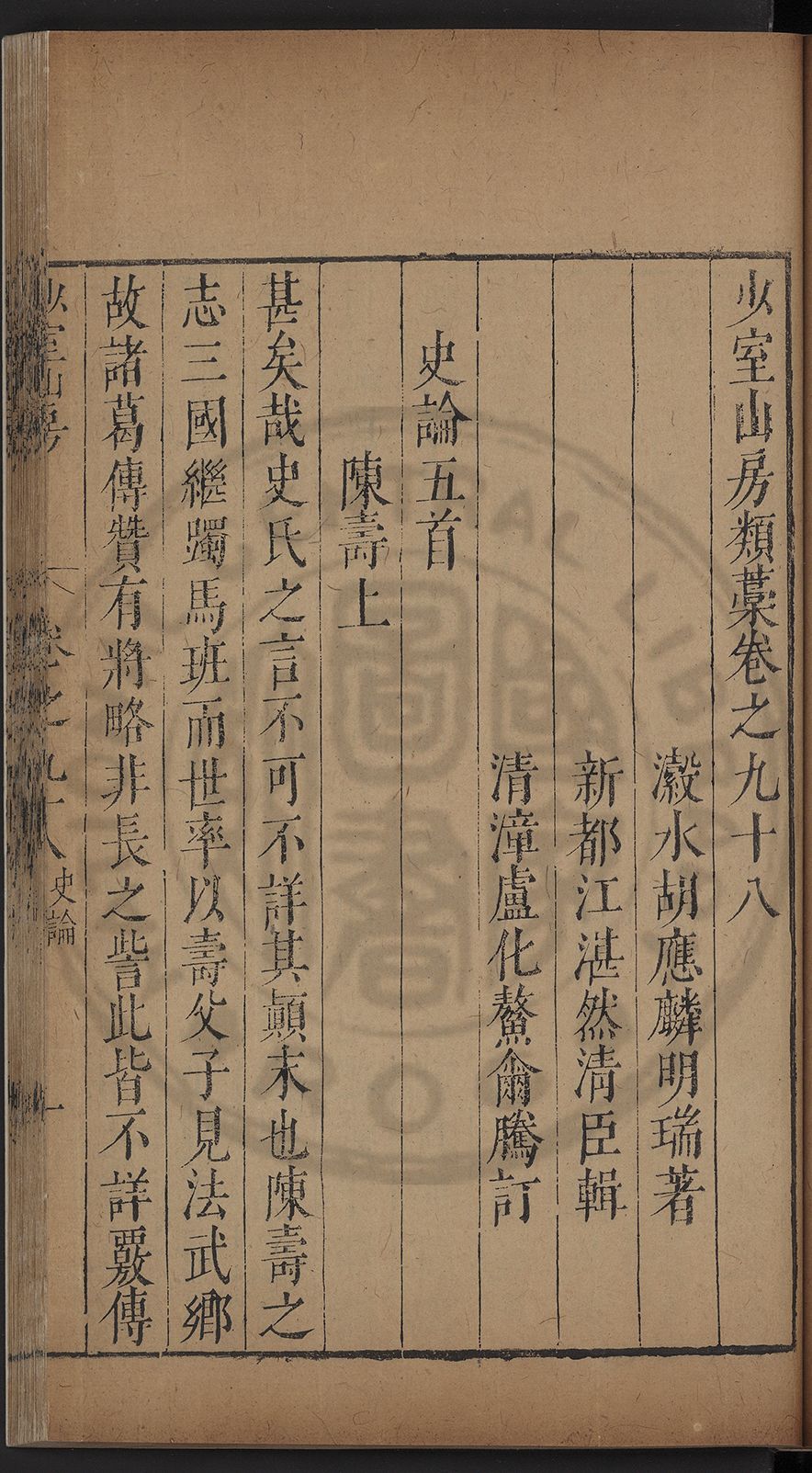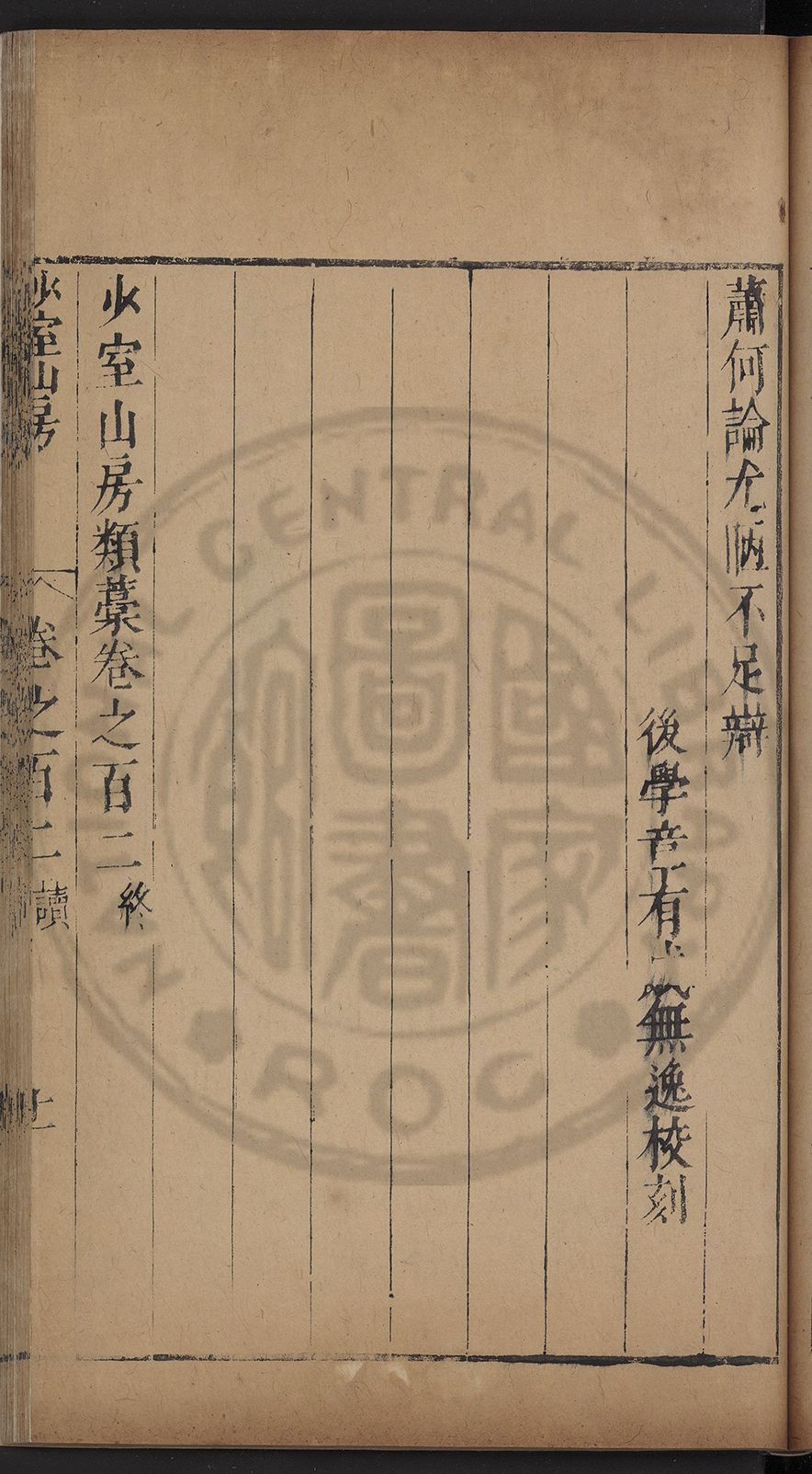 (萬曆戊午三月七之日弟幼清啜洞荼分甘趙文鎮園筍扵碧桃花下讐杖百一卷至二十卷完政其字者二十有九刊補□衍者十三字江清臣記)