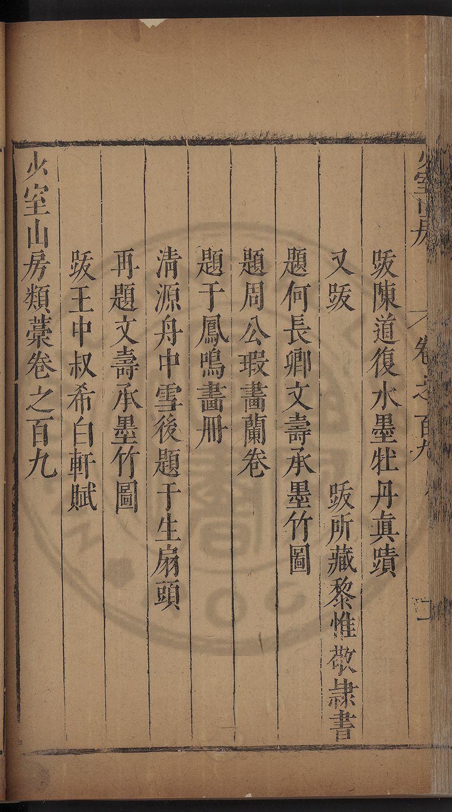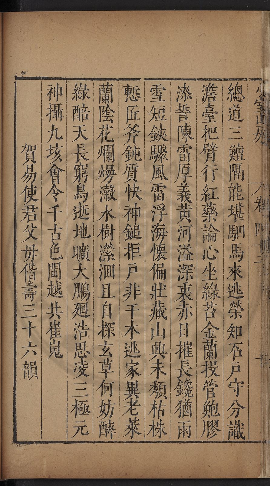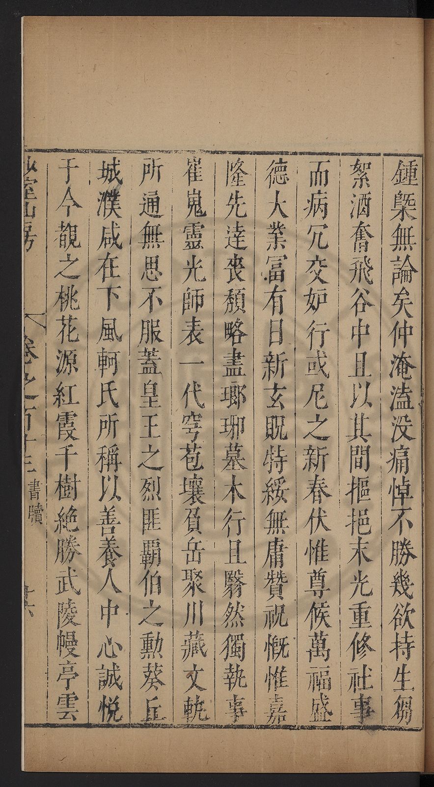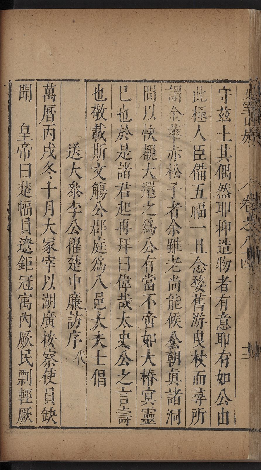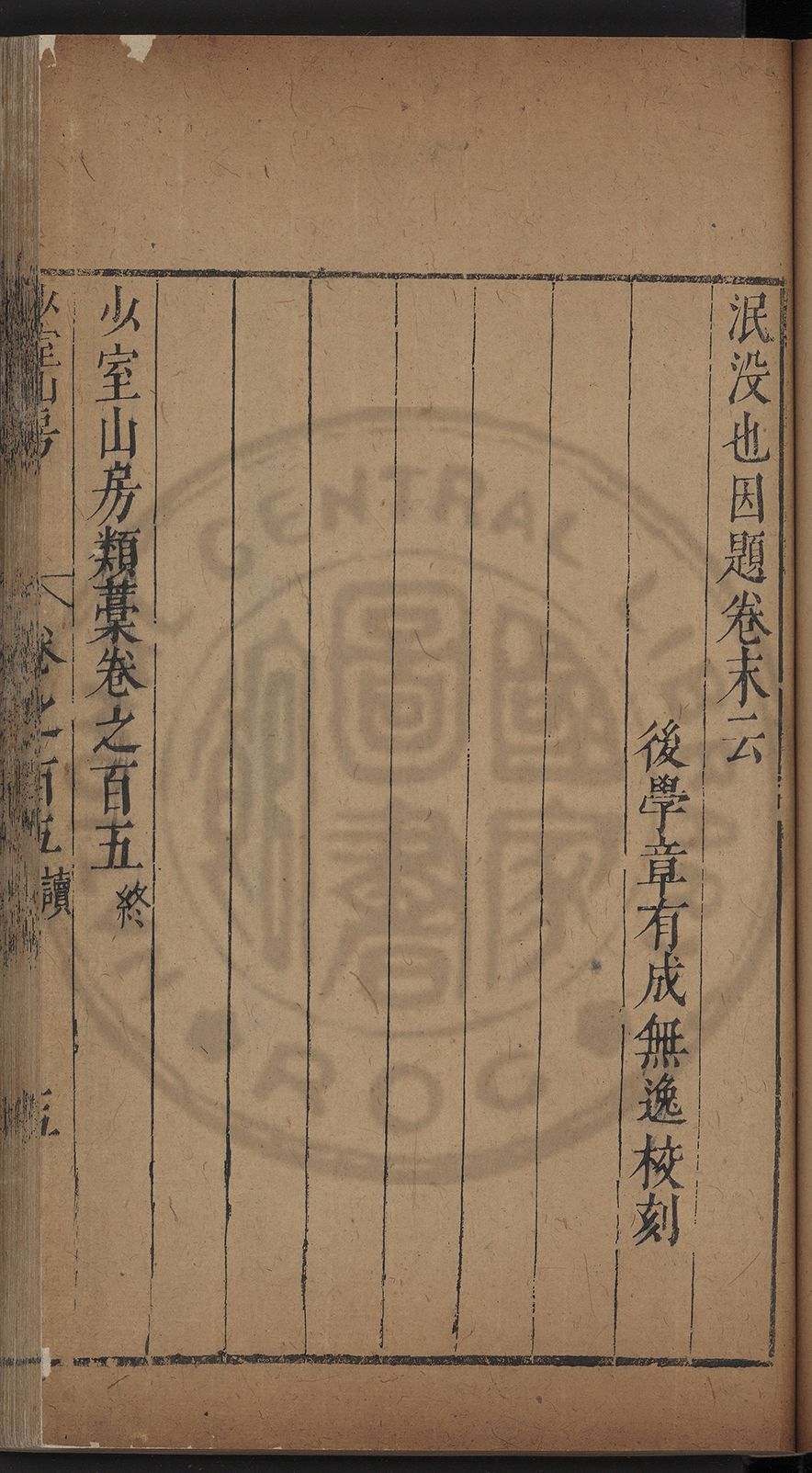 (萬曆戊午三月七之日弟幼清啜洞荼分甘趙文鎮園筍扵碧桃花下讐杖百一卷至二十卷完政其字者二十有九刊補□衍者十三字江清臣記)