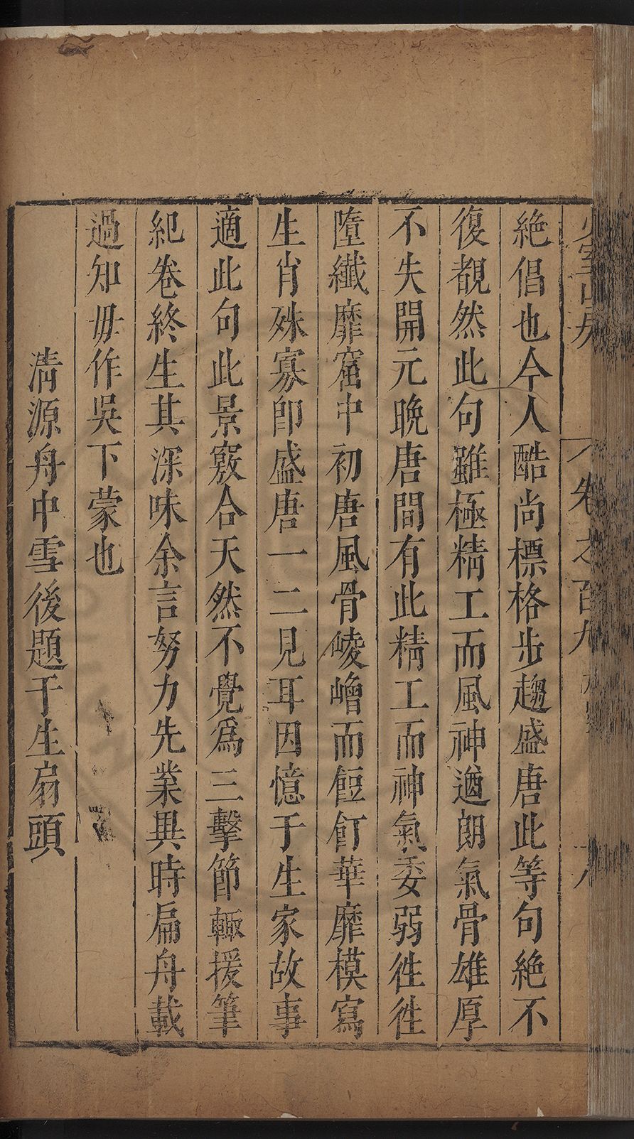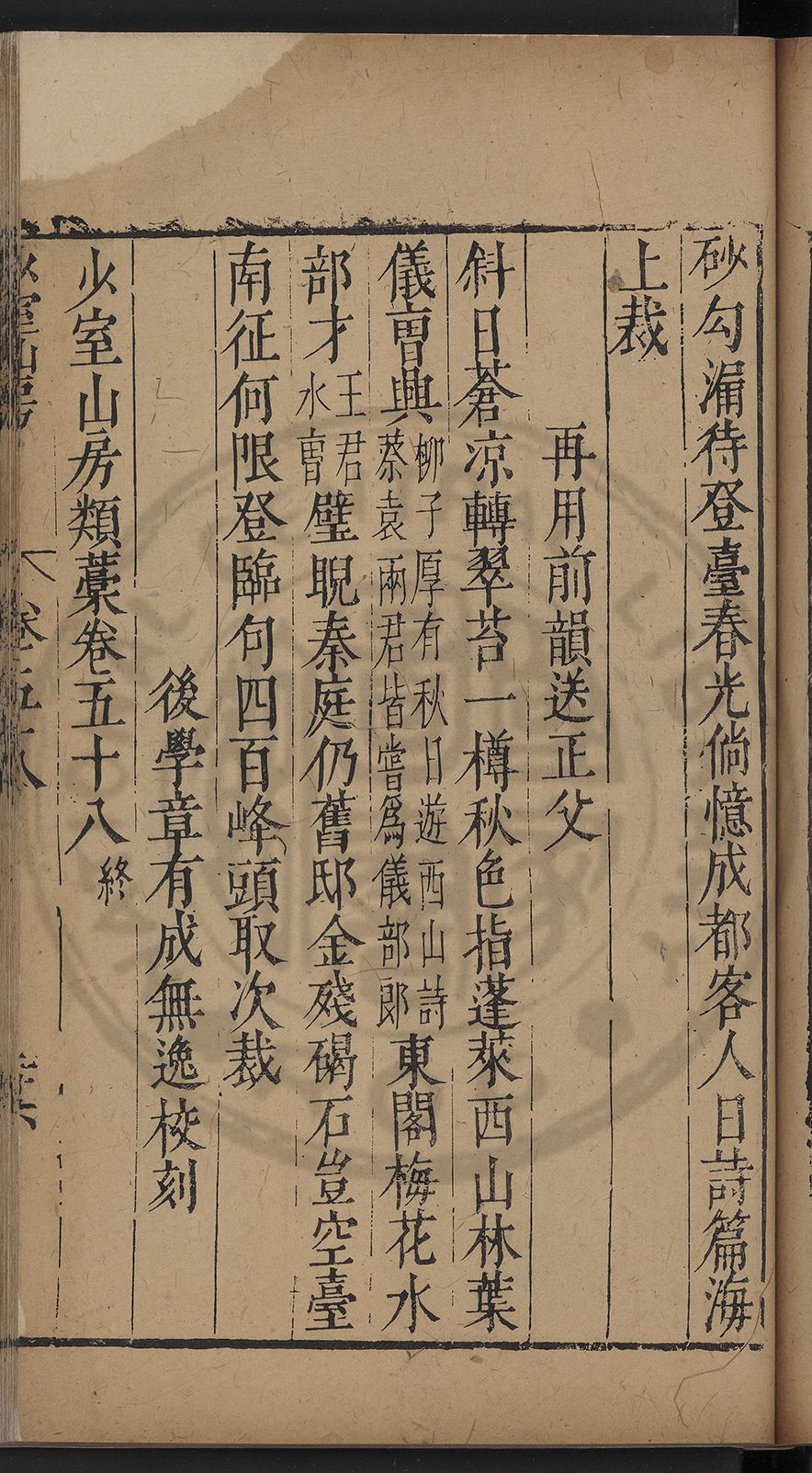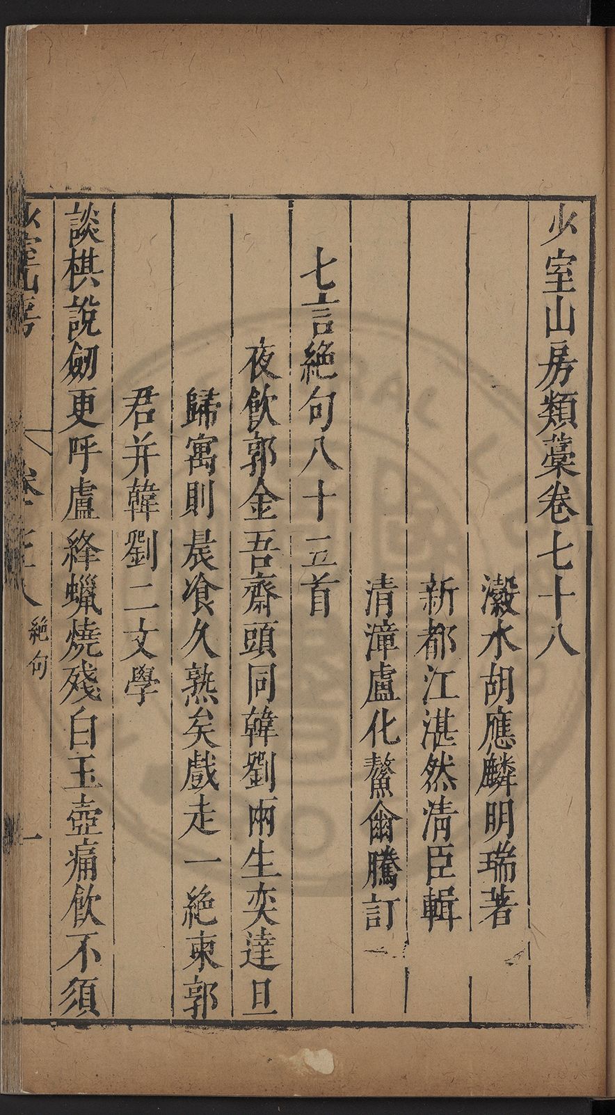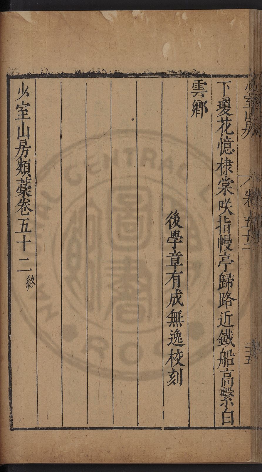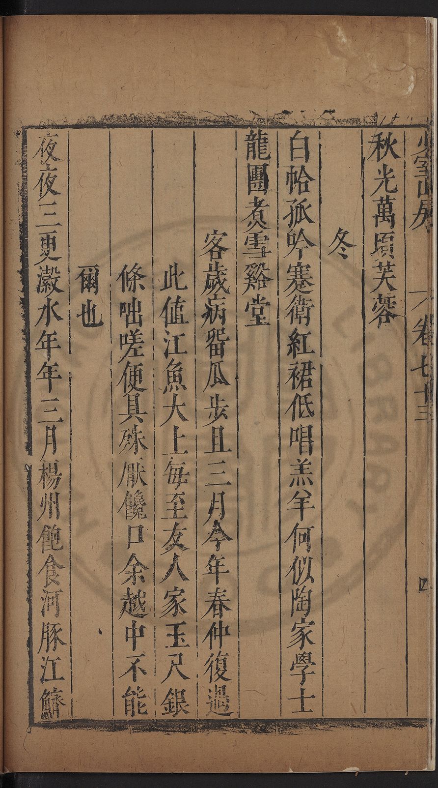 (萬曆戊午三月七之日弟幼清啜洞荼分甘趙文鎮園筍扵碧桃花下讐杖百一卷至二十卷完政其字者二十有九刊補□衍者十三字江清臣記)