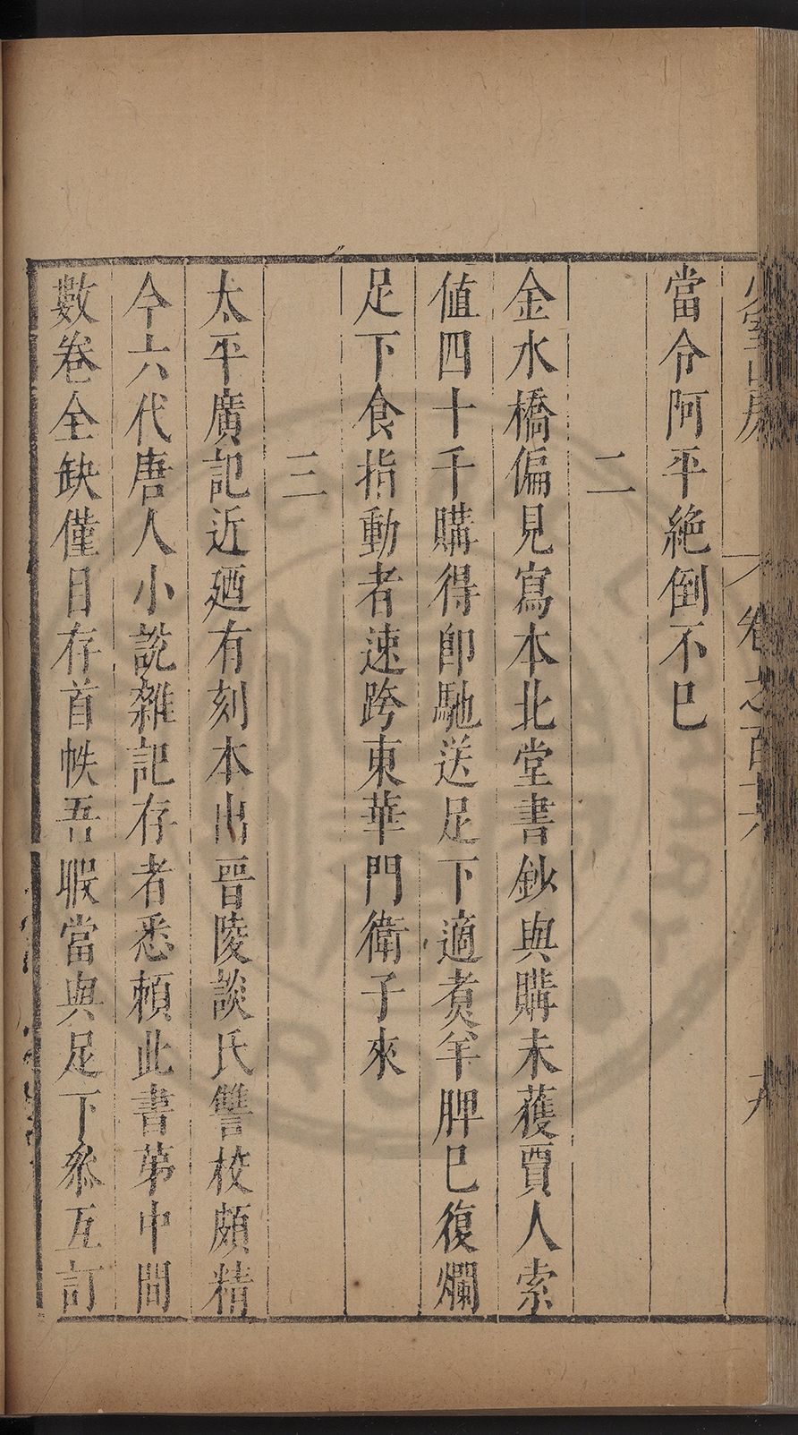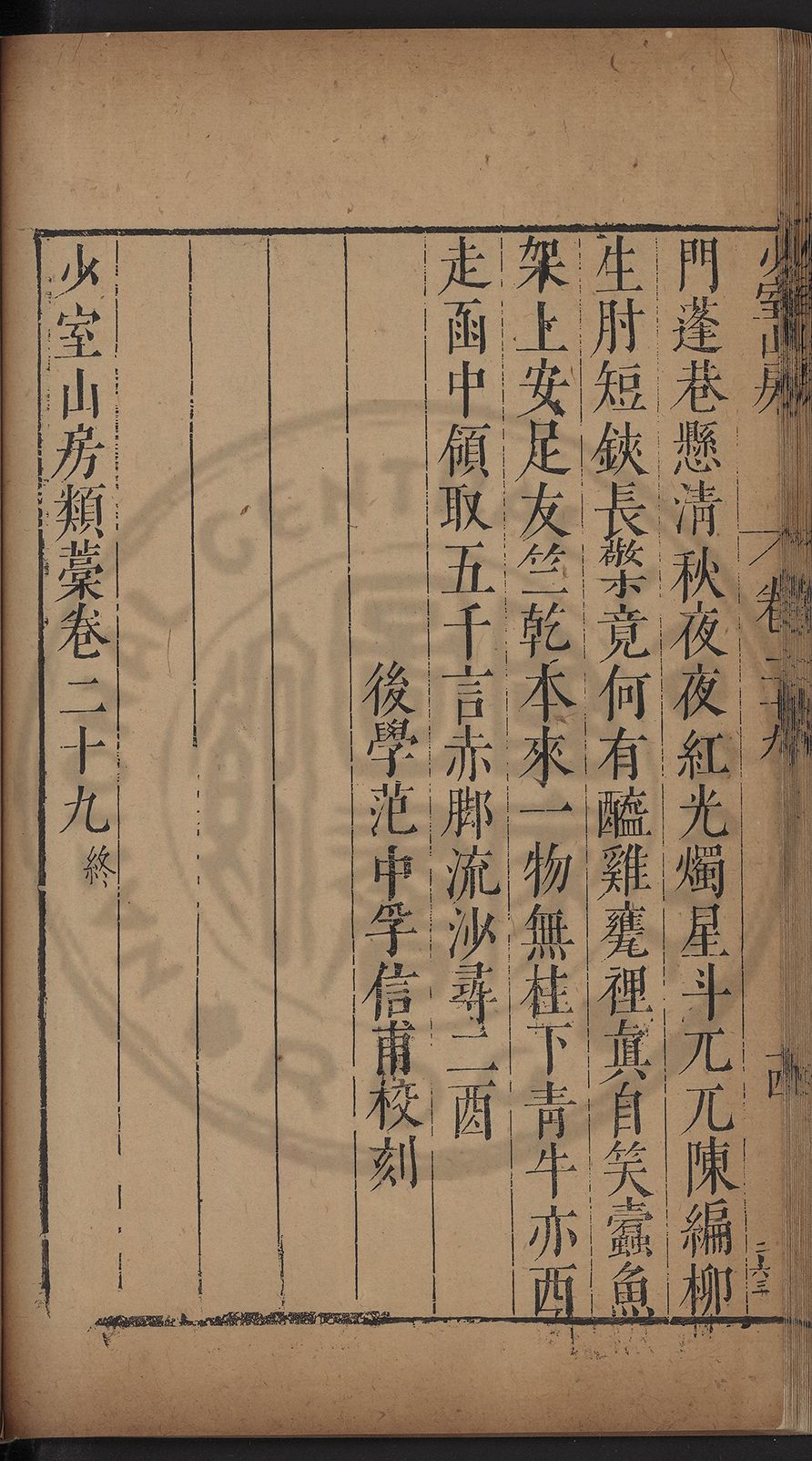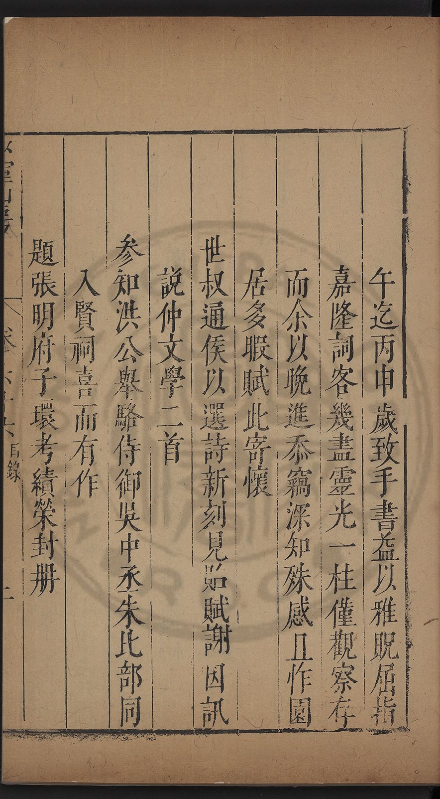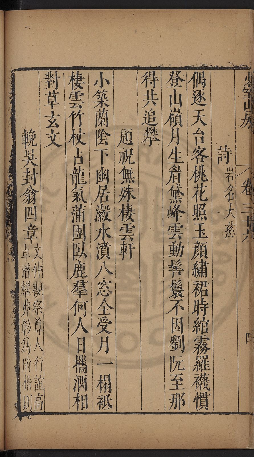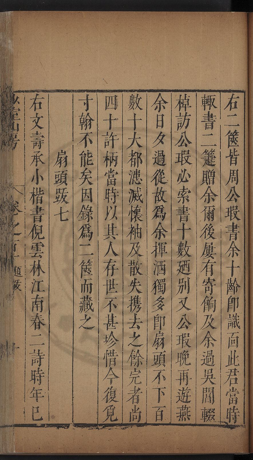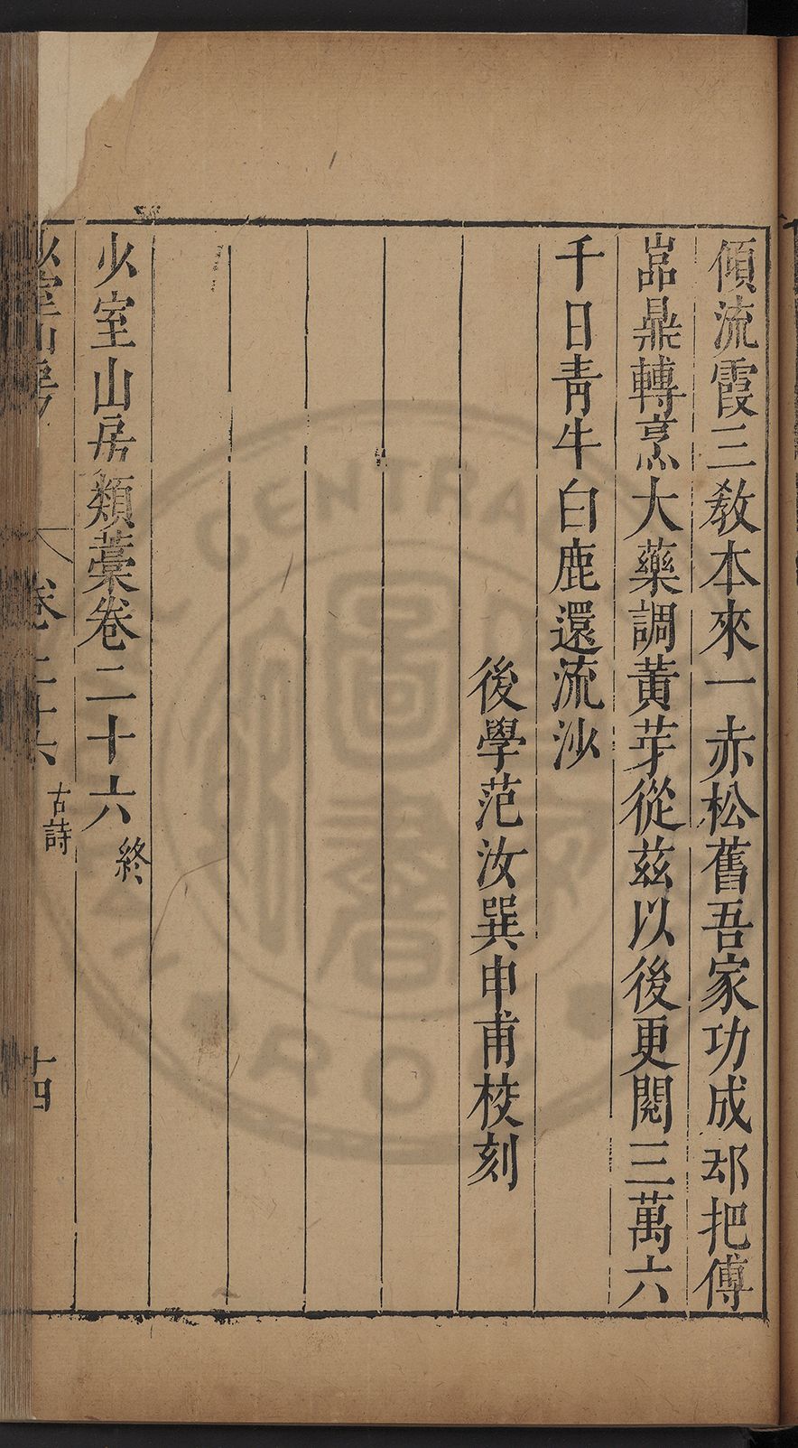 (萬曆戊午三月七之日弟幼清啜洞荼分甘趙文鎮園筍扵碧桃花下讐杖百一卷至二十卷完政其字者二十有九刊補□衍者十三字江清臣記)