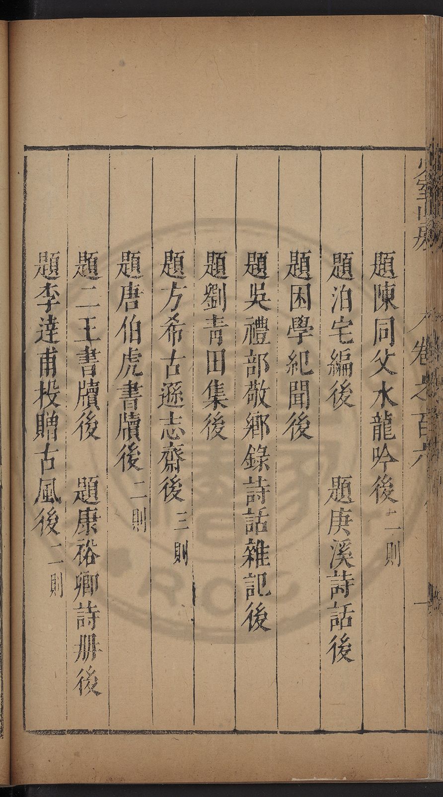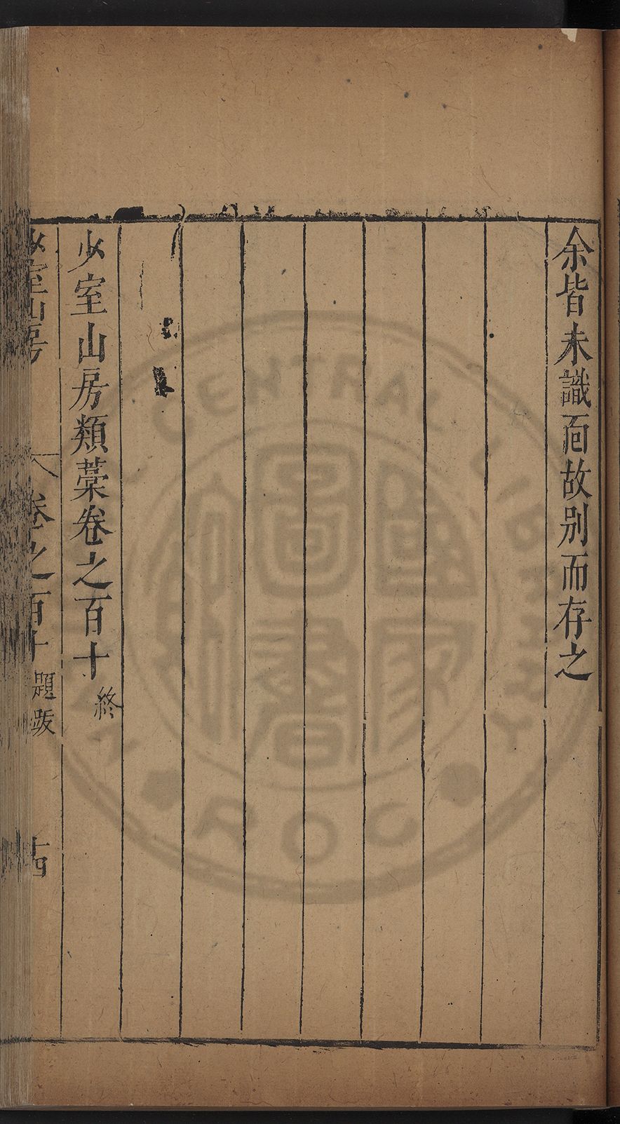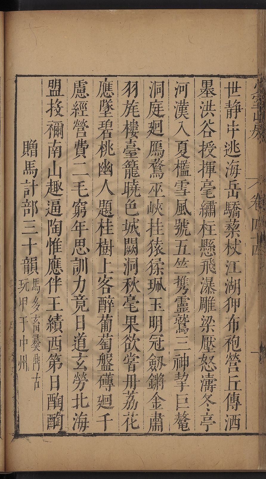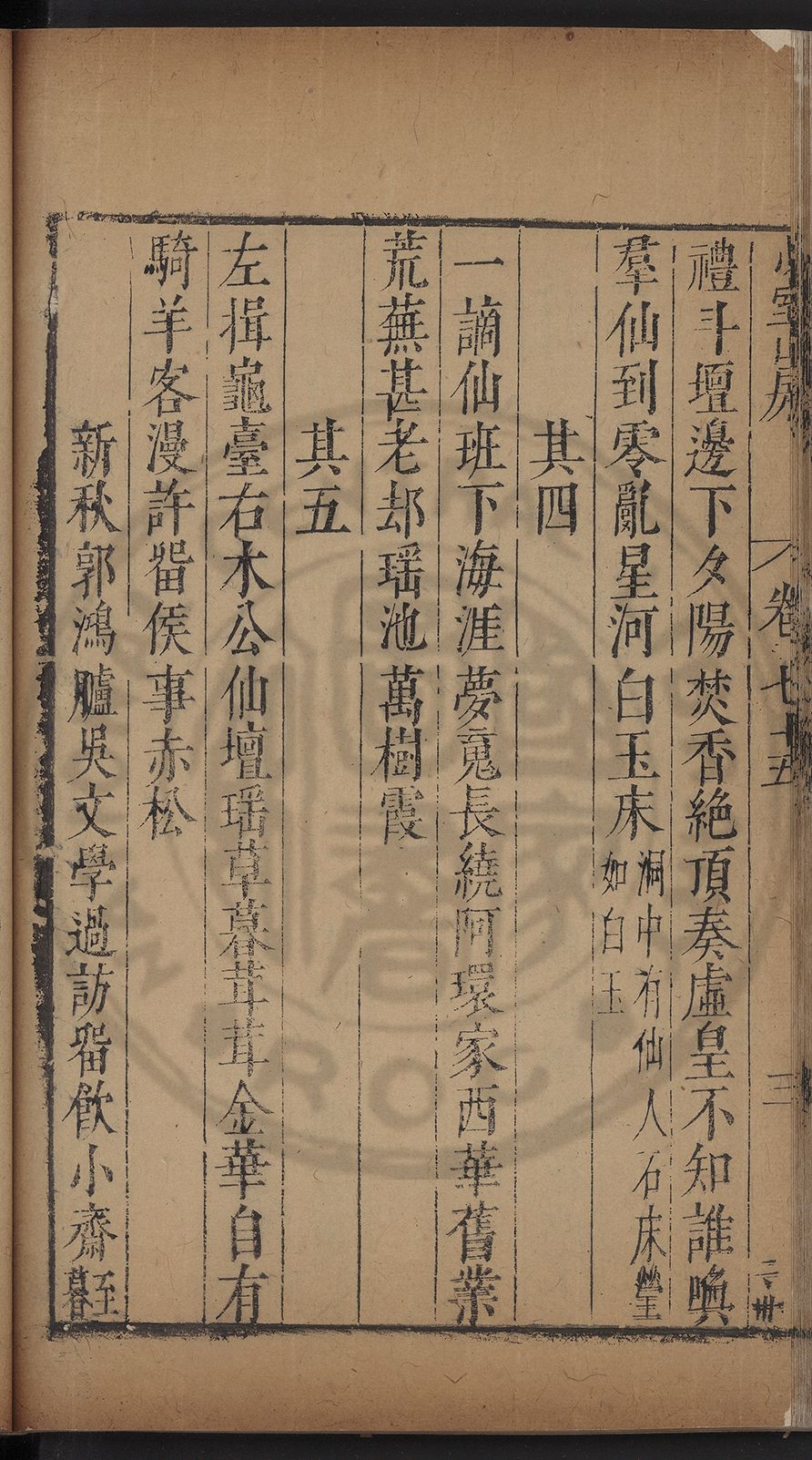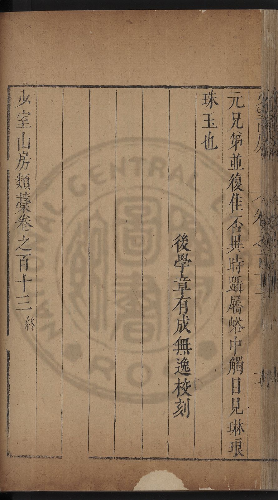 (萬曆戊午三月七之日弟幼清啜洞荼分甘趙文鎮園筍扵碧桃花下讐杖百一卷至二十卷完政其字者二十有九刊補□衍者十三字江清臣記)