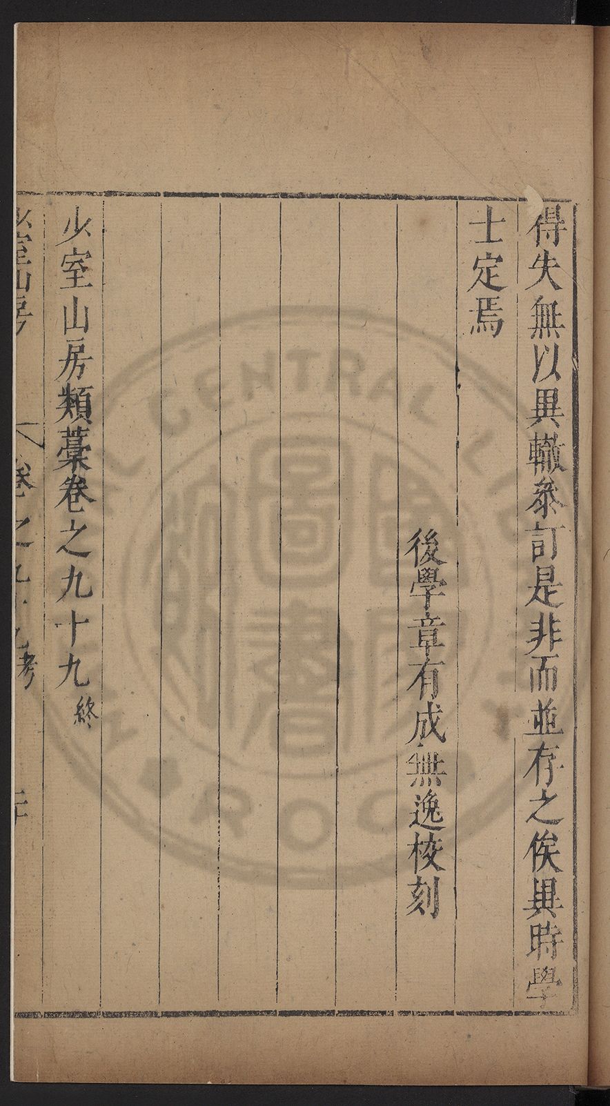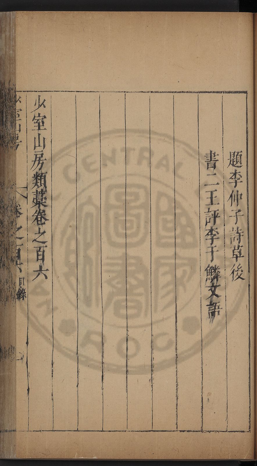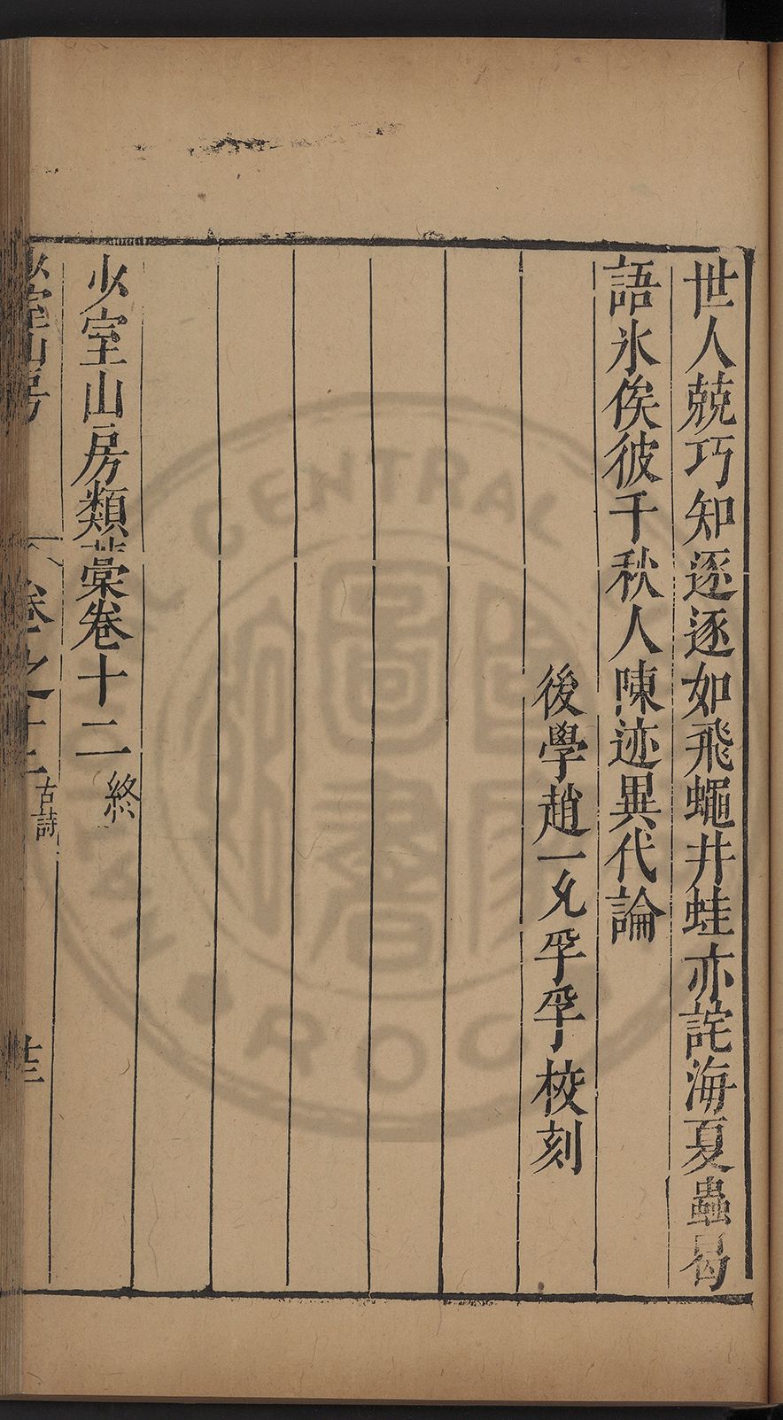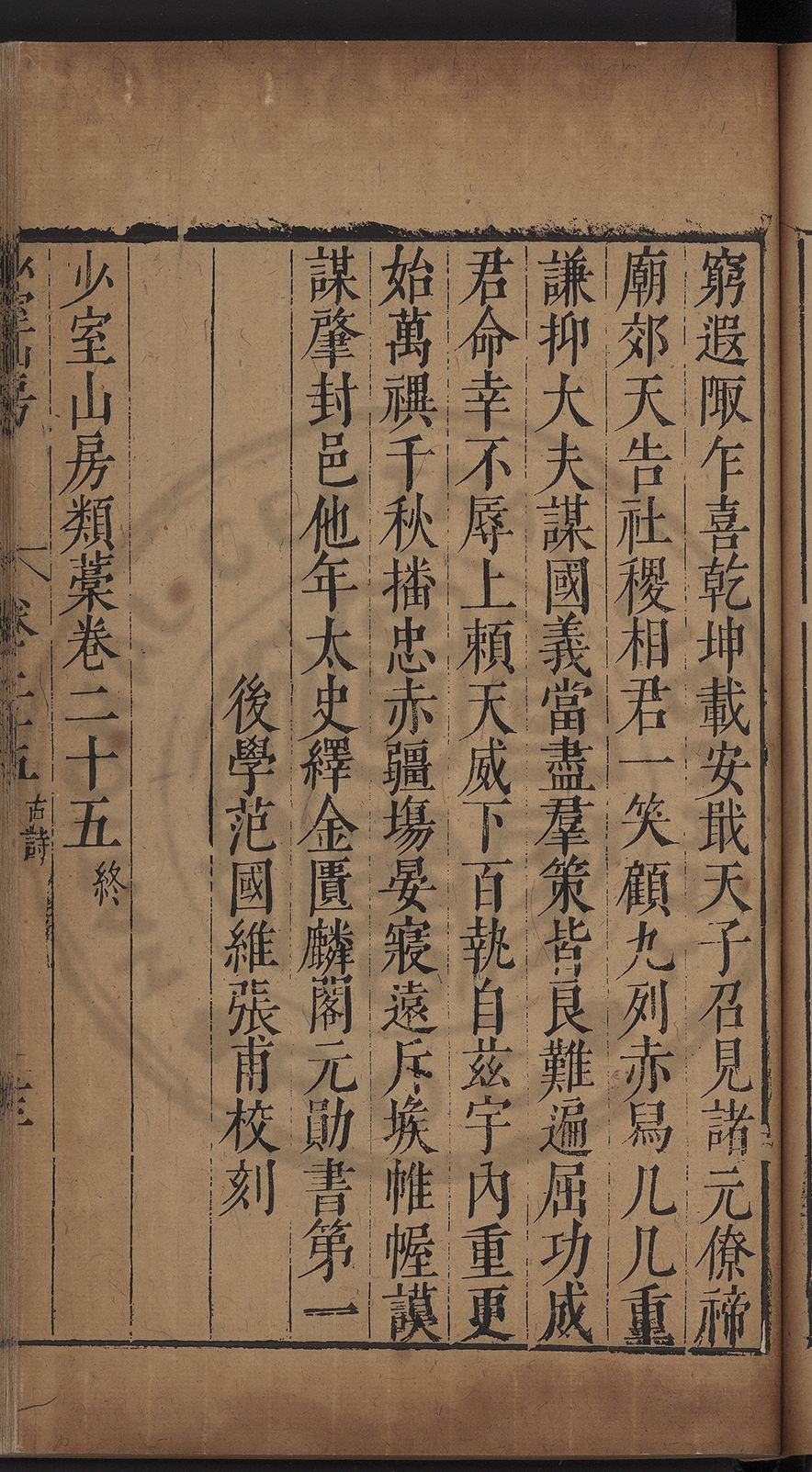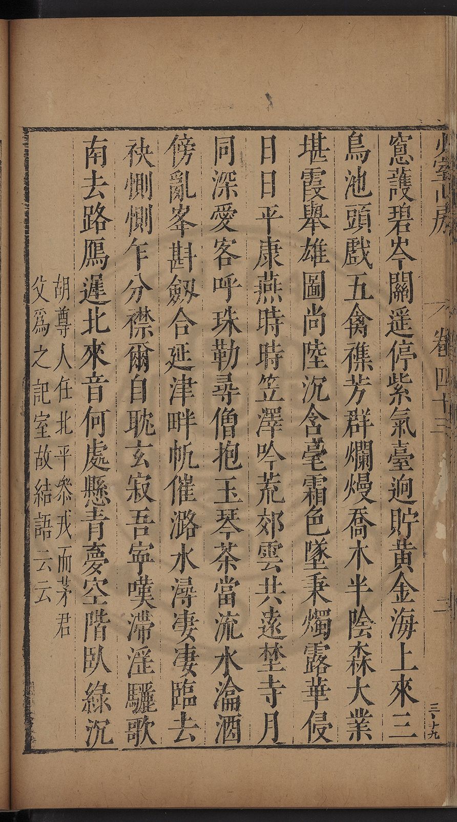 (萬曆戊午三月七之日弟幼清啜洞荼分甘趙文鎮園筍扵碧桃花下讐杖百一卷至二十卷完政其字者二十有九刊補□衍者十三字江清臣記)