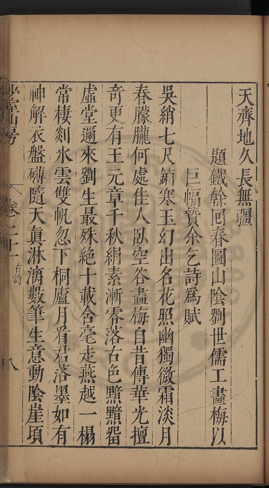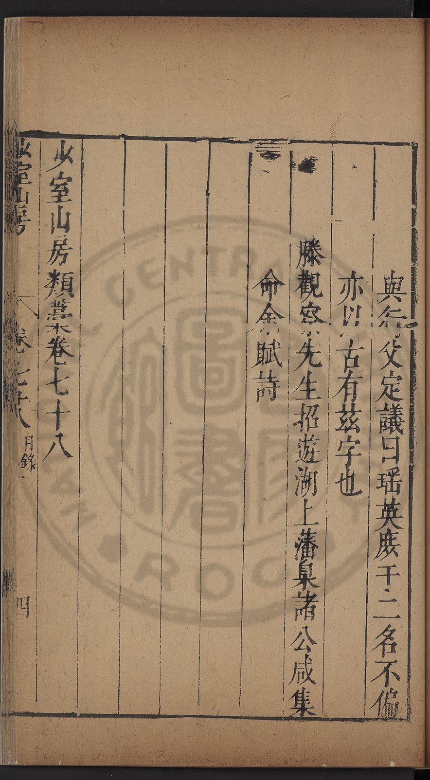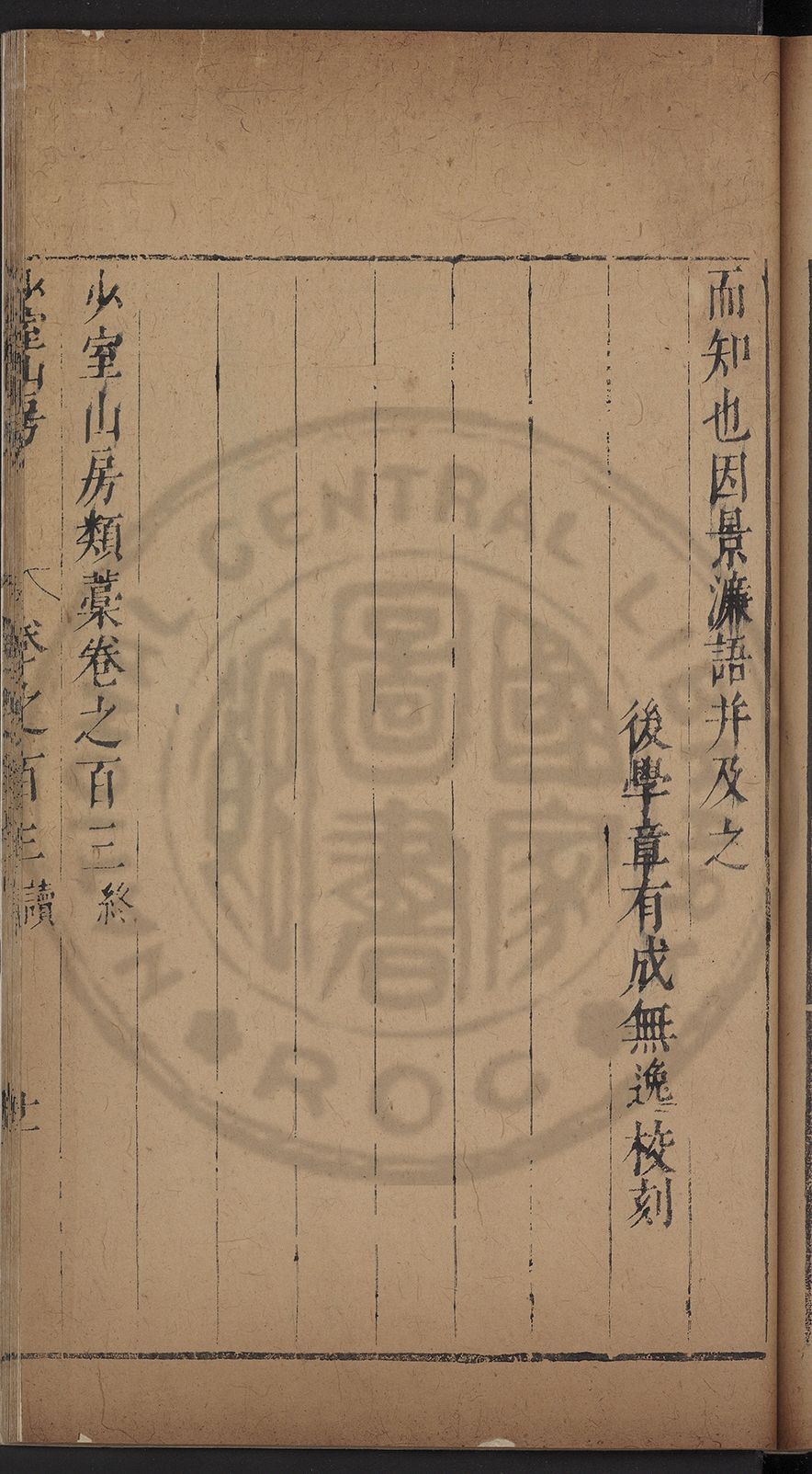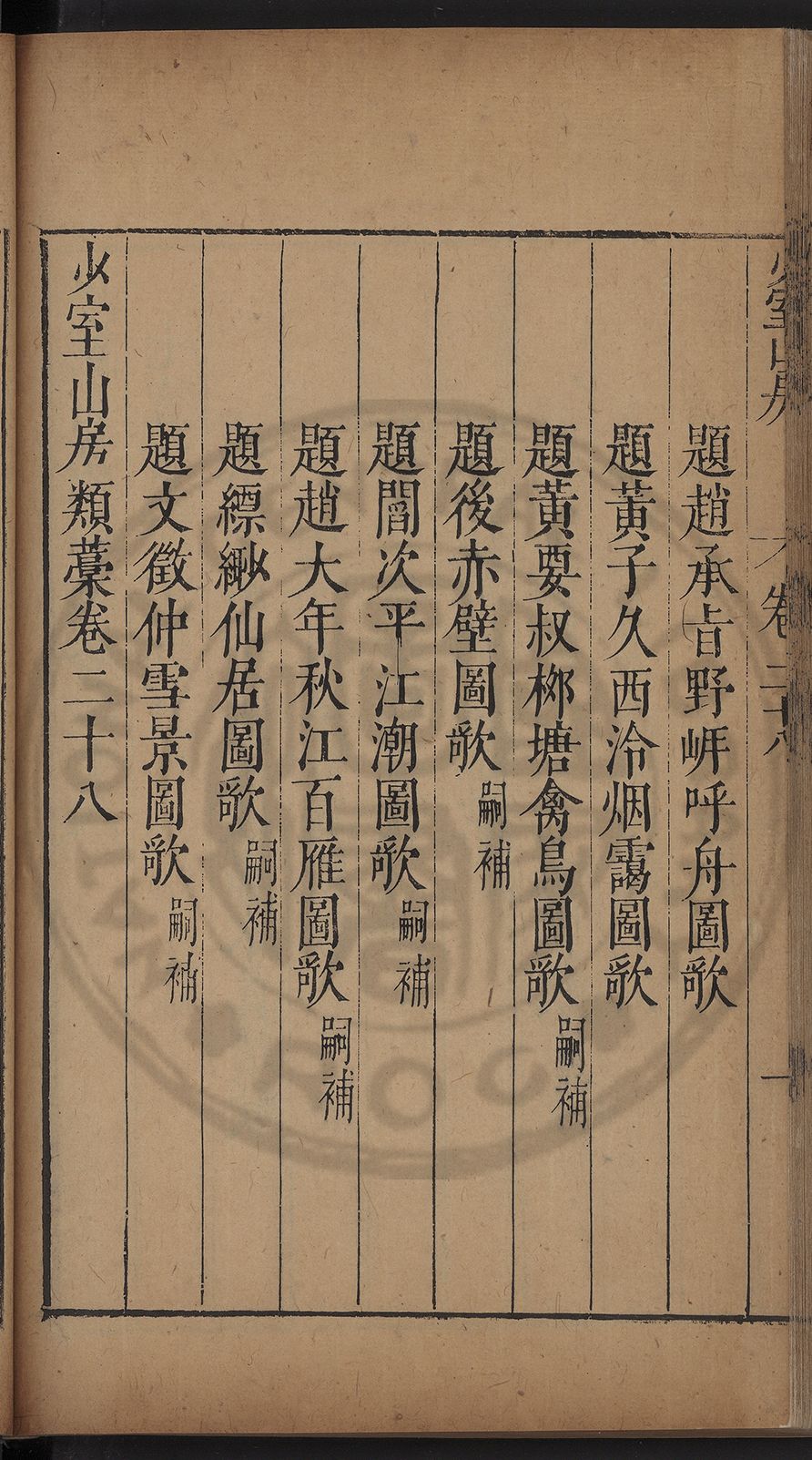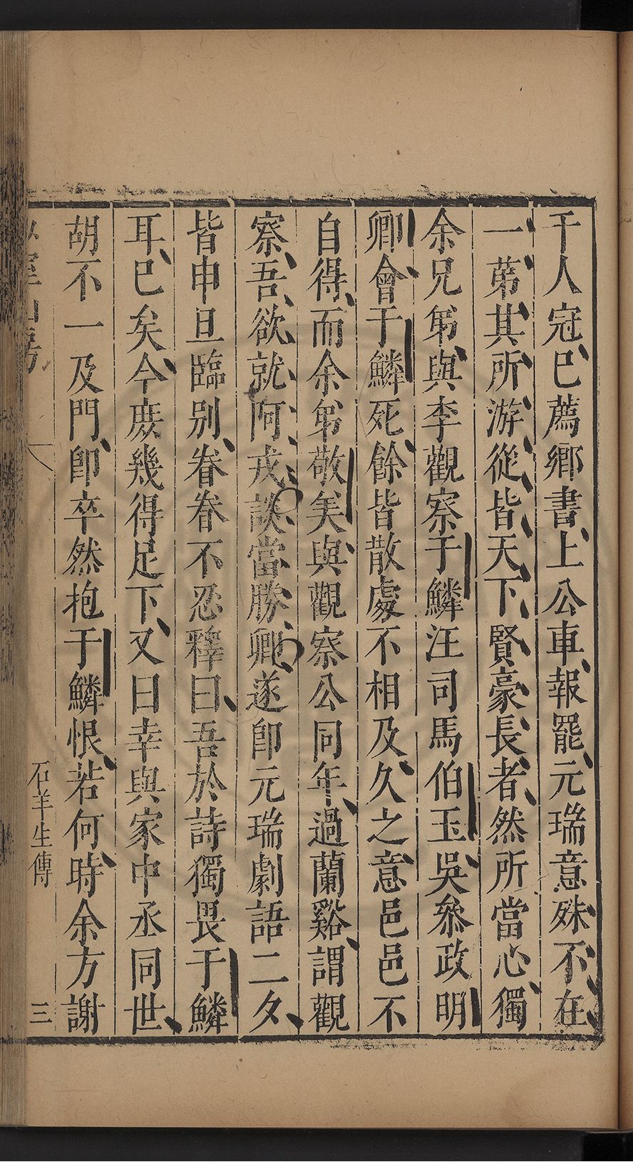 (萬曆戊午三月七之日弟幼清啜洞荼分甘趙文鎮園筍扵碧桃花下讐杖百一卷至二十卷完政其字者二十有九刊補□衍者十三字江清臣記)