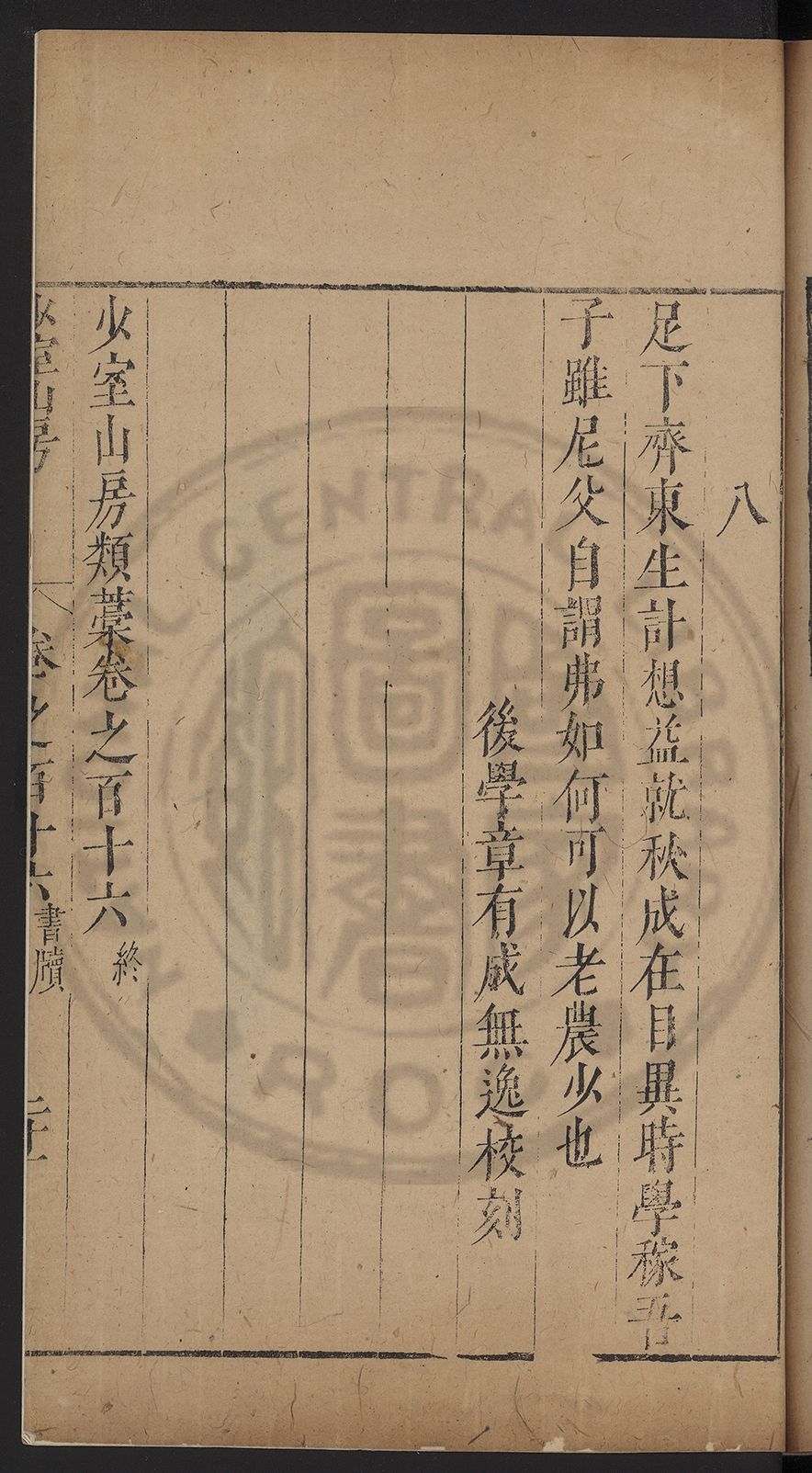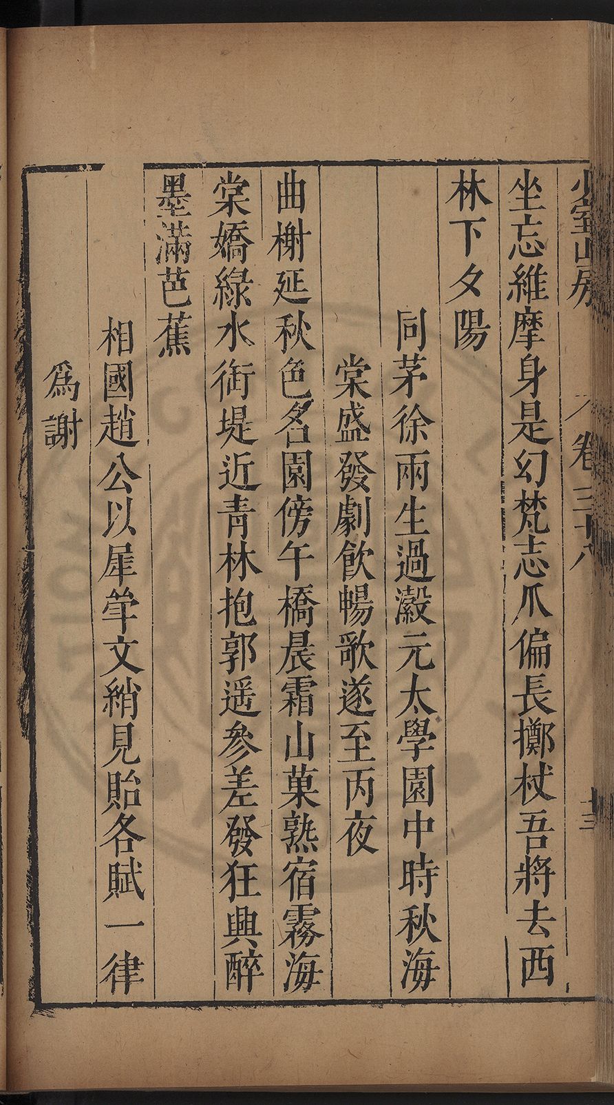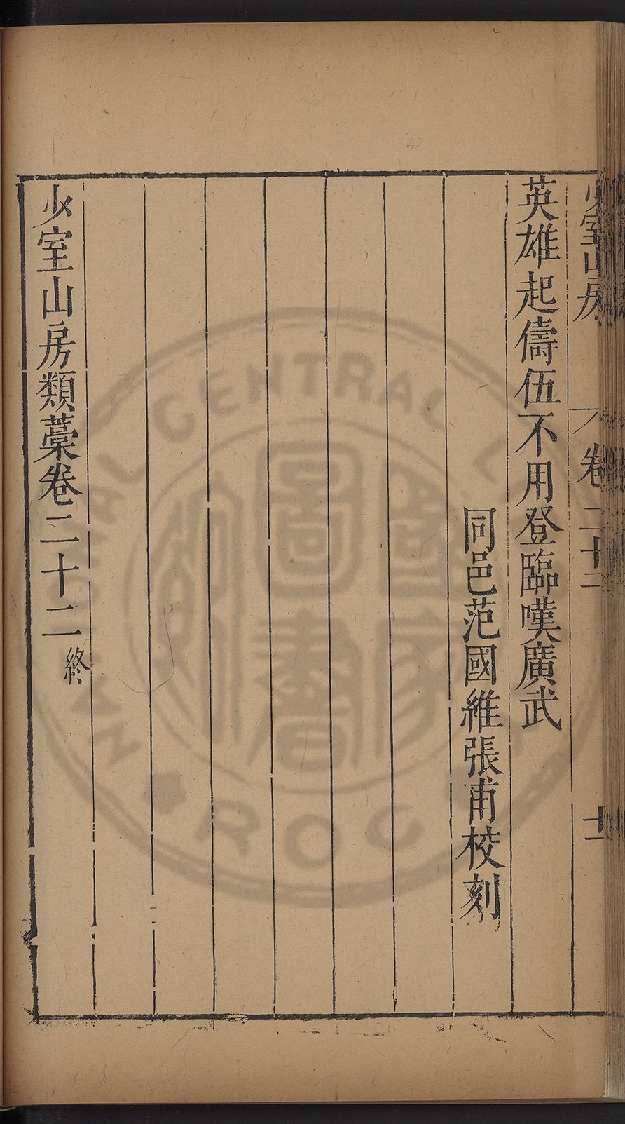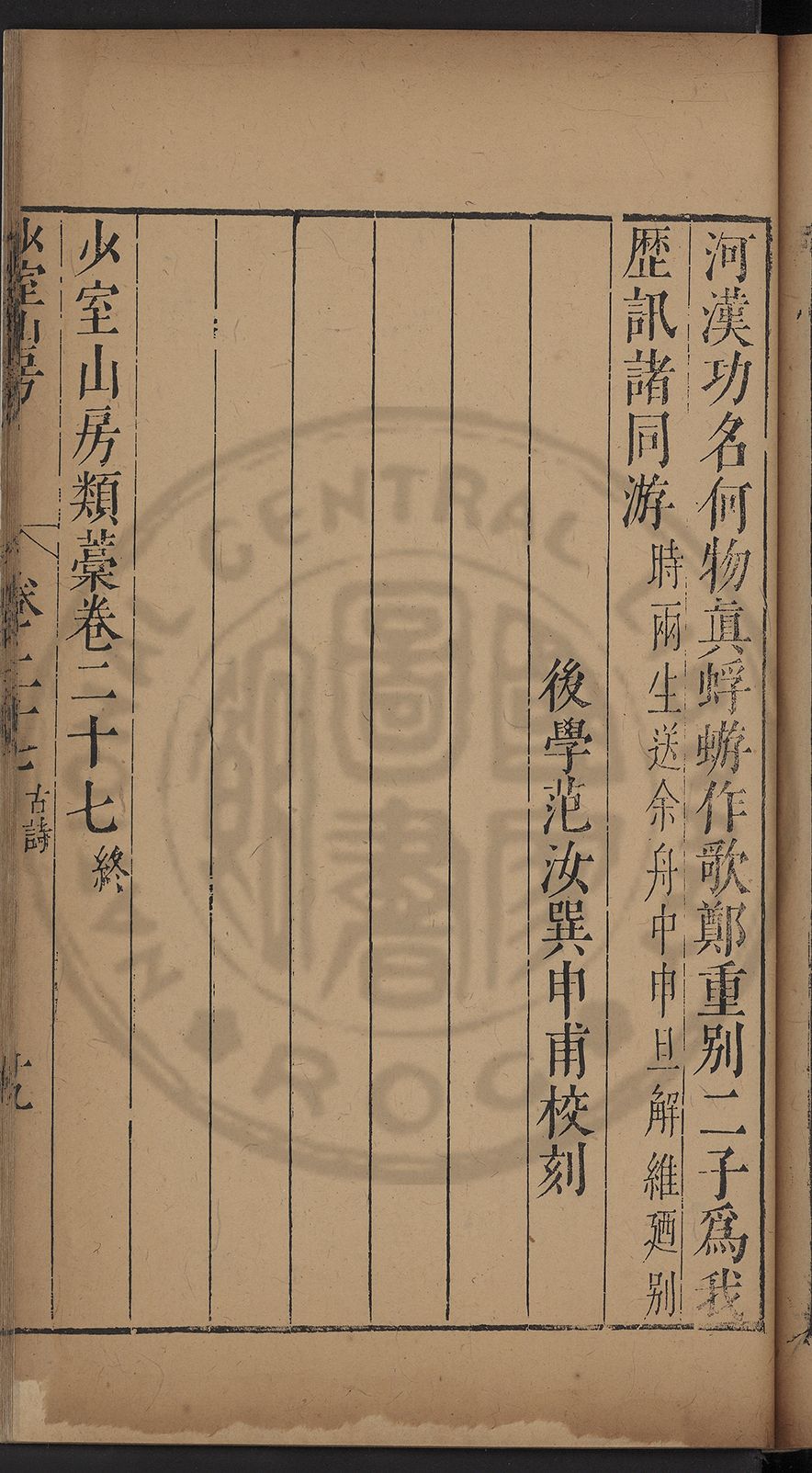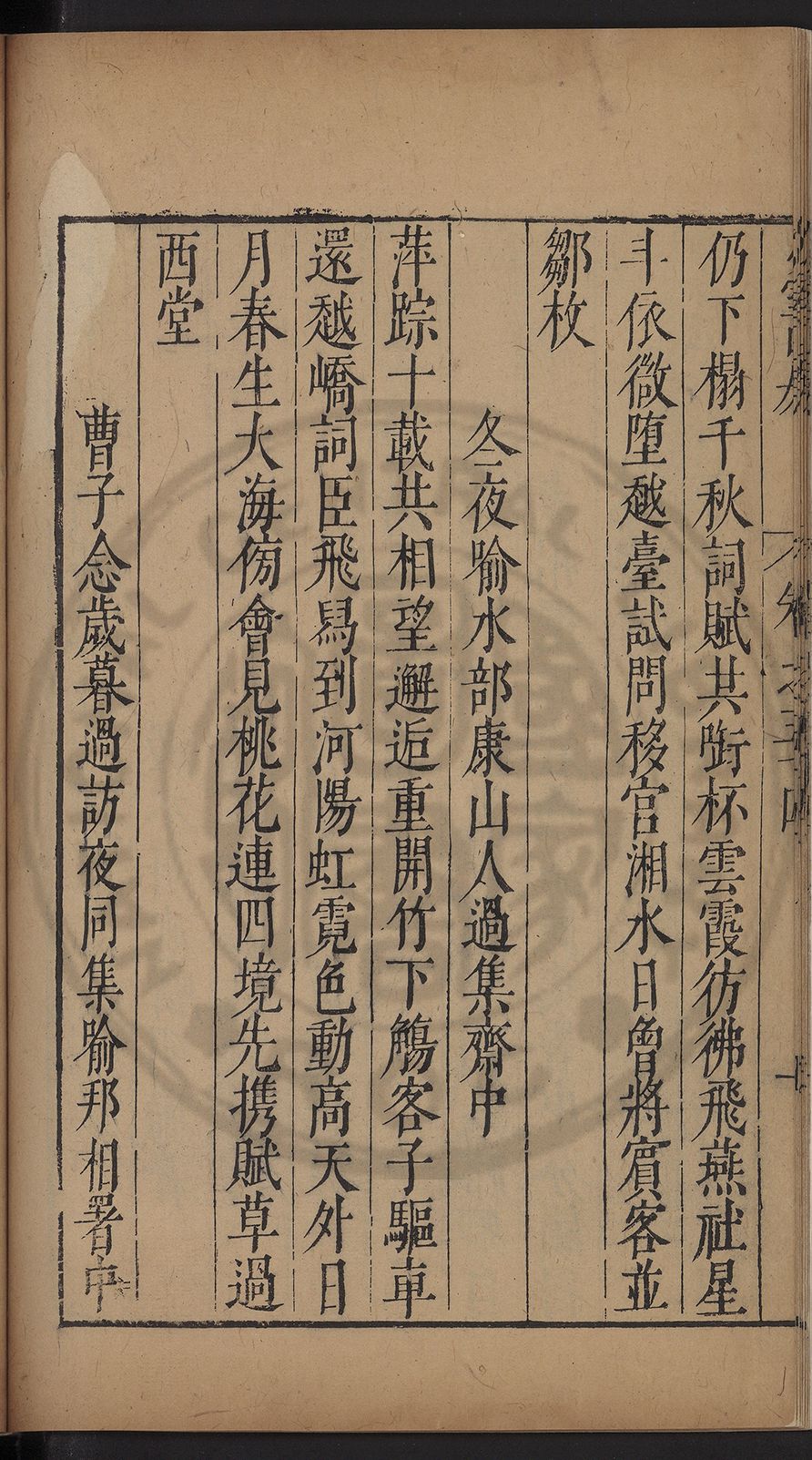 (萬曆戊午三月七之日弟幼清啜洞荼分甘趙文鎮園筍扵碧桃花下讐杖百一卷至二十卷完政其字者二十有九刊補□衍者十三字江清臣記)