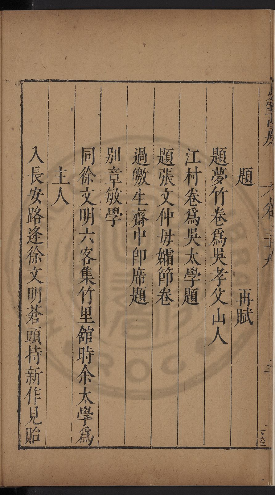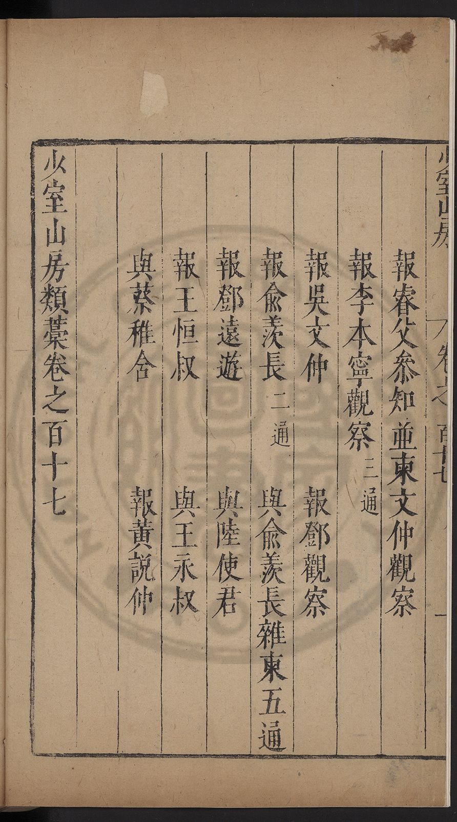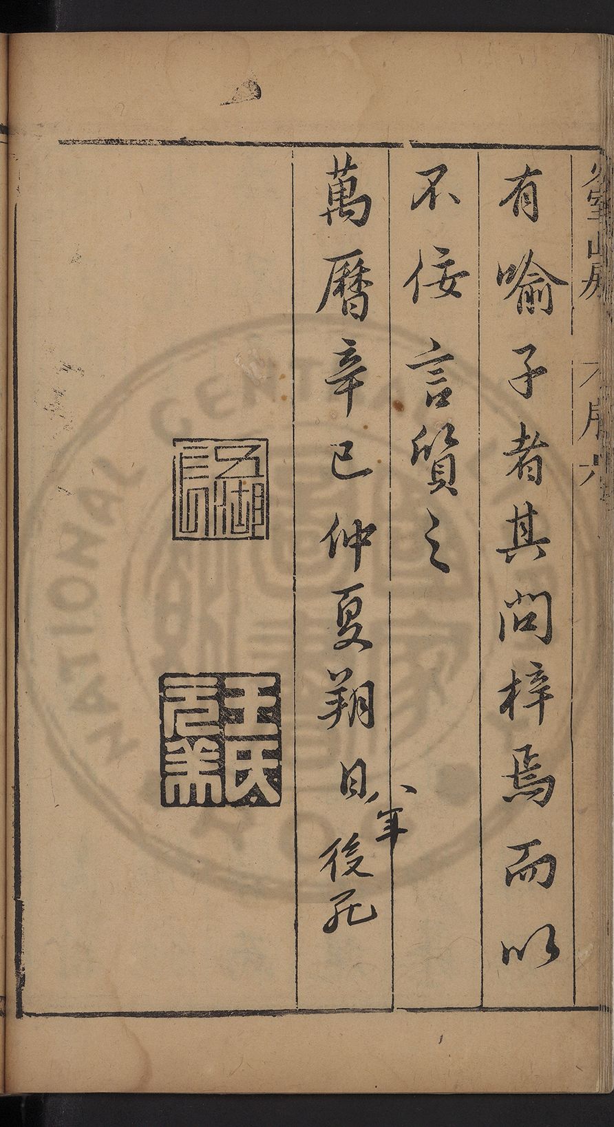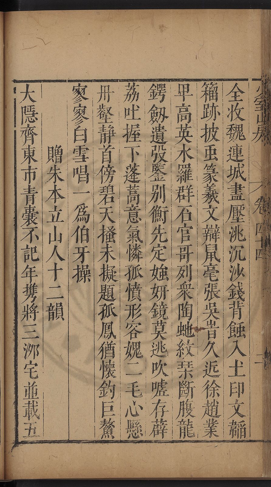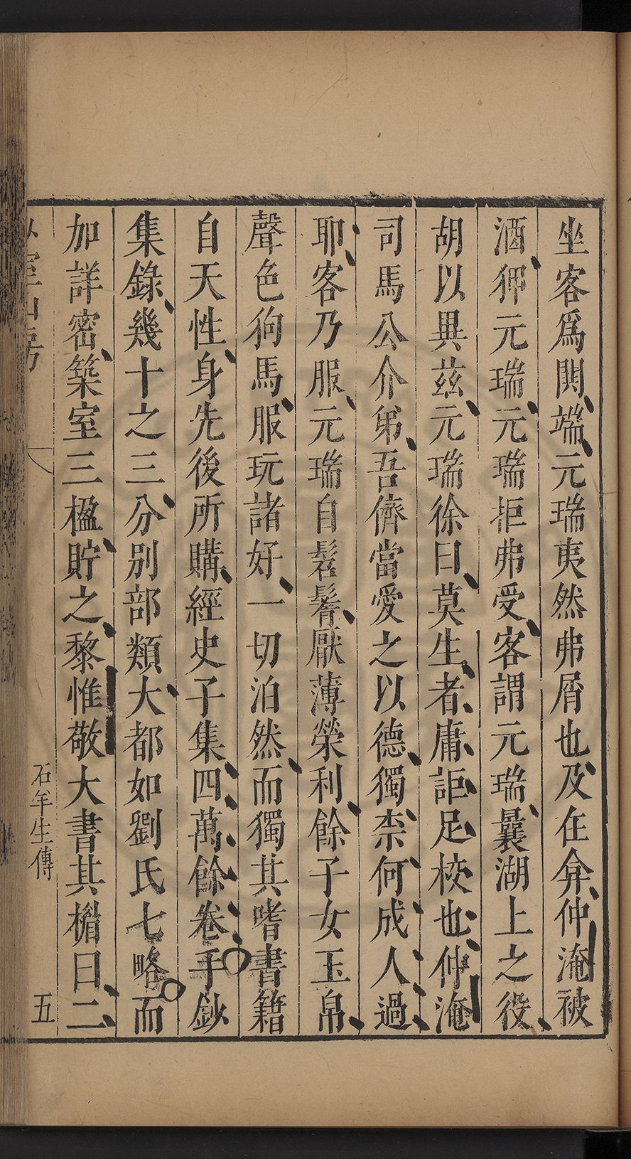 (萬曆戊午三月七之日弟幼清啜洞荼分甘趙文鎮園筍扵碧桃花下讐杖百一卷至二十卷完政其字者二十有九刊補□衍者十三字江清臣記)