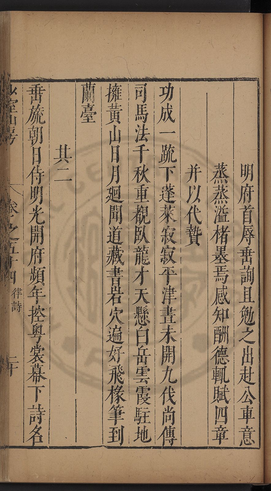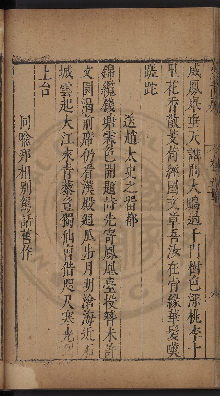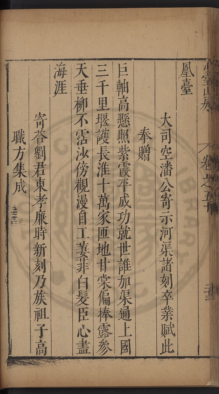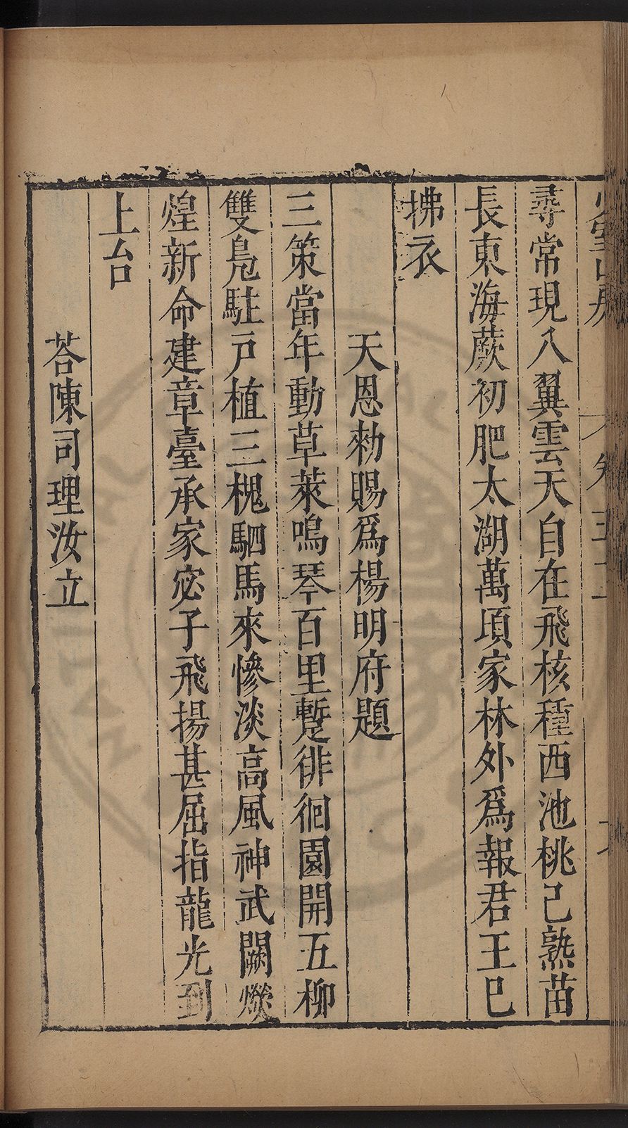 栢府崇遷九域佇澄清之化蘭臺獨坐千官廻