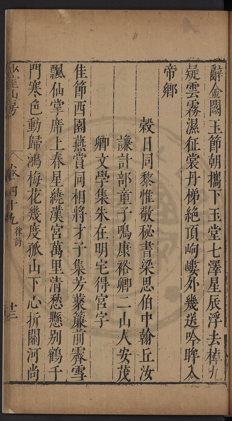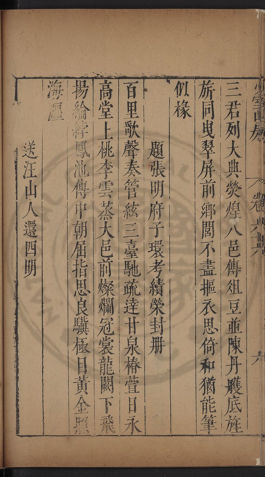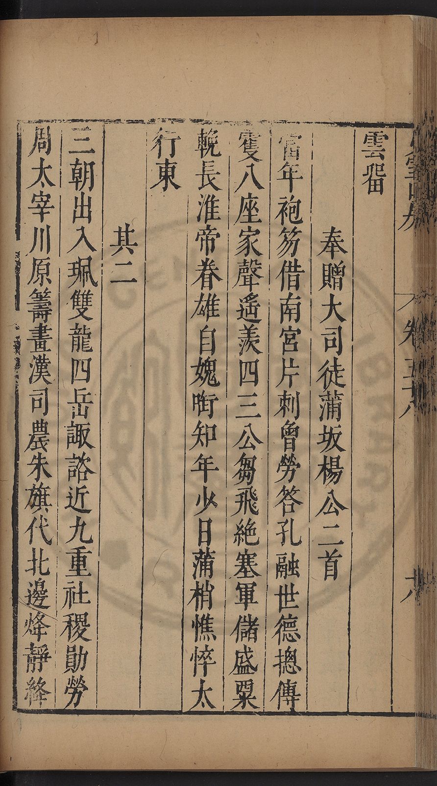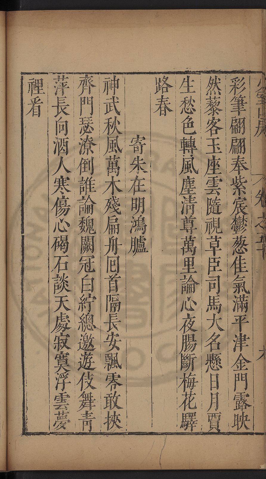 栢府崇遷九域佇澄清之化蘭臺獨坐千官廻