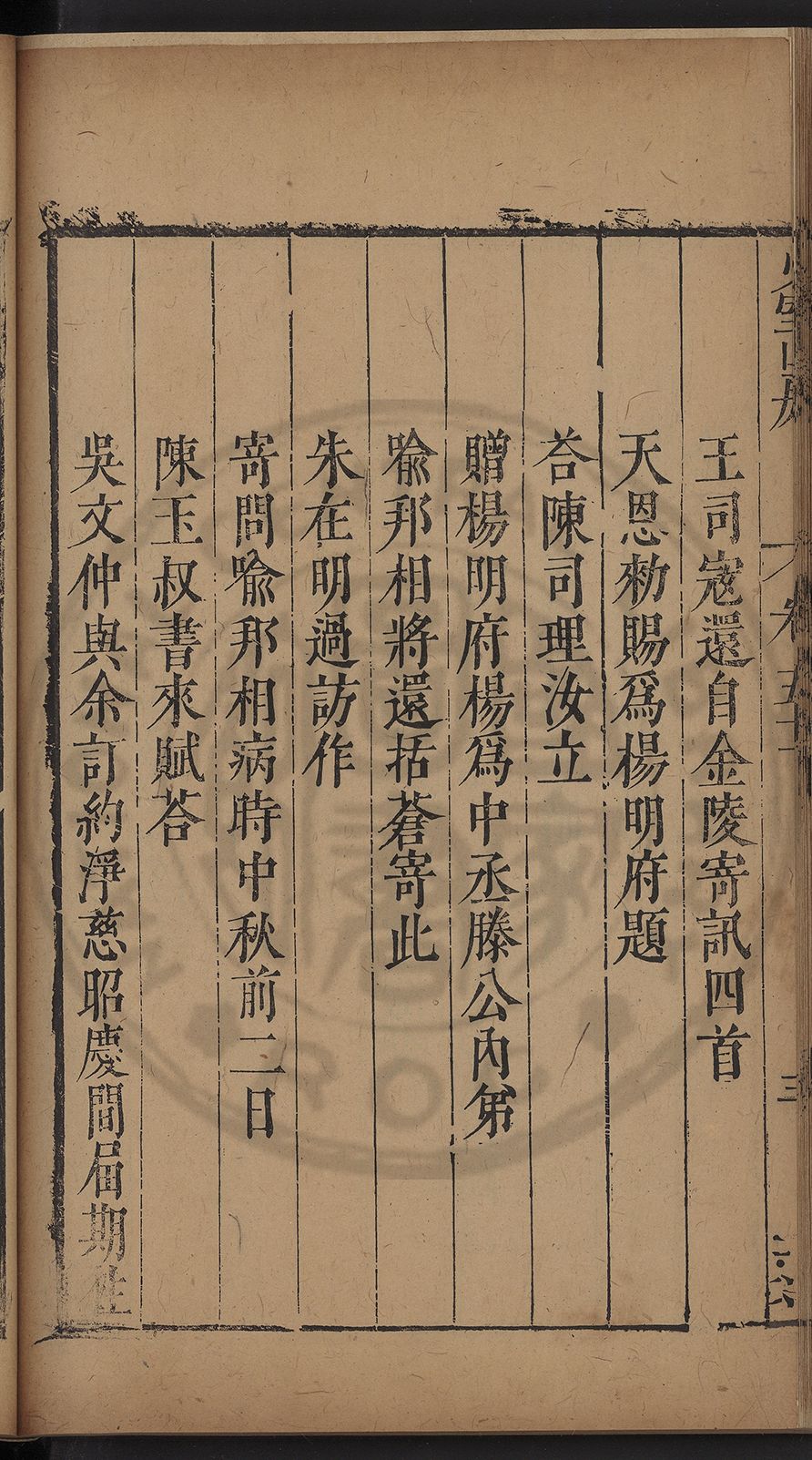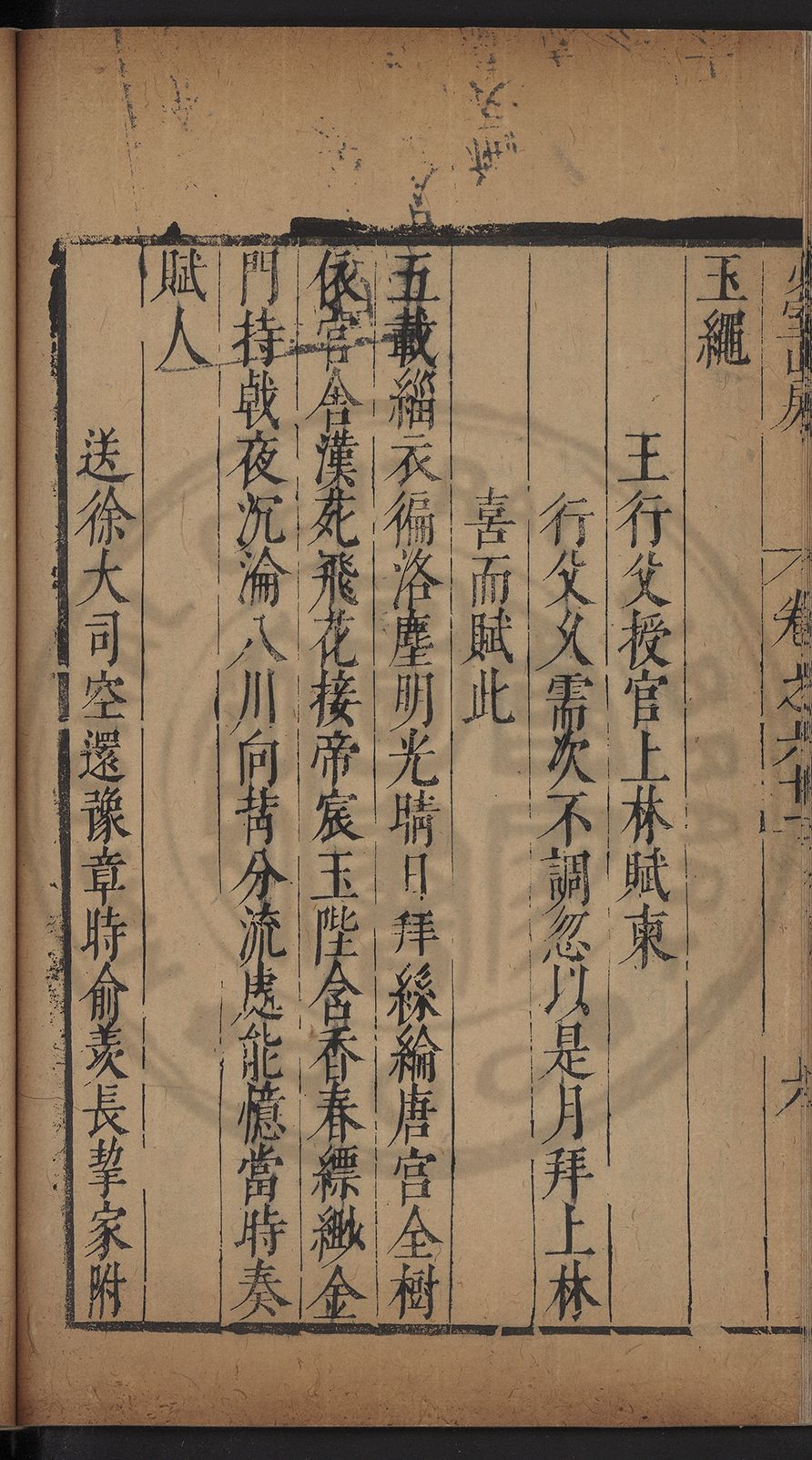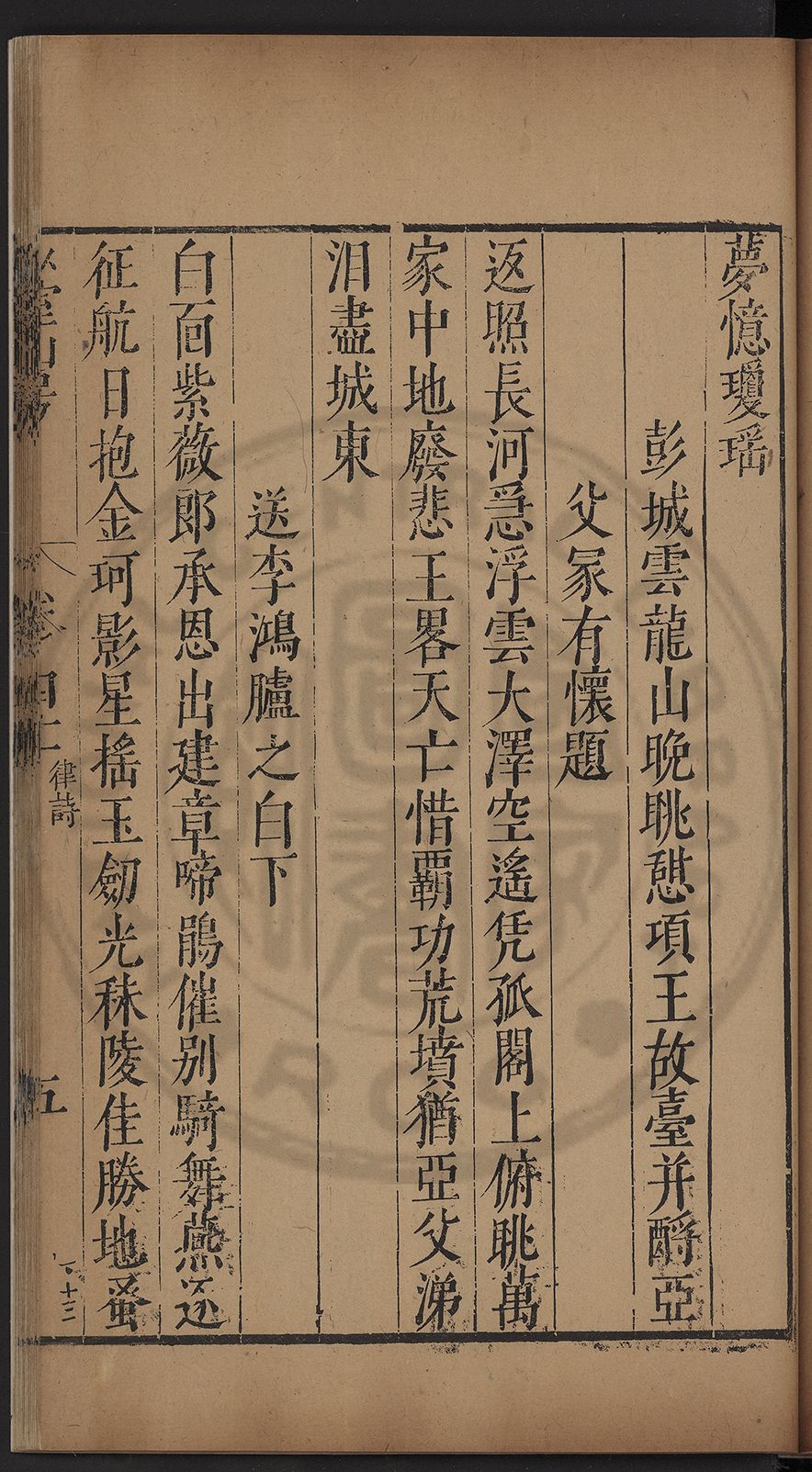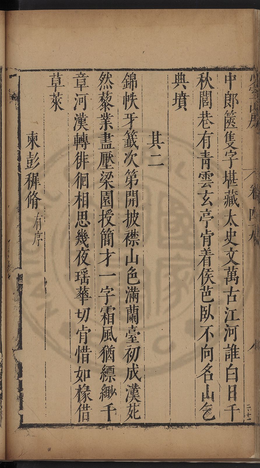 栢府崇遷九域佇澄清之化蘭臺獨坐千官廻