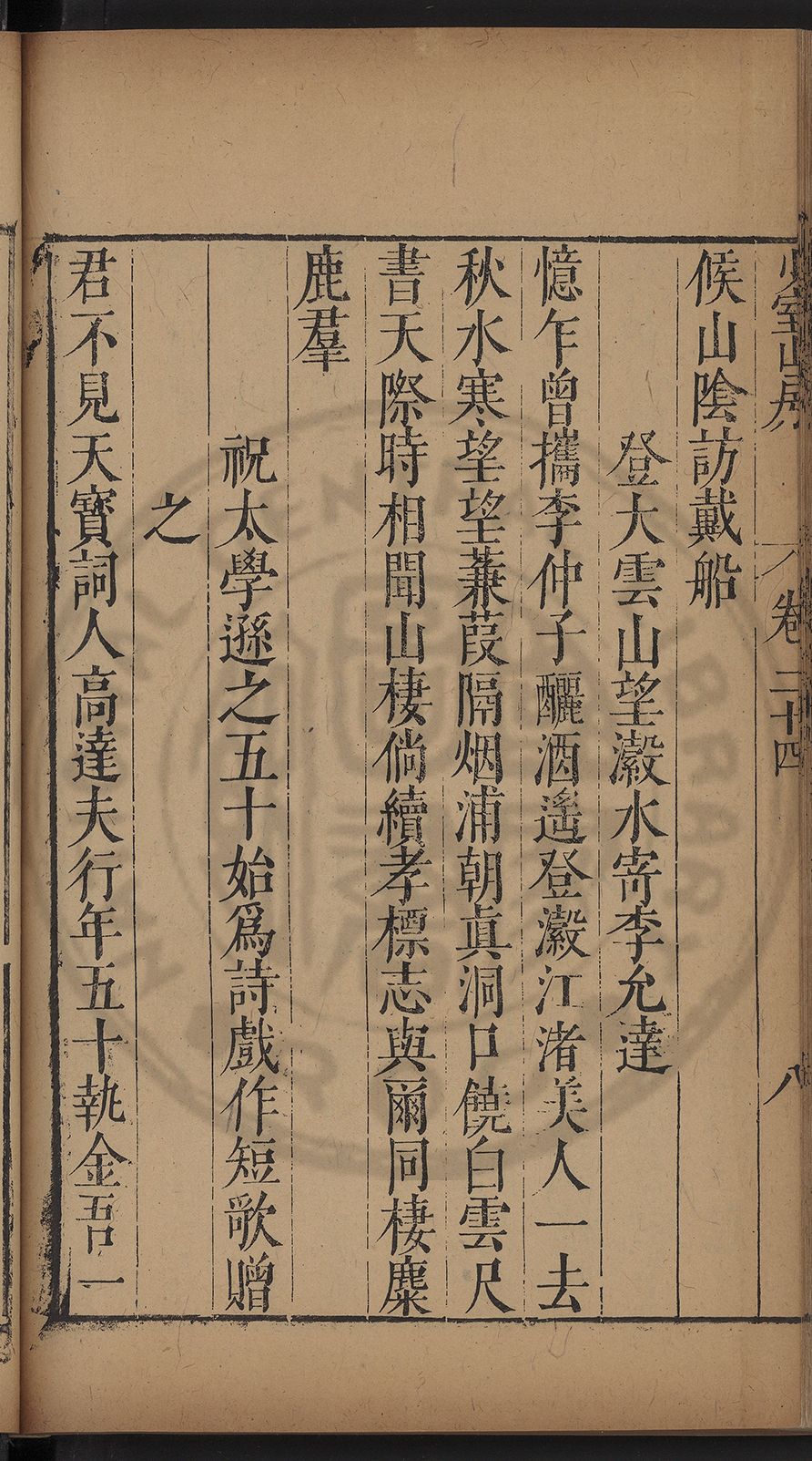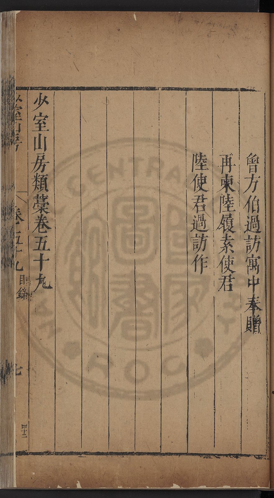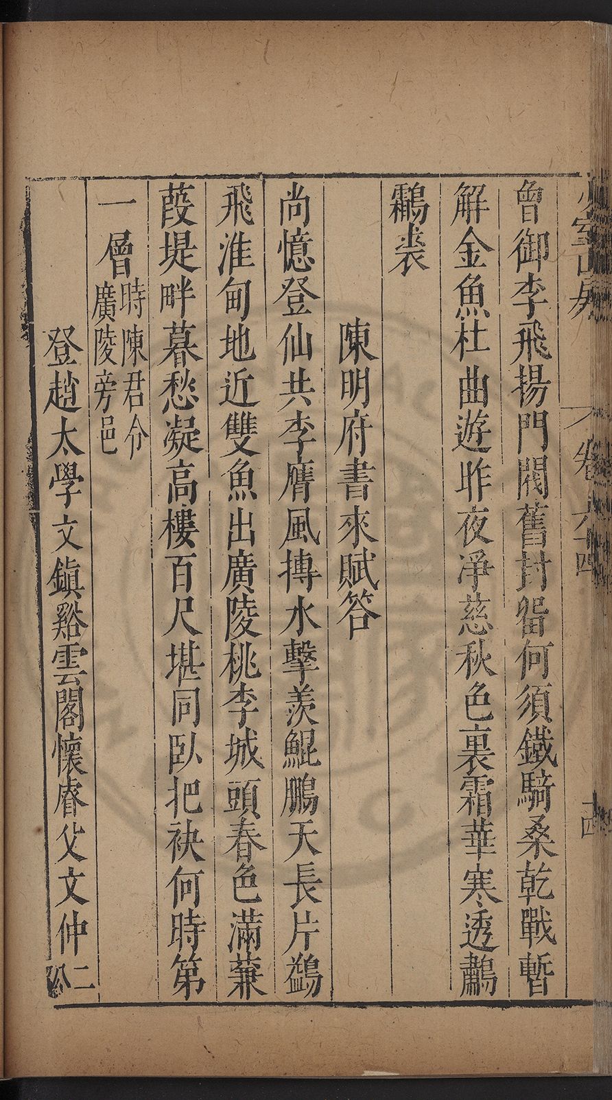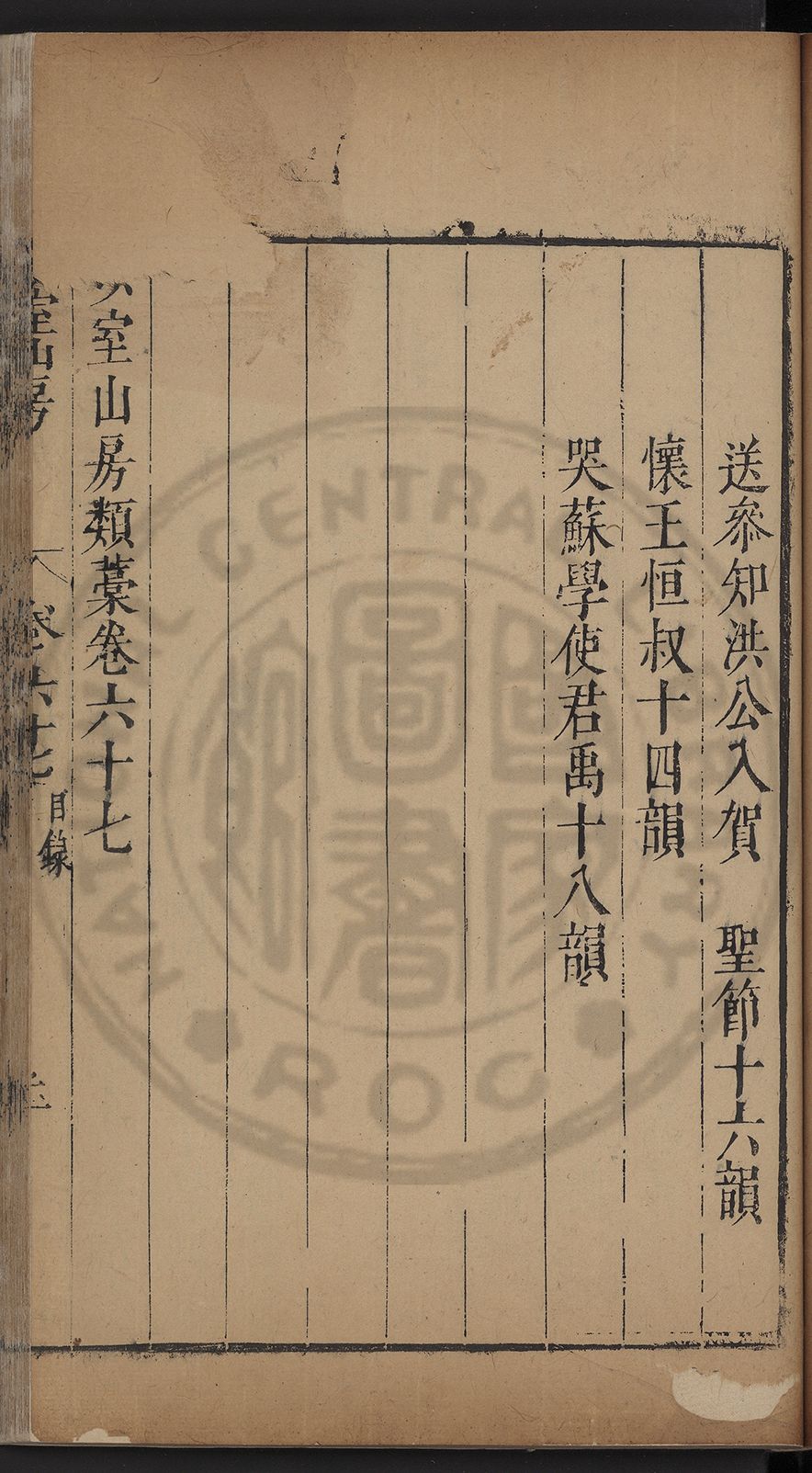 栢府崇遷九域佇澄清之化蘭臺獨坐千官廻