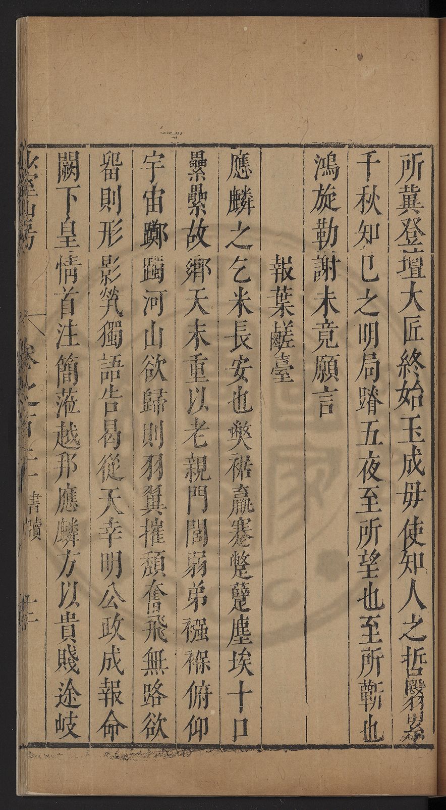 奔走外藩竊庇皁囊之休烈恭聞大拜曷任瞻