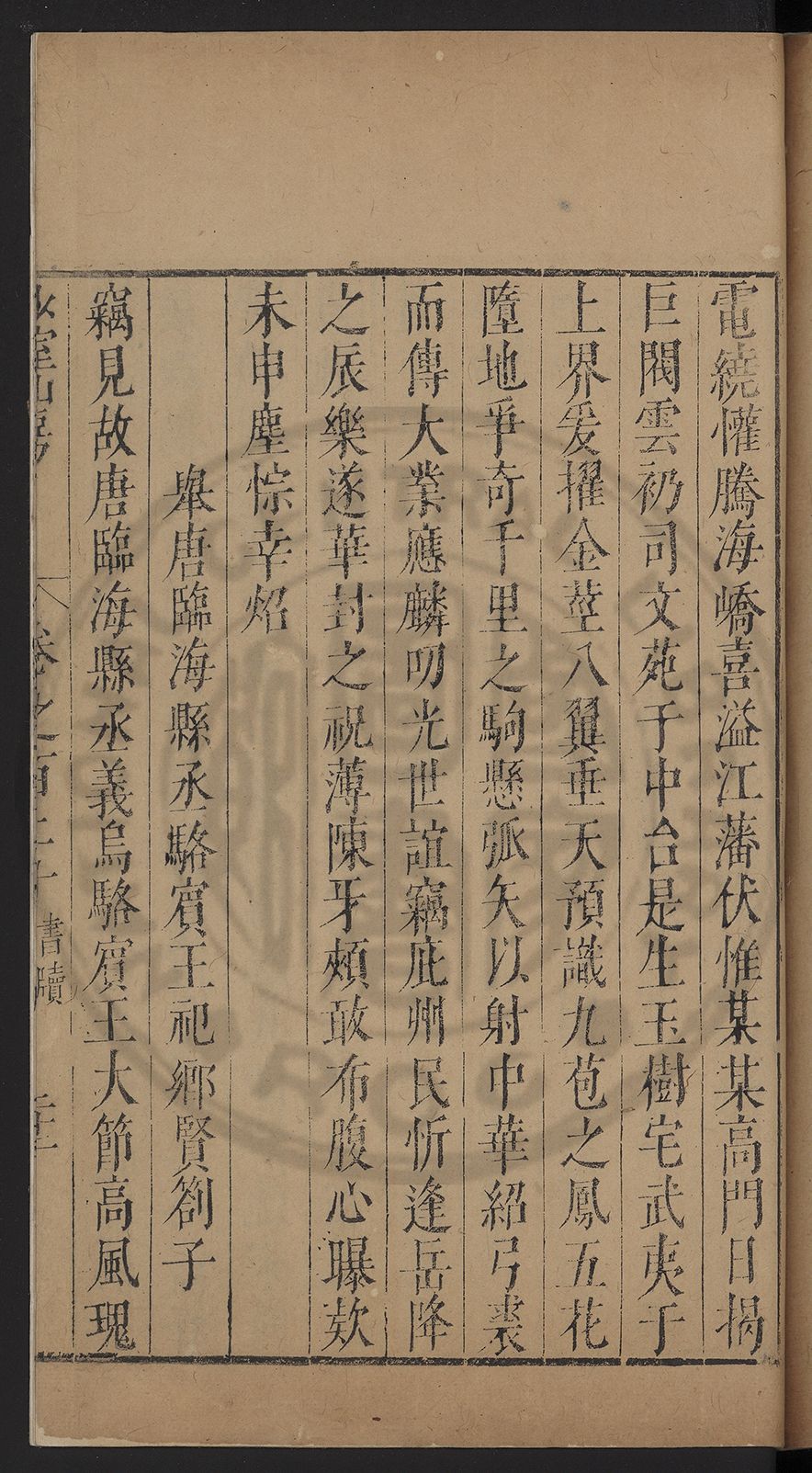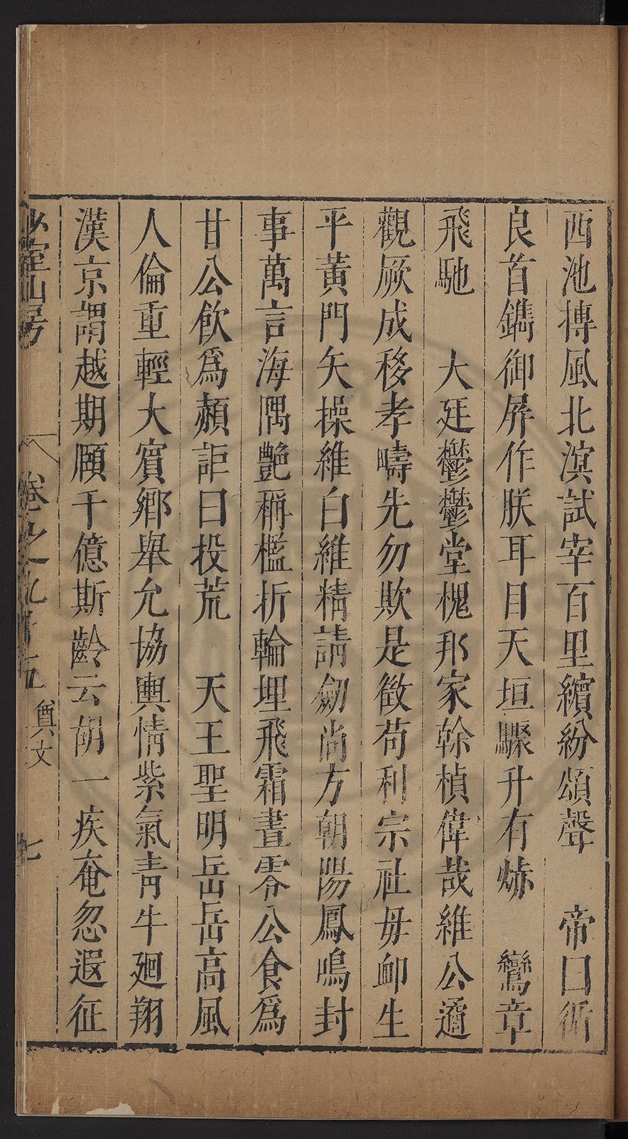 闥敭厯乎東藩西省惠愛旁流飛騰乎北寺南
