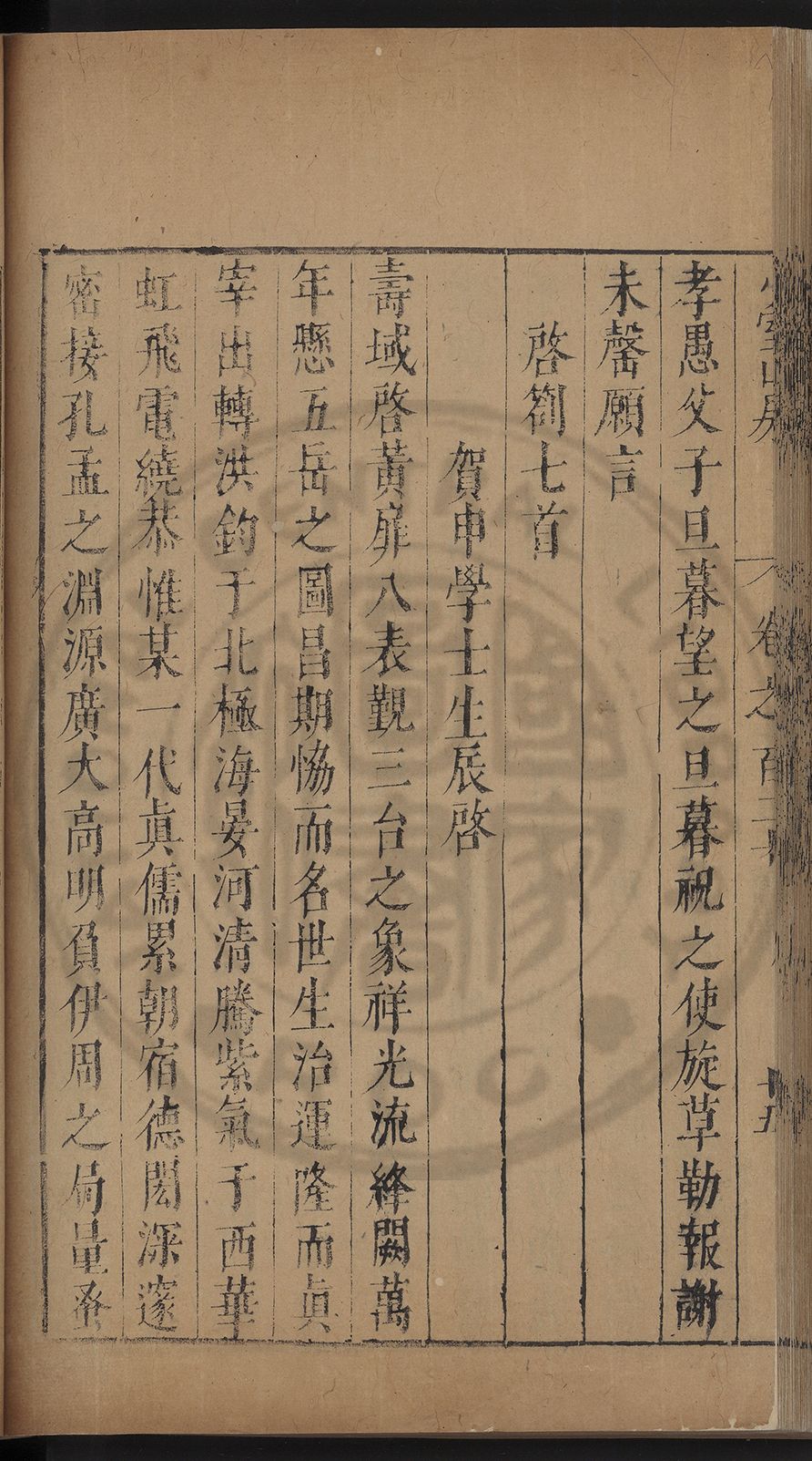 之辰樂遂華封之祝薄陳牙頰敢布腹心曝欵