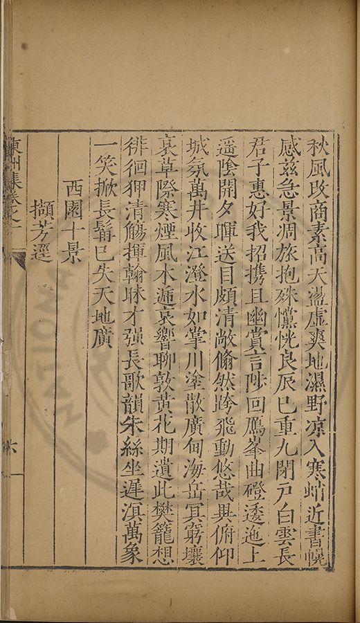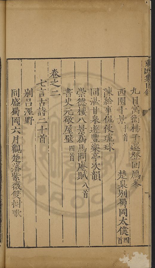 西園十景(十首) 楚臬別蜀岡太僕(四首)