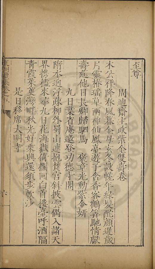 天章飄下紫泥香腰綴金花生纈江北江南謳歌動