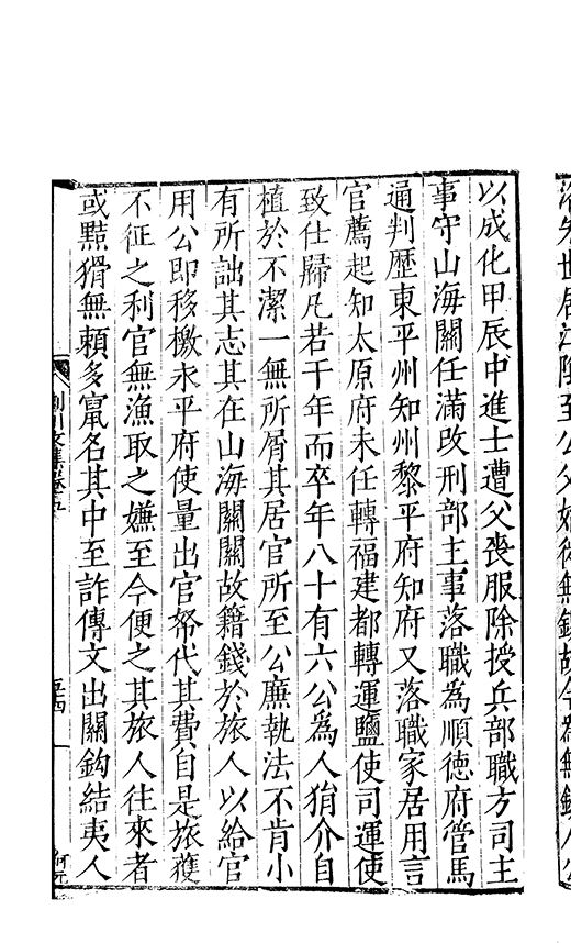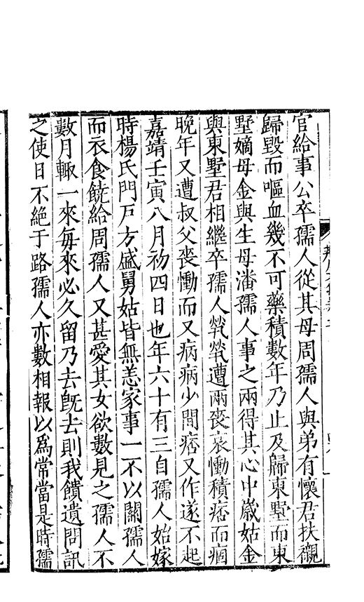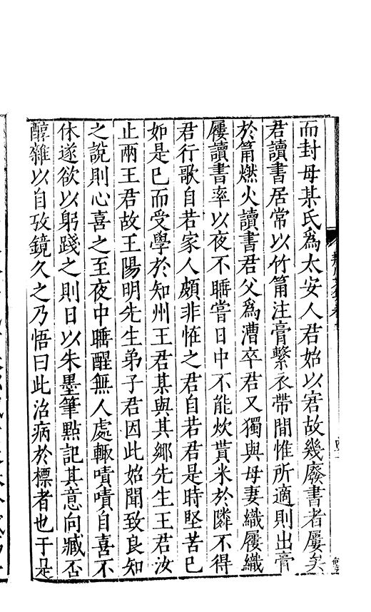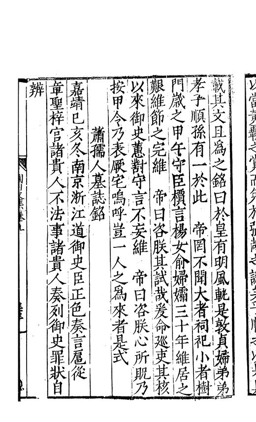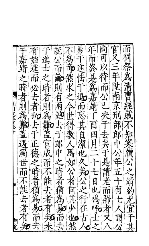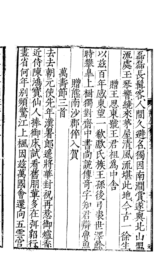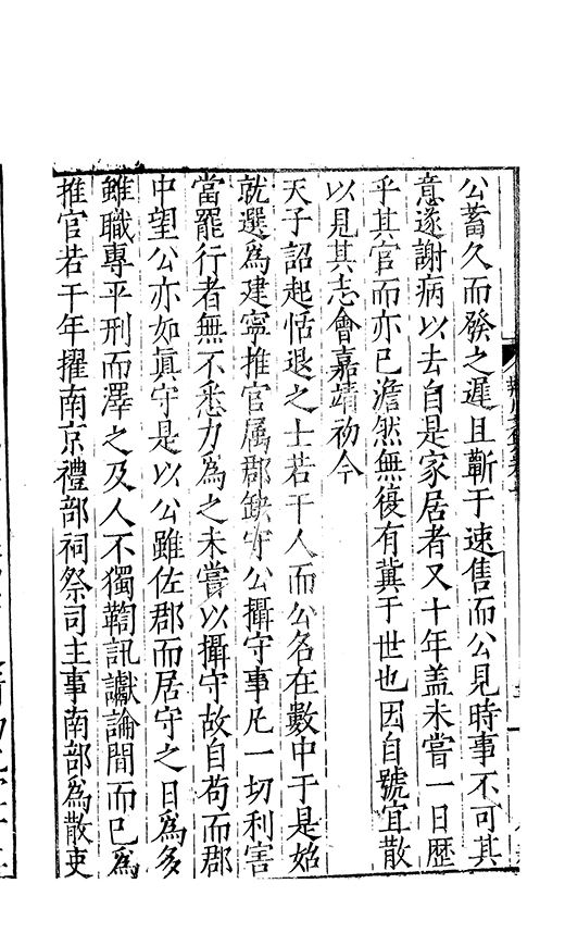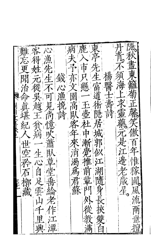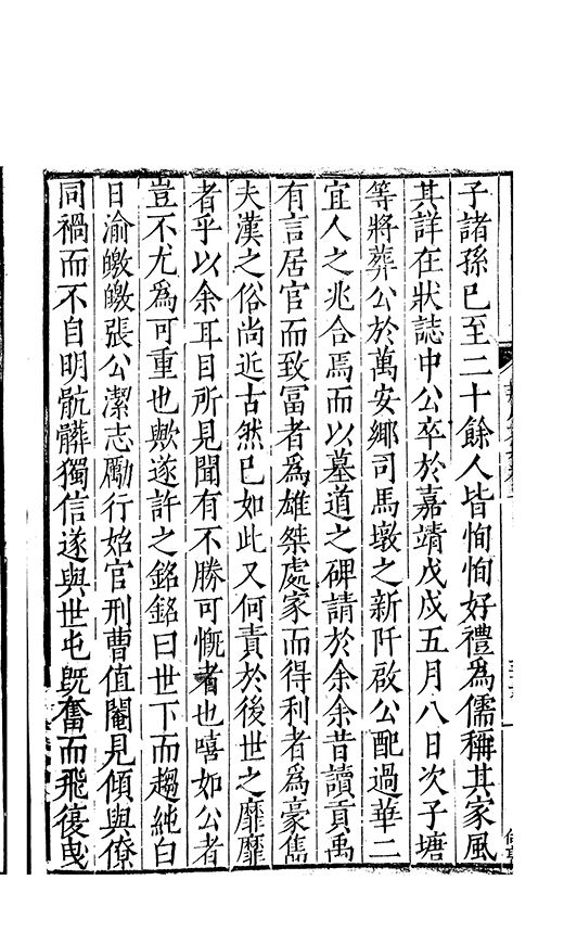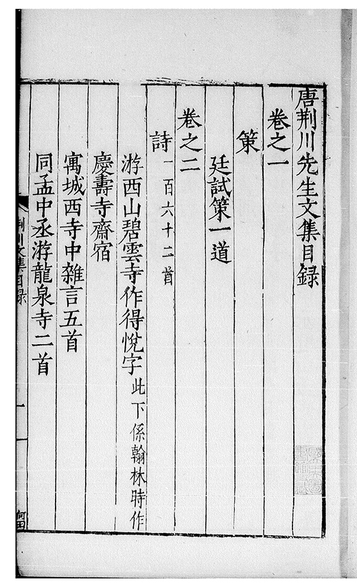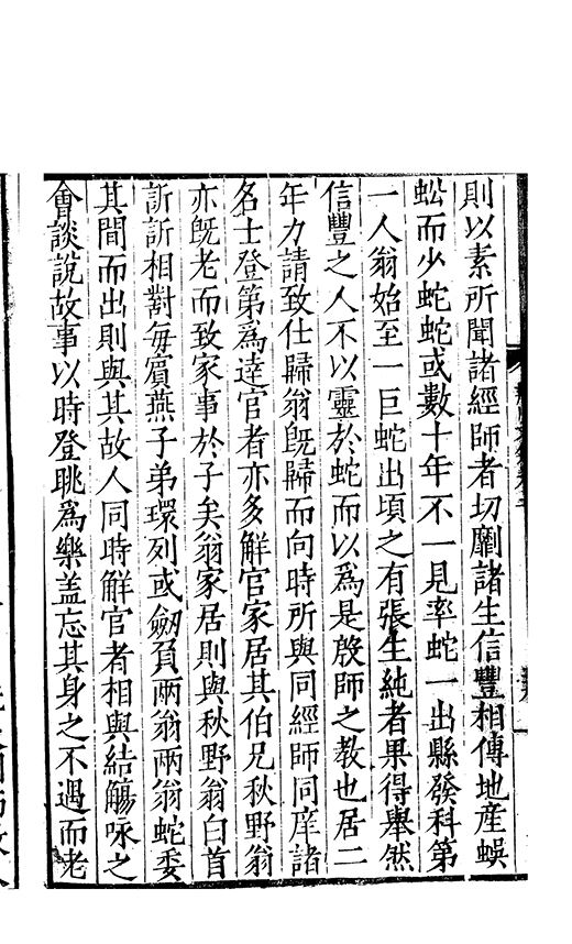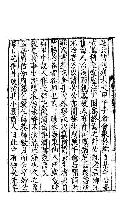 不治經然不輟文墨其間時則作爲草書遂窮極竒變闔闢閃縮上逼懷素詩歌有唐人風骨是時翁伯兄既以文雄於當世而季弟竹窓翁善畫尤以草蟲名一時言文章字畫歸唐氏云伯兄爲給事中值敬皇帝在位言官甚見親幸有權給事公素小心慎事屢爲書與翁大要教之謙下母輙入州縣門即入必傴僂不得騎閭巷徃來戢族屬僮奴不得閙街市中翁遵其說而行之是以唐氏雖世宦然未嘗有子弟爲鄉里所苦者後三十餘年嘉靖某甲子翁年七十餘郡太守請與蜡賔後若干年 詔賜天下老人