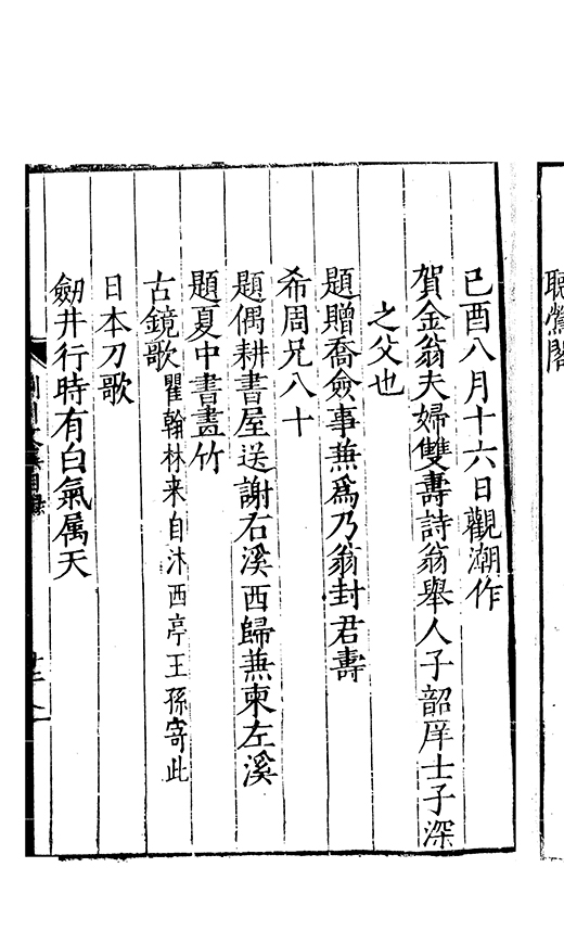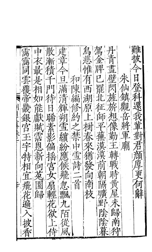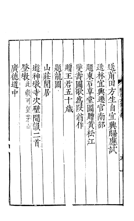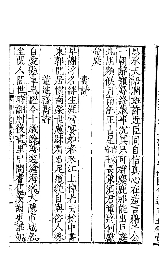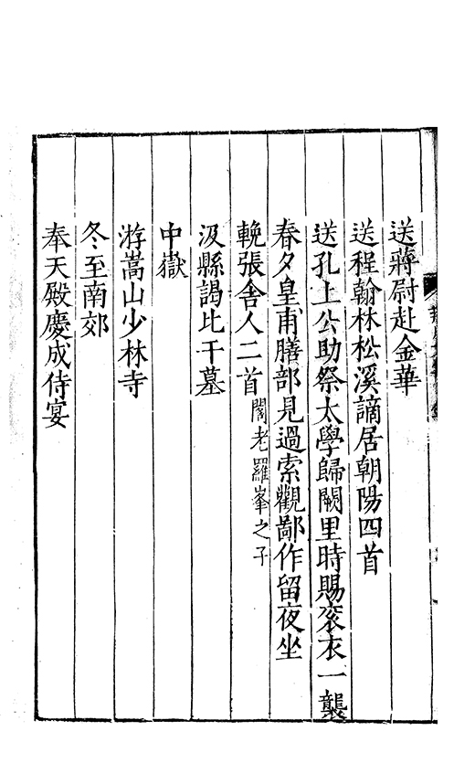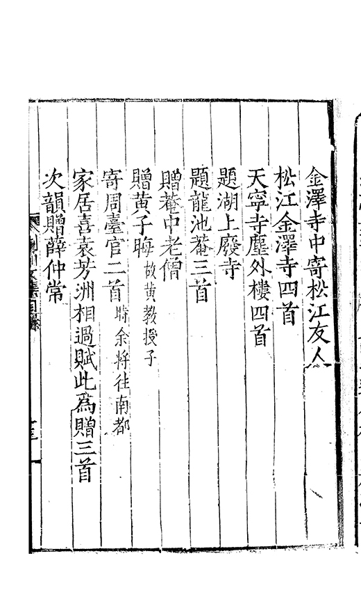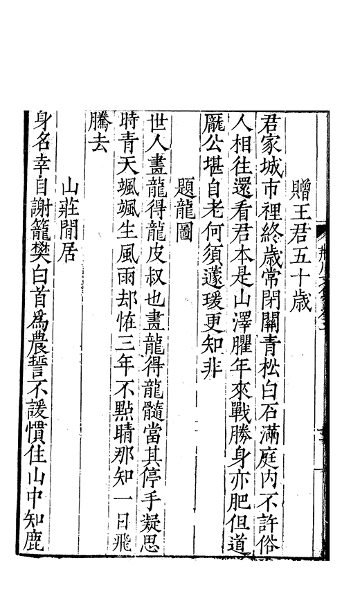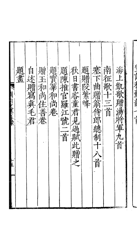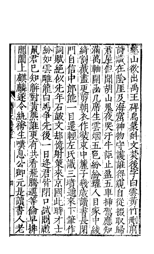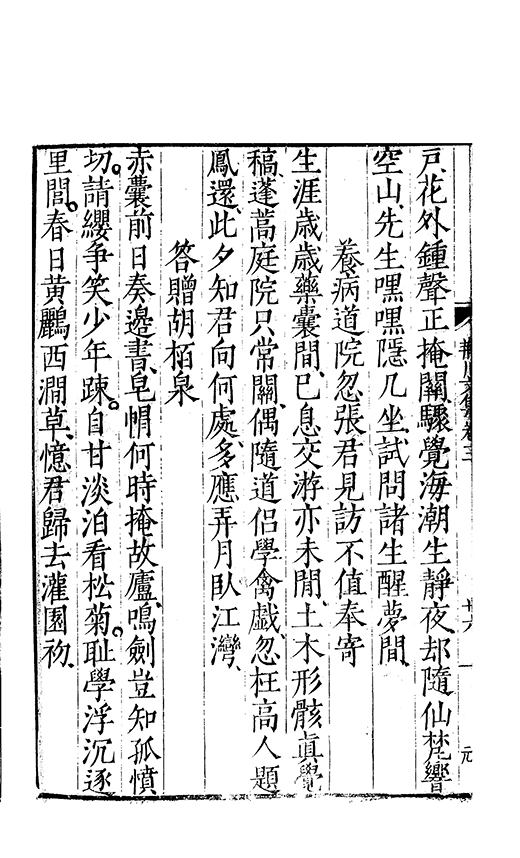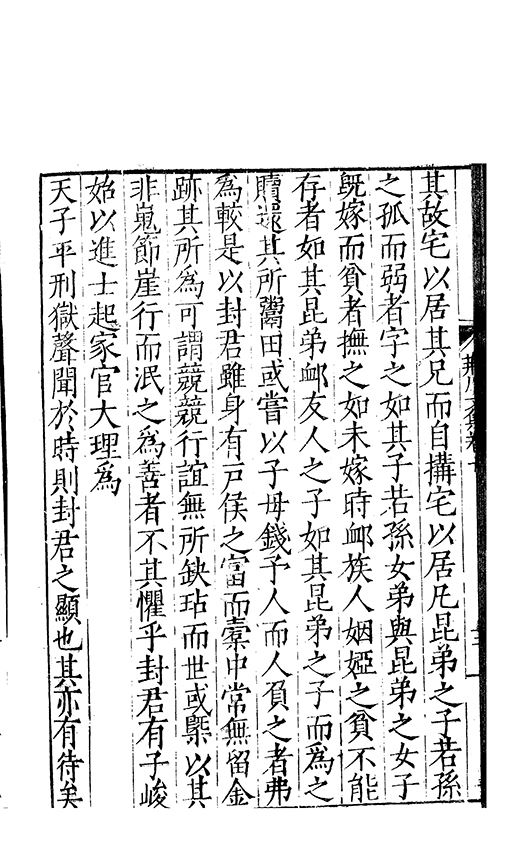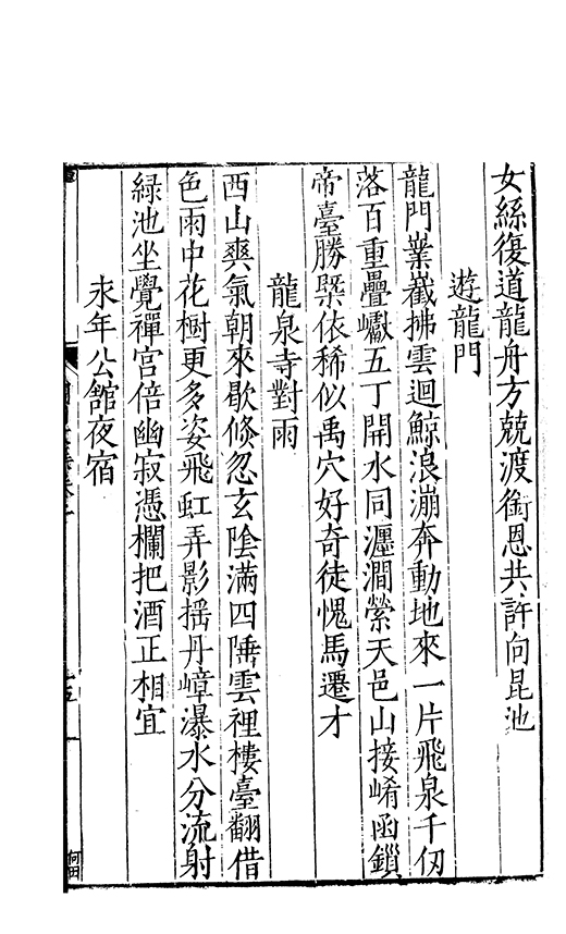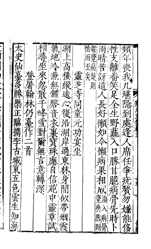 不治經然不輟文墨其間時則作爲草書遂窮極竒變闔闢閃縮上逼懷素詩歌有唐人風骨是時翁伯兄既以文雄於當世而季弟竹窓翁善畫尤以草蟲名一時言文章字畫歸唐氏云伯兄爲給事中值敬皇帝在位言官甚見親幸有權給事公素小心慎事屢爲書與翁大要教之謙下母輙入州縣門即入必傴僂不得騎閭巷徃來戢族屬僮奴不得閙街市中翁遵其說而行之是以唐氏雖世宦然未嘗有子弟爲鄉里所苦者後三十餘年嘉靖某甲子翁年七十餘郡太守請與蜡賔後若干年 詔賜天下老人
