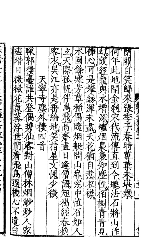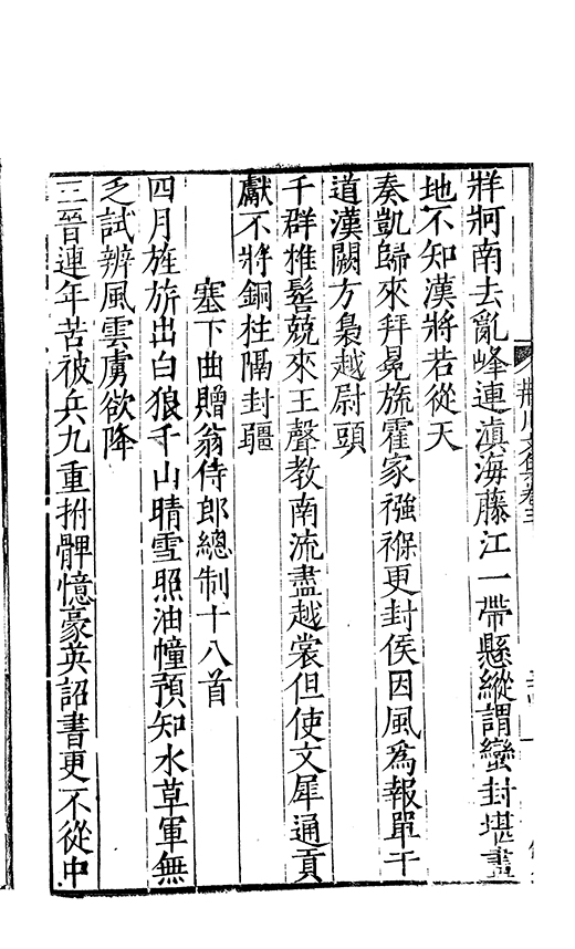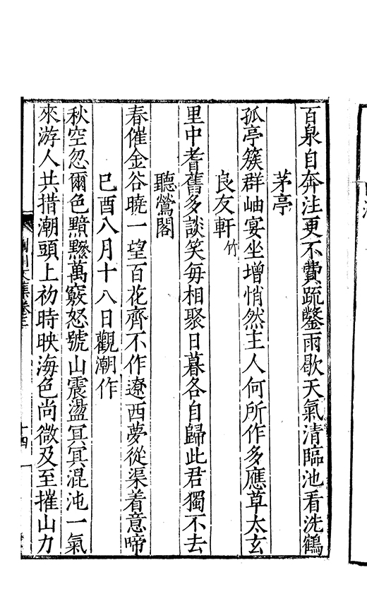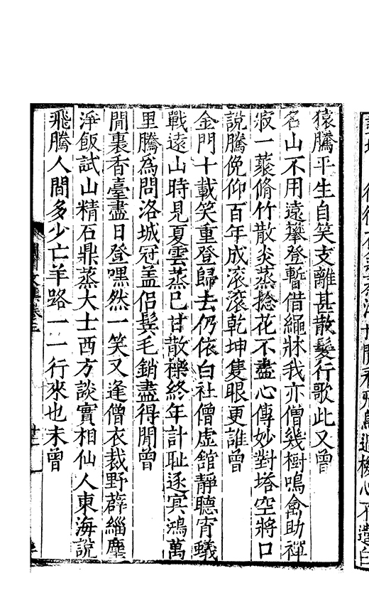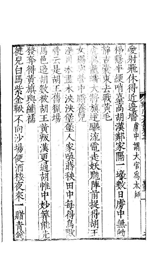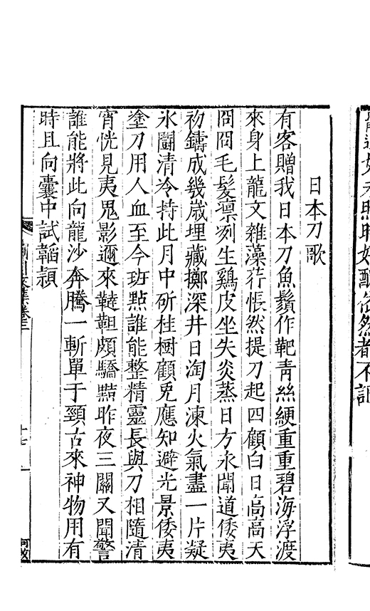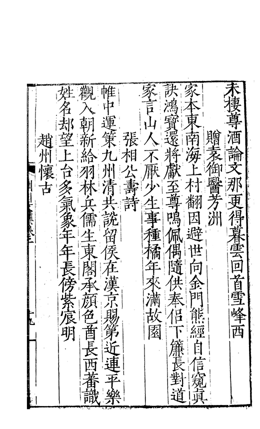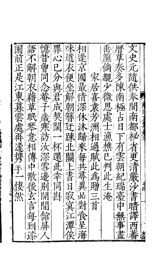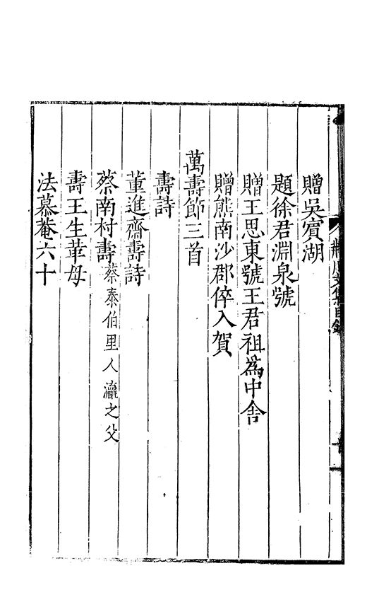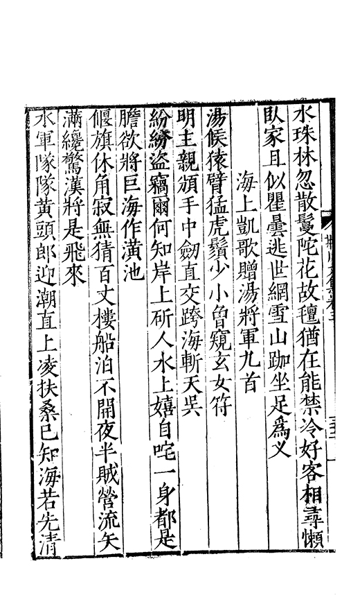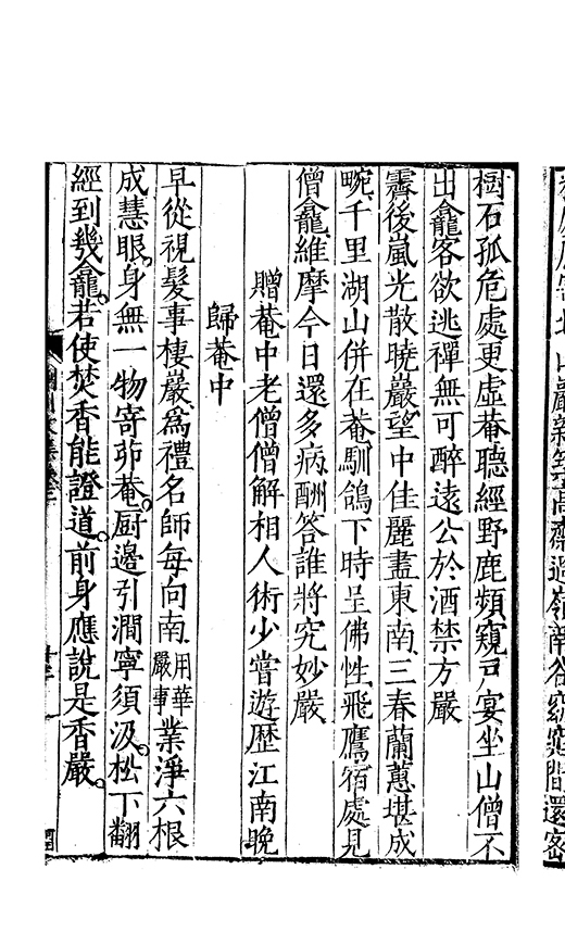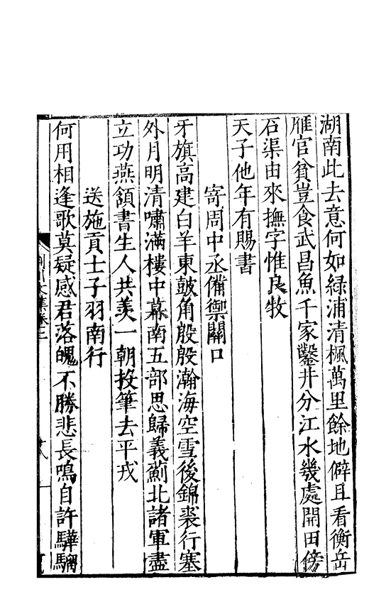 不治經然不輟文墨其間時則作爲草書遂窮極竒變闔闢閃縮上逼懷素詩歌有唐人風骨是時翁伯兄既以文雄於當世而季弟竹窓翁善畫尤以草蟲名一時言文章字畫歸唐氏云伯兄爲給事中值敬皇帝在位言官甚見親幸有權給事公素小心慎事屢爲書與翁大要教之謙下母輙入州縣門即入必傴僂不得騎閭巷徃來戢族屬僮奴不得閙街市中翁遵其說而行之是以唐氏雖世宦然未嘗有子弟爲鄉里所苦者後三十餘年嘉靖某甲子翁年七十餘郡太守請與蜡賔後若干年 詔賜天下老人