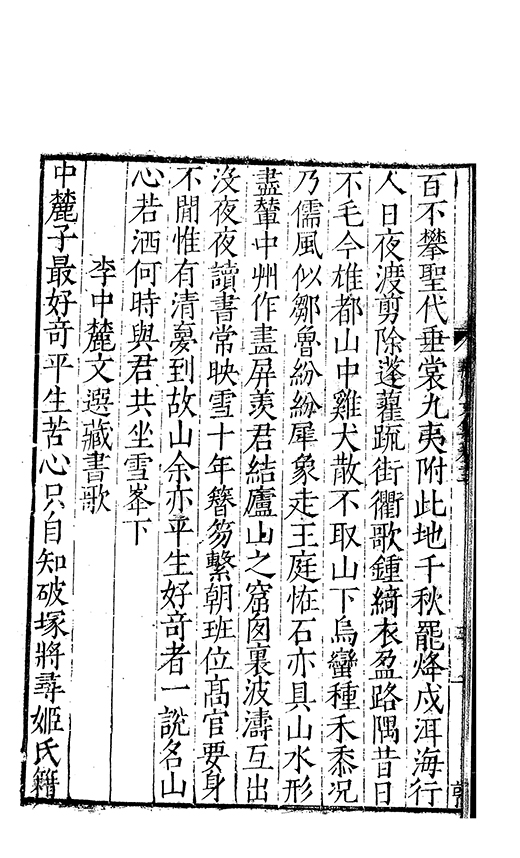 獨惜其風可聞而姓名不著不得與鑿坏羊裘之徒並列隱逸傳然鑿坏羊裘之徒以其身而逃之蒹葭伊人者乃并其姓名而逃之此又其所以爲至也噫嘻士固有不慕乎當世之榮而亦何心於後世之名也哉因慨然爲之一笑遂書以示褚生