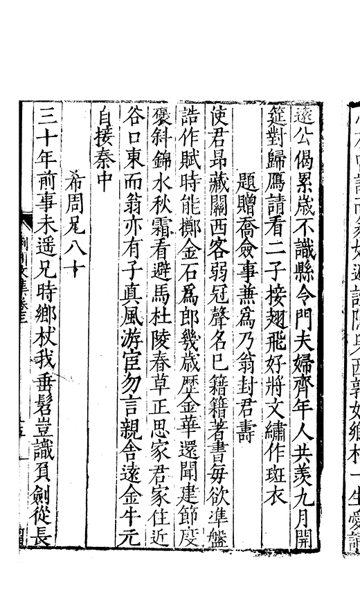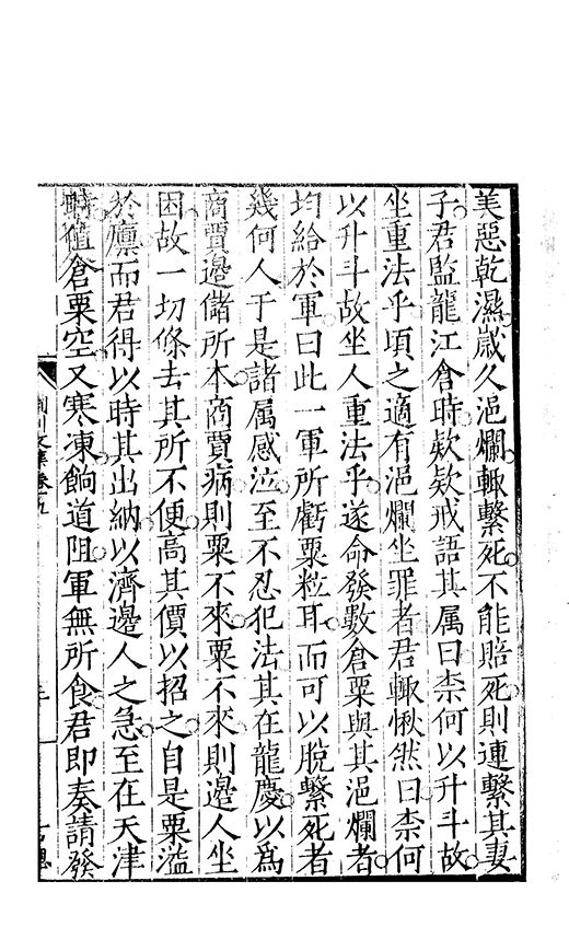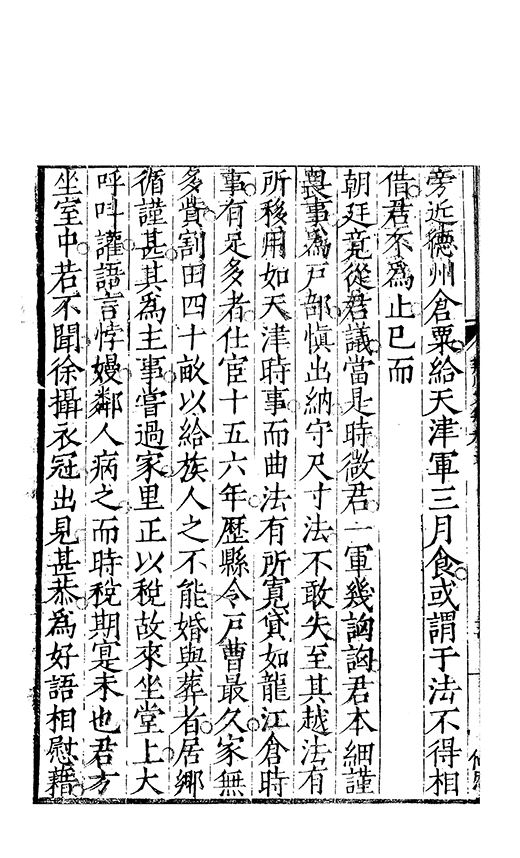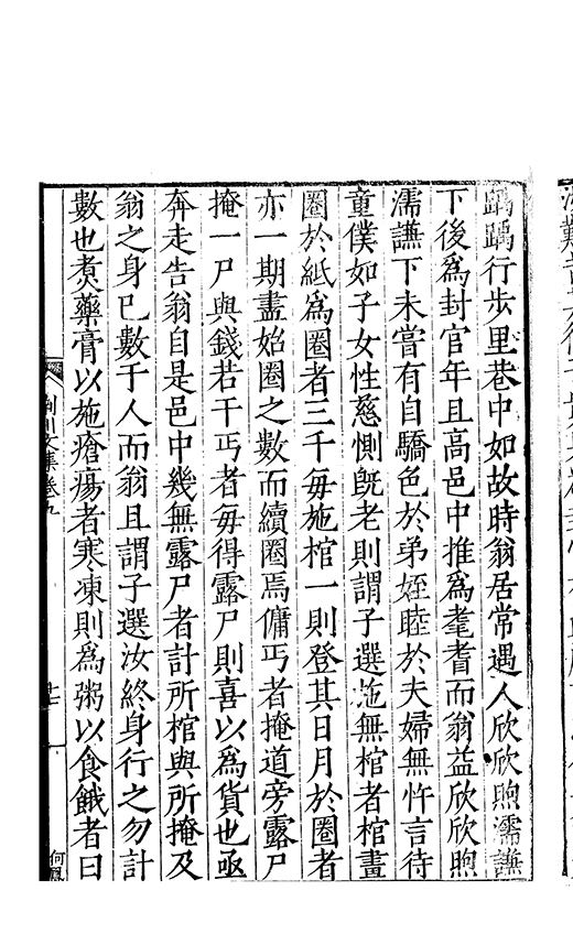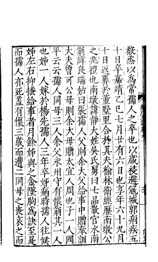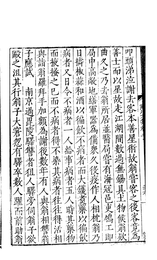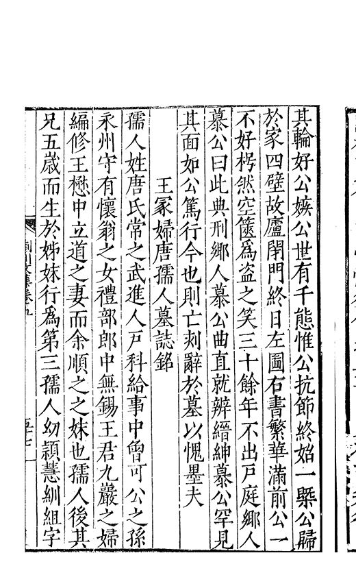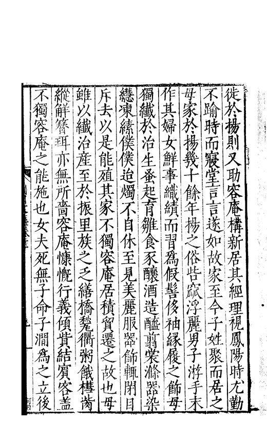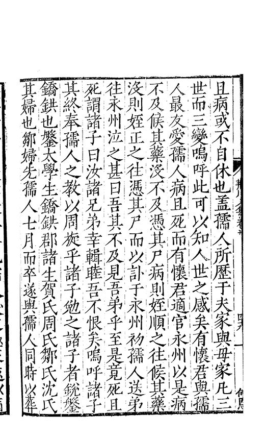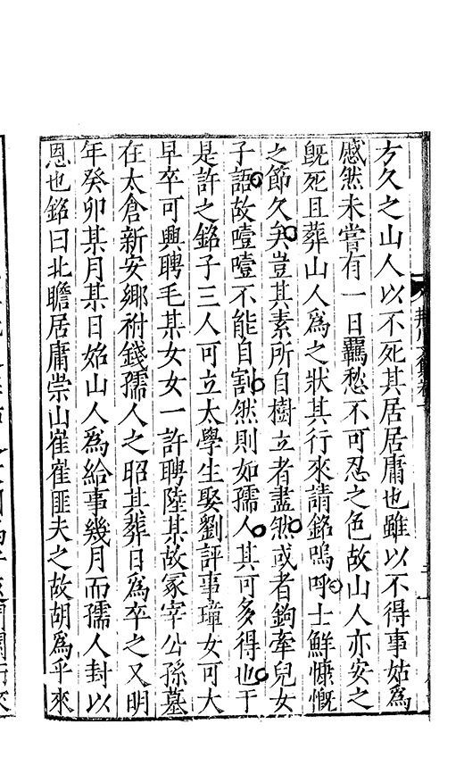 粟帛八十以上冠帶翁於是始冠帶然始一服之後不更服也嘗一與蜡賔後太守連歳以故事請然亦不更往其好省事如此始翁壯時唐氏以給事公故方盛給事公自爲庠生有名聲已能盡致數邑客後爲給事賔客益輳翁家居則應接賔客出則從親朋隣里邀請酒殽之會投壺陸博遨逰宴笑之歡碌碌不絶翁每所過輙爲上客議論常摧其一座人以是人益貌之後翁既老兄弟物故盡平生故人多不存存者亦衰且病不能相往來矣翁又失其壯子獨携二幼孫以居雖門外終歳率不一出甘脆滫滑所以