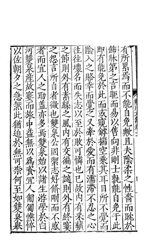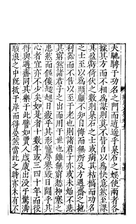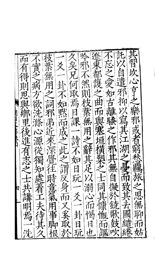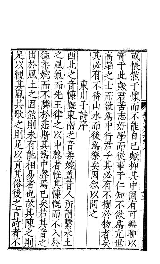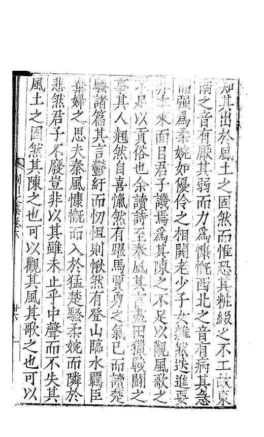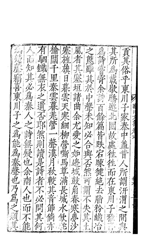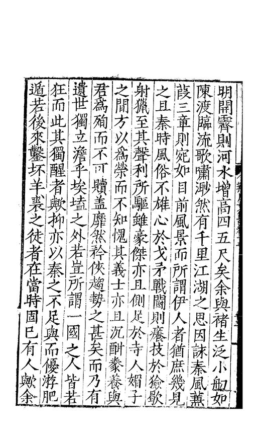 明開霽則河水増高四五尺矣余與禇生泛小舠如陳渡臨流歌嘯渺然有千里江湖之思因詠秦風蒹葭三章則宛如目前風景而所謂伊人者猶庶幾見之且秦時風俗不雄心於戈矛戰闘則癢技於獫歇射獵至其聲利所驅雖豪傑亦且側足於寺人媚子之間方以爲榮而不知愧其義士亦且沉酣豢養與君爲殉而不可贖盖靡然矜俠趨勢之甚矣而乃有遺世獨立澹乎埃□之外若豈所謂一國之人皆若狂而此其獨醒者歟抑亦以秦之不足與而優游肥遁若後來鑿坏羊裘之徒者在當時固已有人歟余