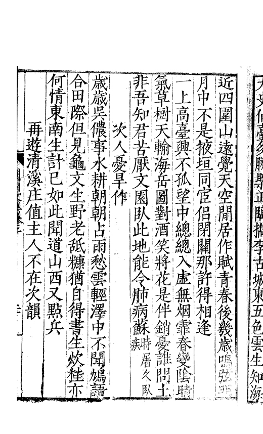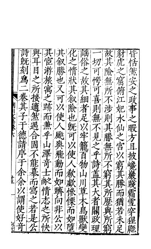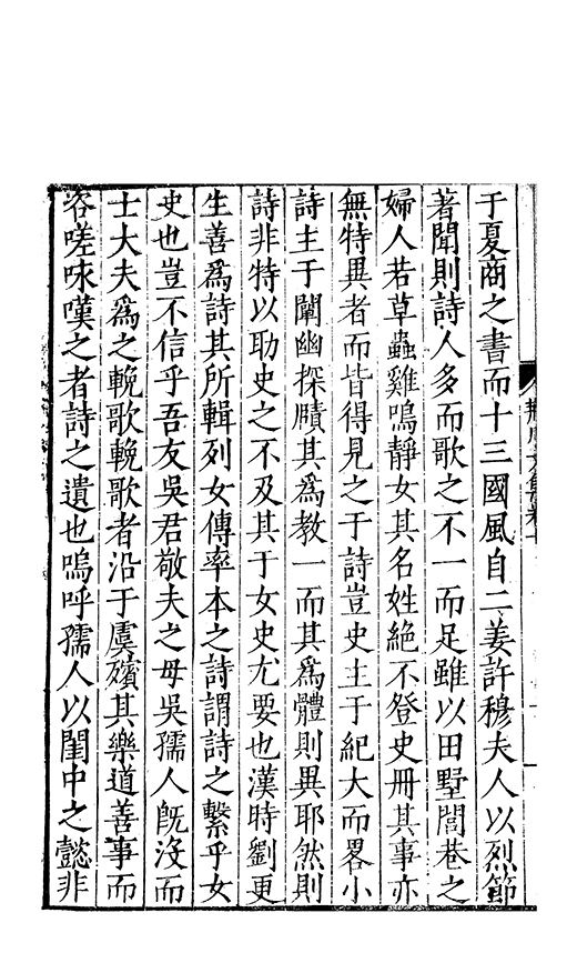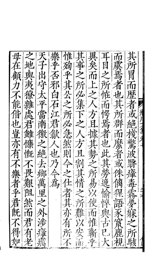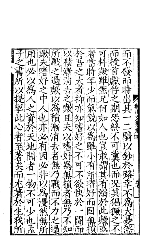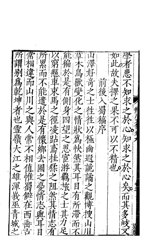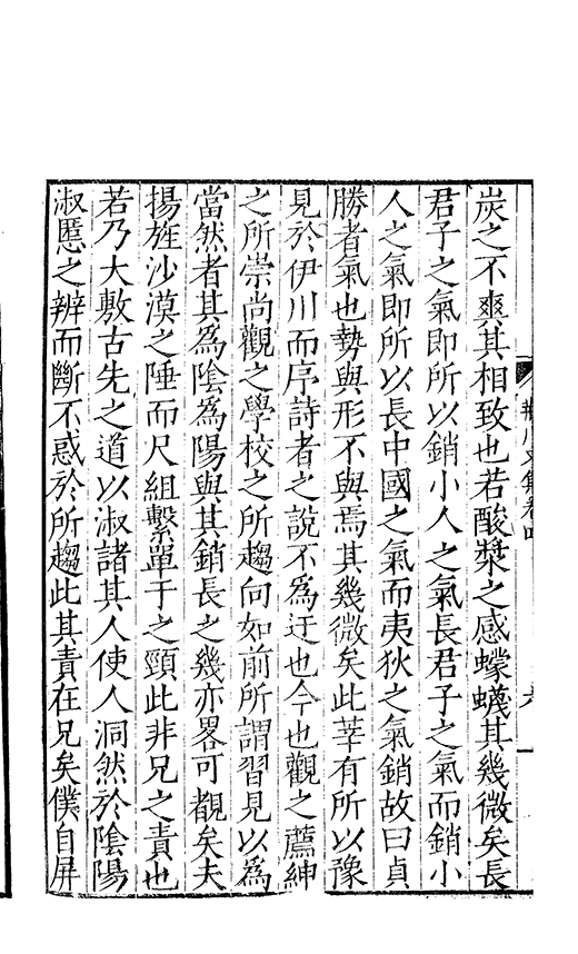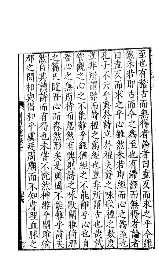 明開霽則河水増高四五尺矣余與禇生泛小舠如陳渡臨流歌嘯渺然有千里江湖之思因詠秦風蒹葭三章則宛如目前風景而所謂伊人者猶庶幾見之且秦時風俗不雄心於戈矛戰闘則癢技於獫歇射獵至其聲利所驅雖豪傑亦且側足於寺人媚子之間方以爲榮而不知愧其義士亦且沉酣豢養與君爲殉而不可贖盖靡然矜俠趨勢之甚矣而乃有遺世獨立澹乎埃□之外若豈所謂一國之人皆若狂而此其獨醒者歟抑亦以秦之不足與而優游肥遁若後來鑿坏羊裘之徒者在當時固已有人歟余