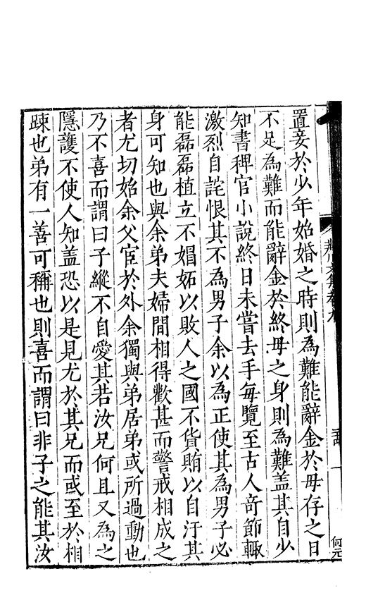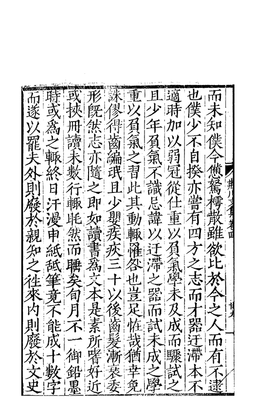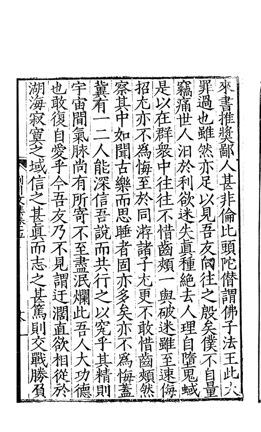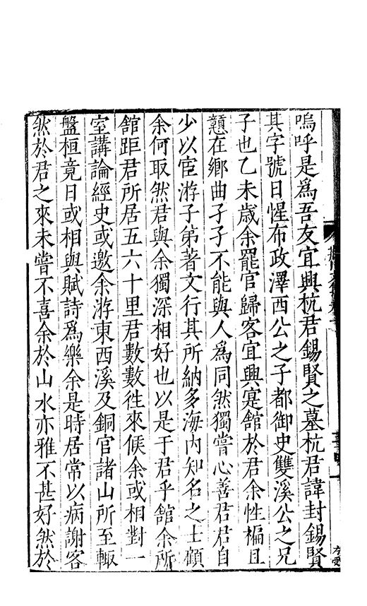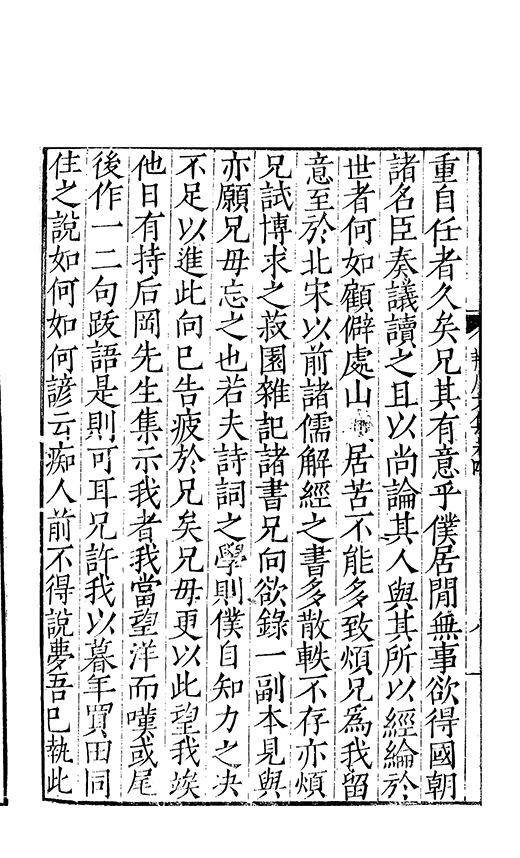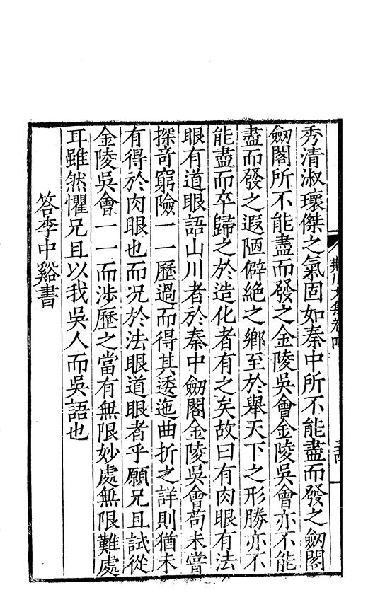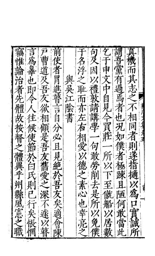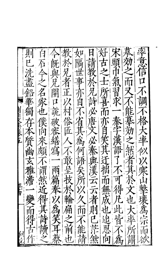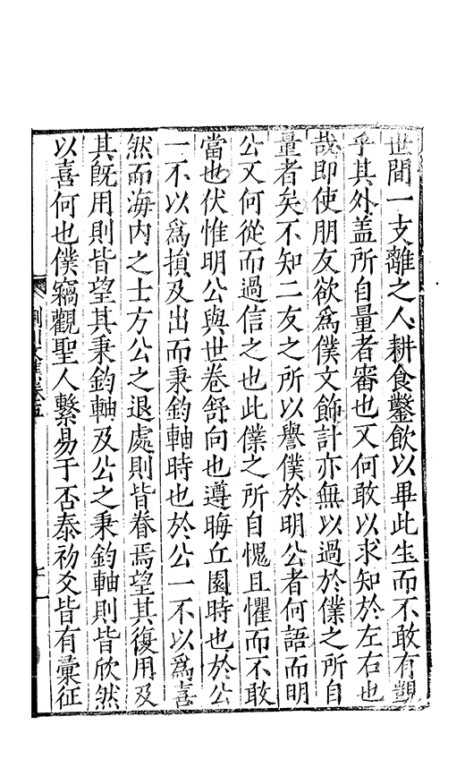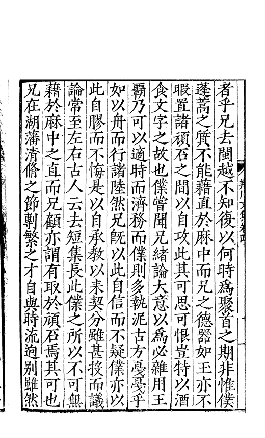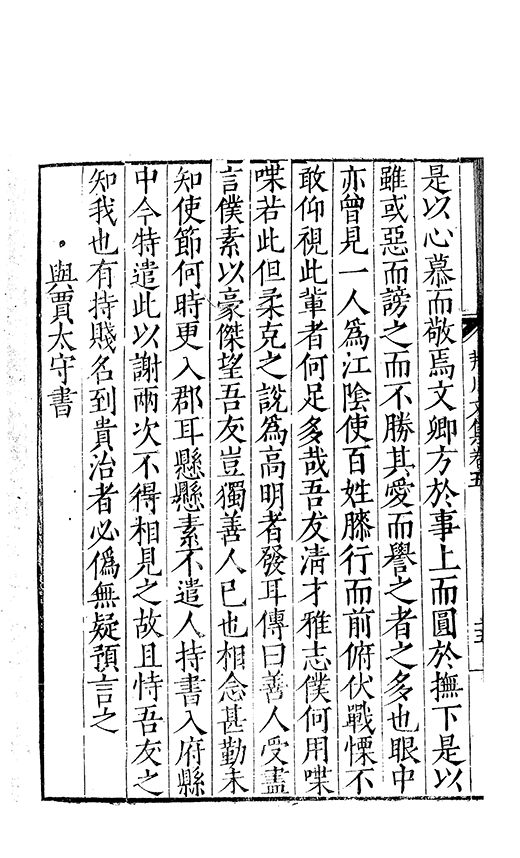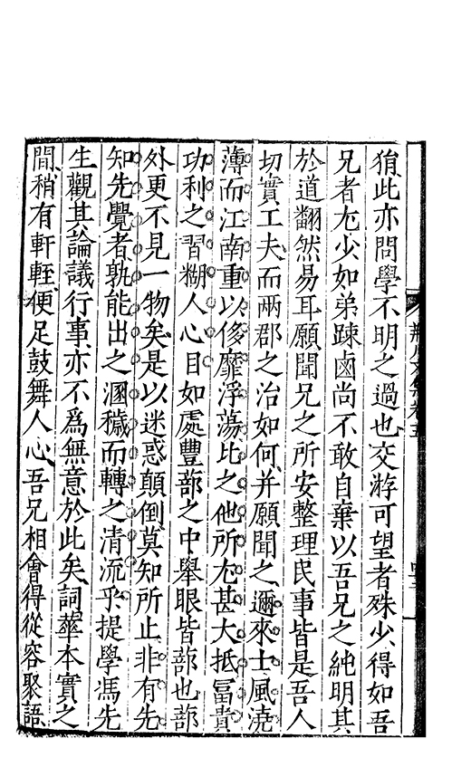 文人正不少以爲僕盖過二千年吳下詞人而直接札游之文統旣使兄爲私於所好又若使僕與人争名争先然者非兄之所以愛僕也使兄今日爲僕作序則亦宜道兄與僕昔以文相切磋以才弱志隳幾成而罷之意句句道却實事庶使兄爲不誣而吾亦可以不愧耳至於兄之雄文則千百年自有定價倘吾文稍進乃敢爲兄作序今且不欲羔袖於狐裘也刻板事旣已力止兄序遂亦寳藏之未敢示人也不具