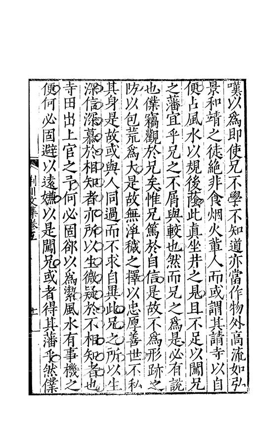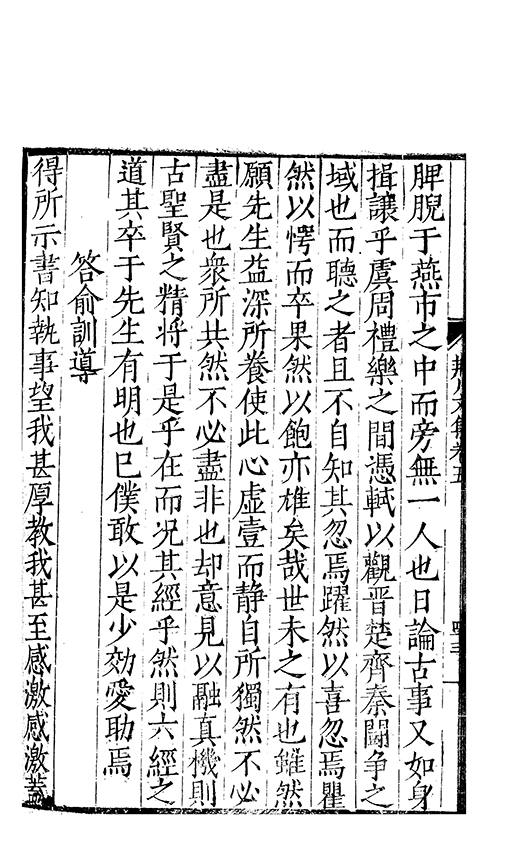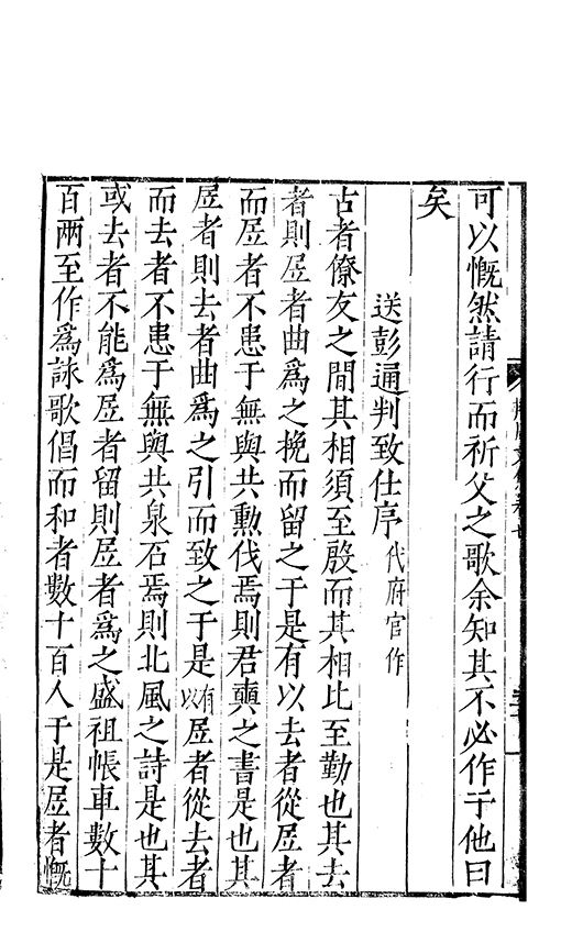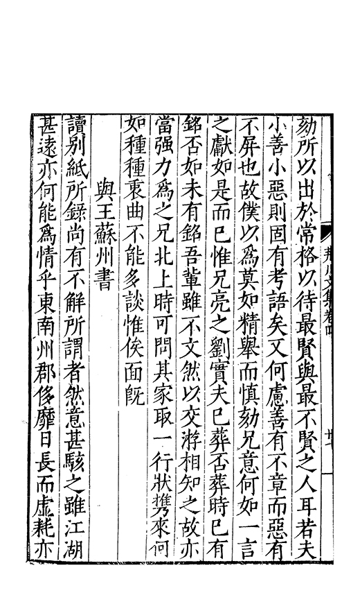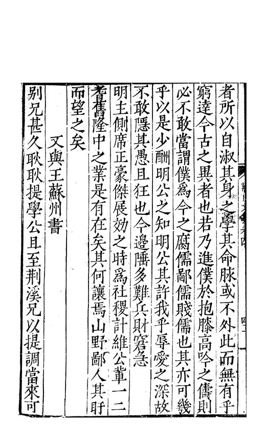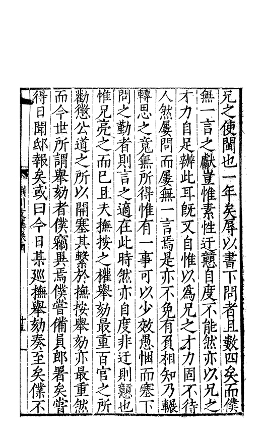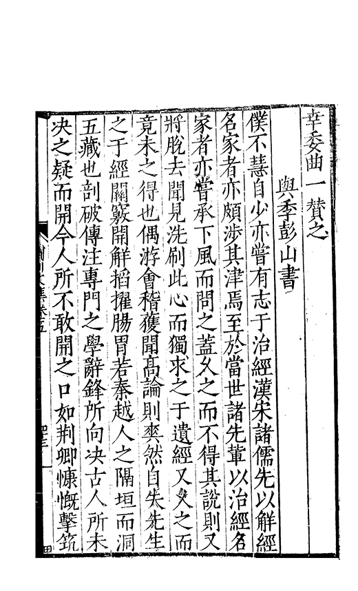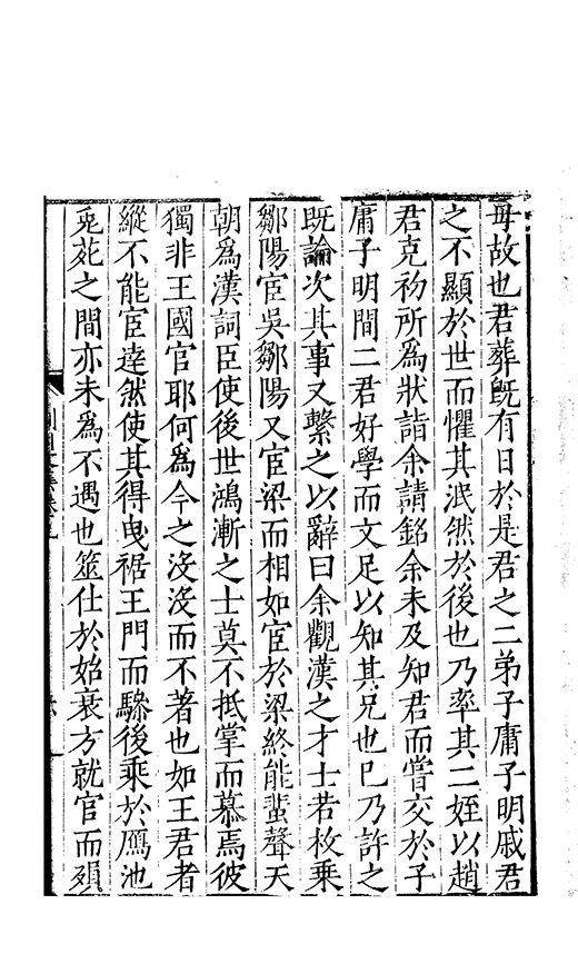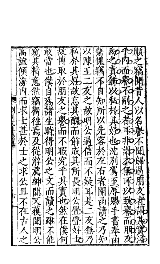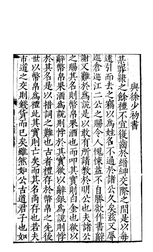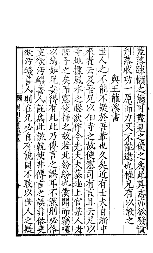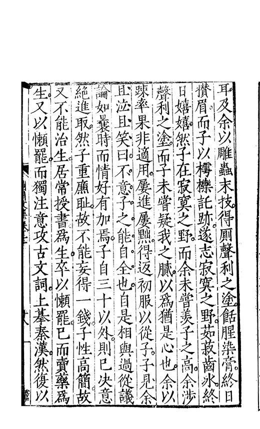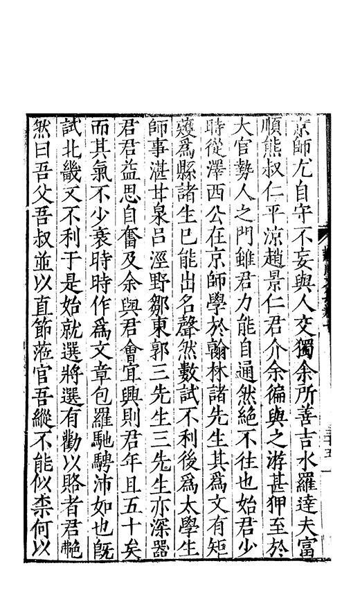 文人正不少以爲僕盖過二千年吳下詞人而直接札游之文統旣使兄爲私於所好又若使僕與人争名争先然者非兄之所以愛僕也使兄今日爲僕作序則亦宜道兄與僕昔以文相切磋以才弱志隳幾成而罷之意句句道却實事庶使兄爲不誣而吾亦可以不愧耳至於兄之雄文則千百年自有定價倘吾文稍進乃敢爲兄作序今且不欲羔袖於狐裘也刻板事旣已力止兄序遂亦寳藏之未敢示人也不具