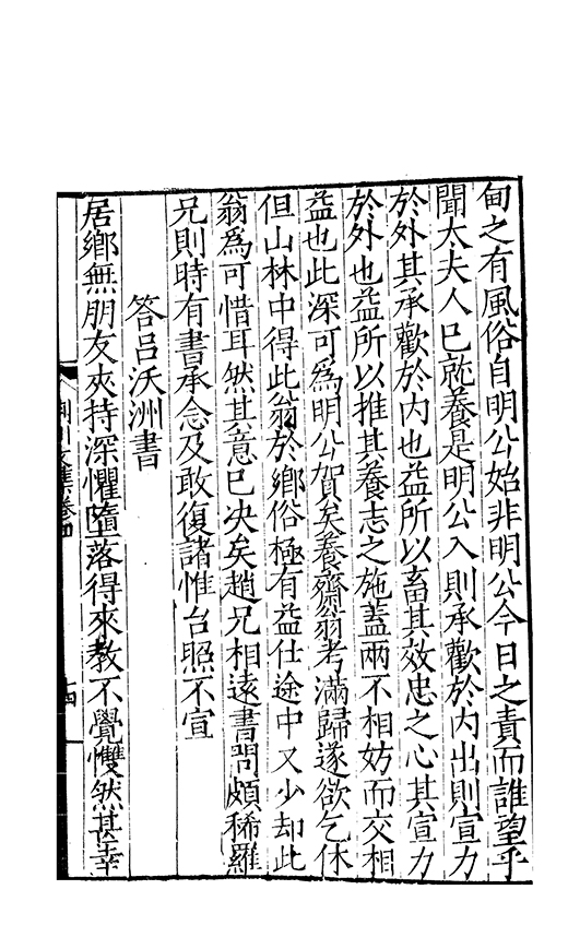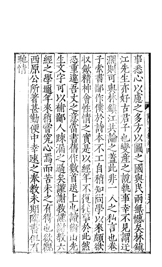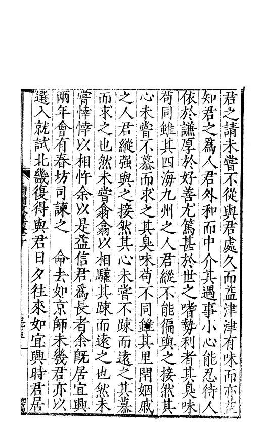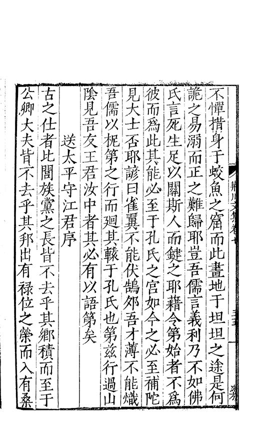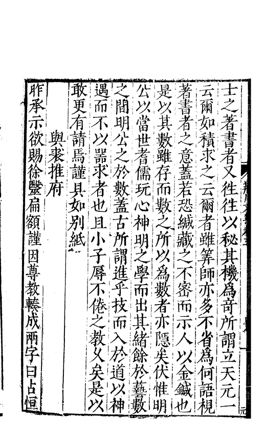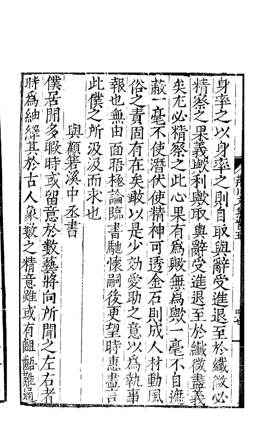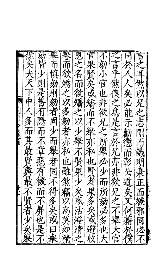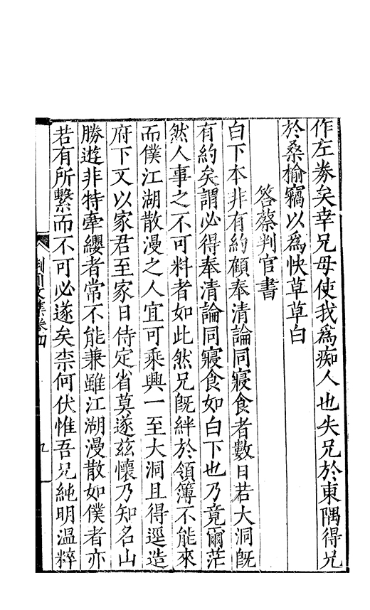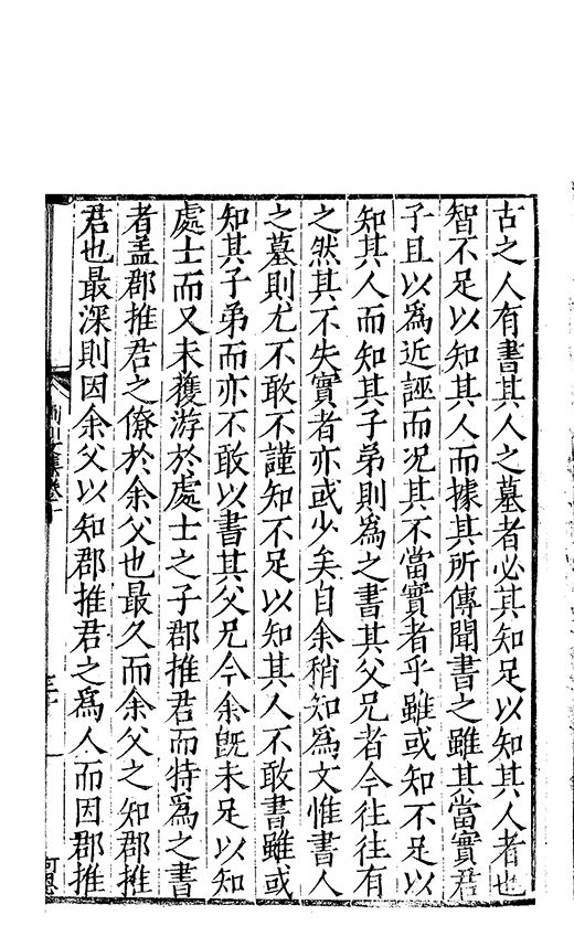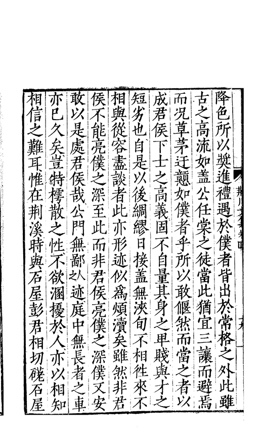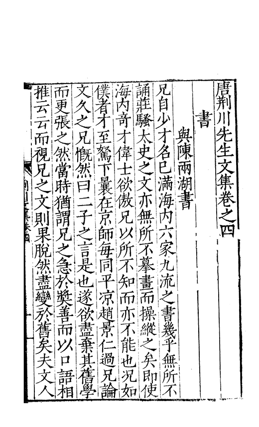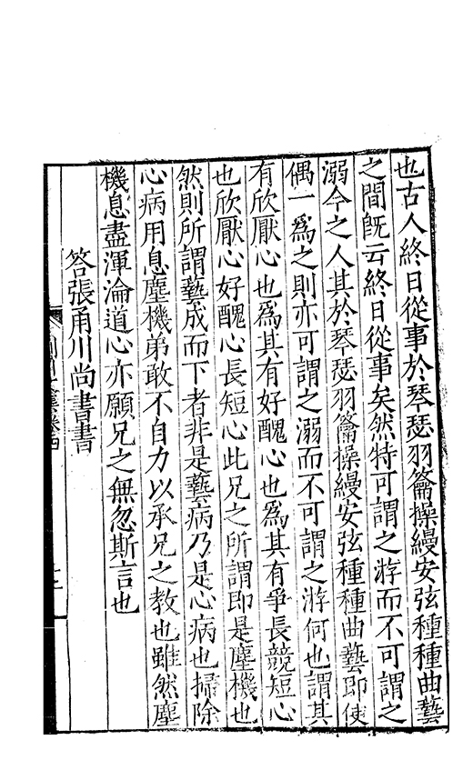 文人正不少以爲僕盖過二千年吳下詞人而直接札游之文統旣使兄爲私於所好又若使僕與人争名争先然者非兄之所以愛僕也使兄今日爲僕作序則亦宜道兄與僕昔以文相切磋以才弱志隳幾成而罷之意句句道却實事庶使兄爲不誣而吾亦可以不愧耳至於兄之雄文則千百年自有定價倘吾文稍進乃敢爲兄作序今且不欲羔袖於狐裘也刻板事旣已力止兄序遂亦寳藏之未敢示人也不具