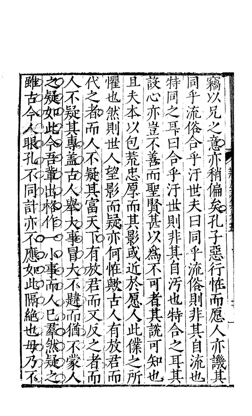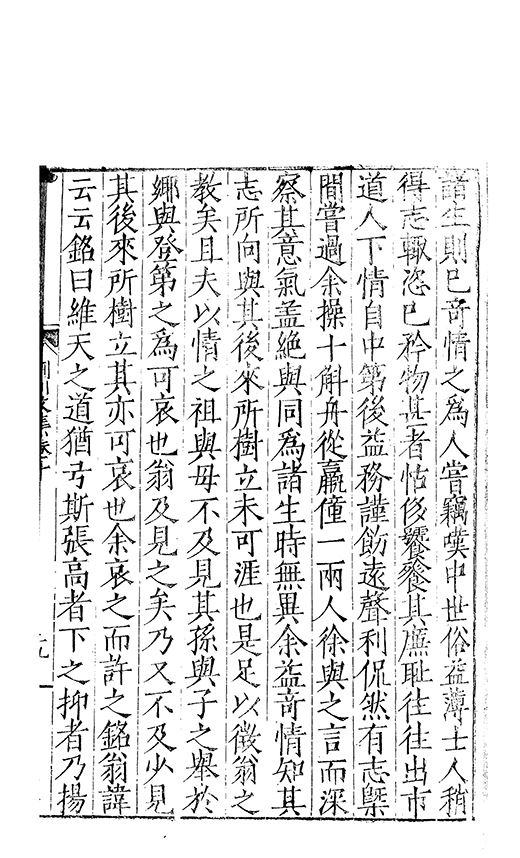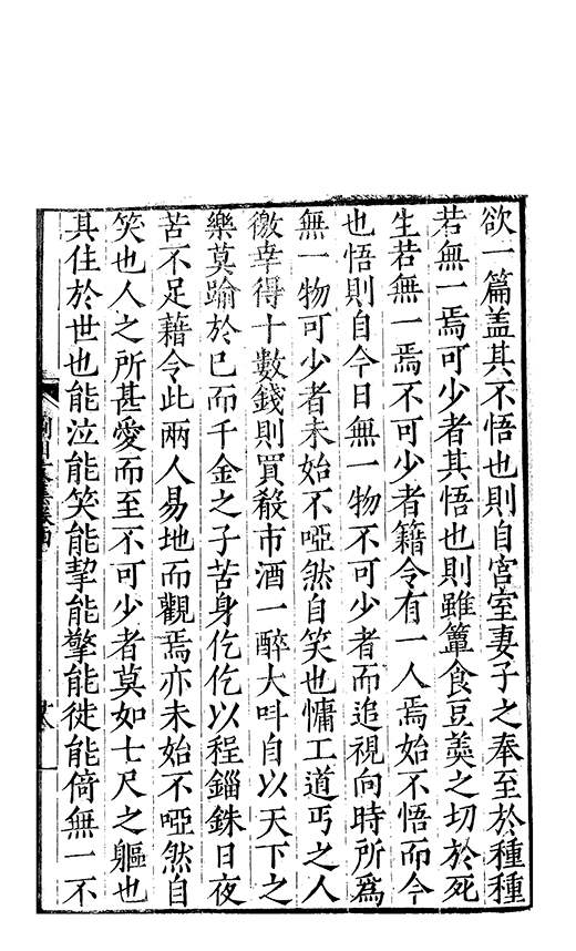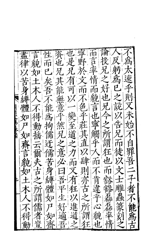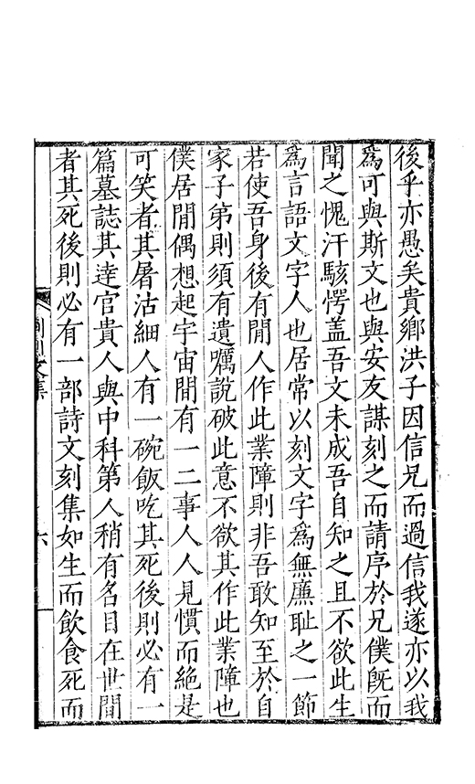 後乎亦愚矣貴鄕洪子因信兄而過信我遂亦以我爲可與斯文也與安友謀刻之而請序於兄僕旣而聞之愧汗駭愕盖吾文未成吾自知之且不欲此生爲言語文字人也居常以刻文字爲無廉耻之一節若使吾身後有閒人作此業障則非吾敢知至於自家子弟則須有遺□說破此意不欲其作此業障也僕居閒偶想起宇宙間有一二事人人見慣而絶是可笑者其屠沽細人有一碗飯吃其死後則必有一篇墓誌其逹官貴人與中科第人稍有名目在世間者其死後則必有一部詩文刻集如生而飲食死而