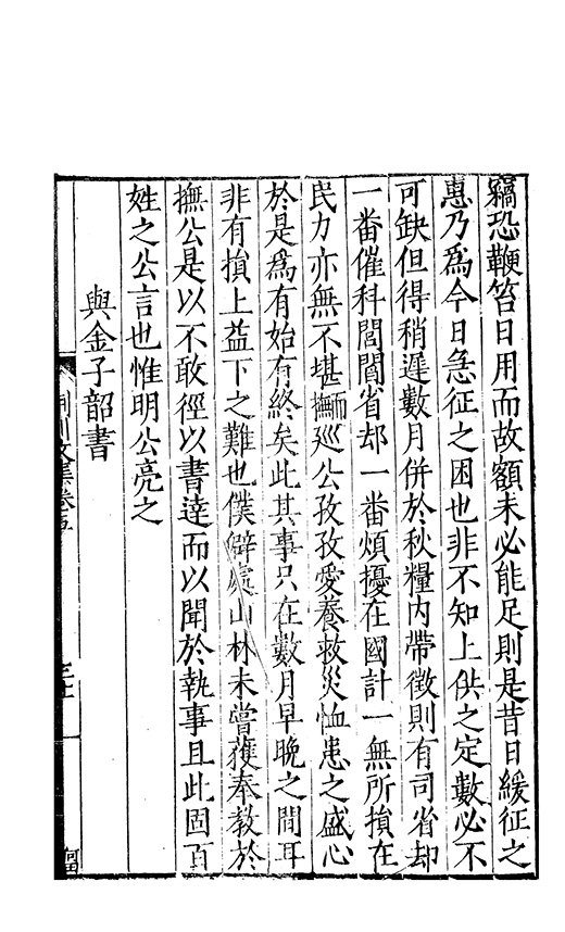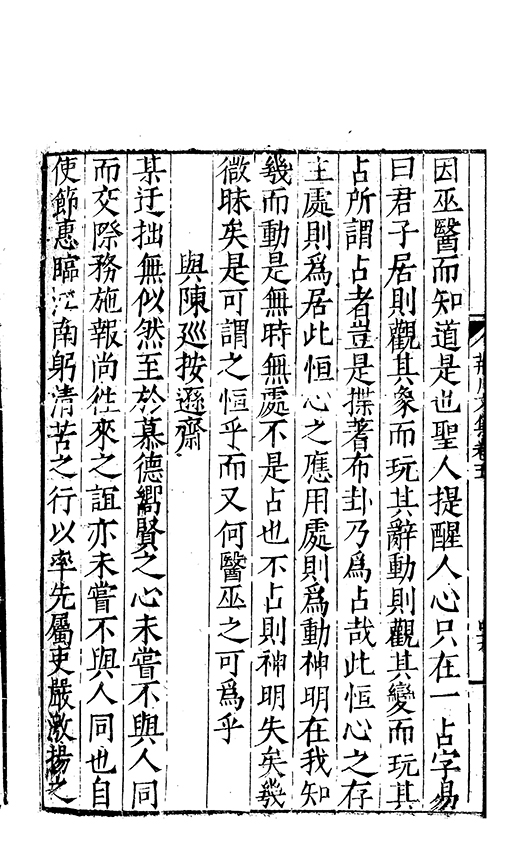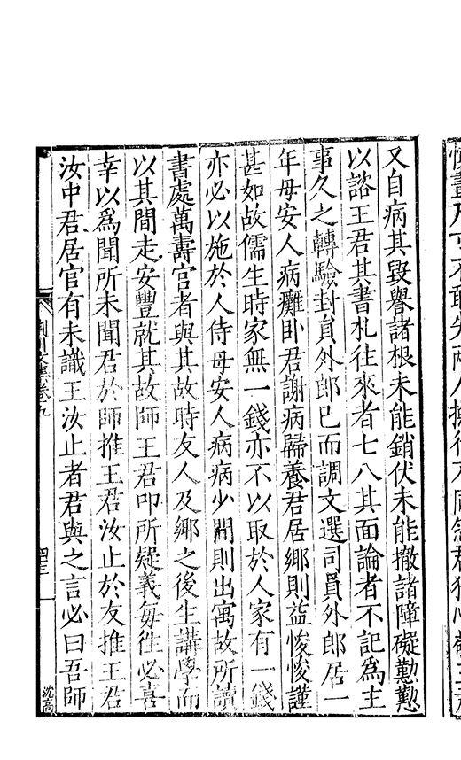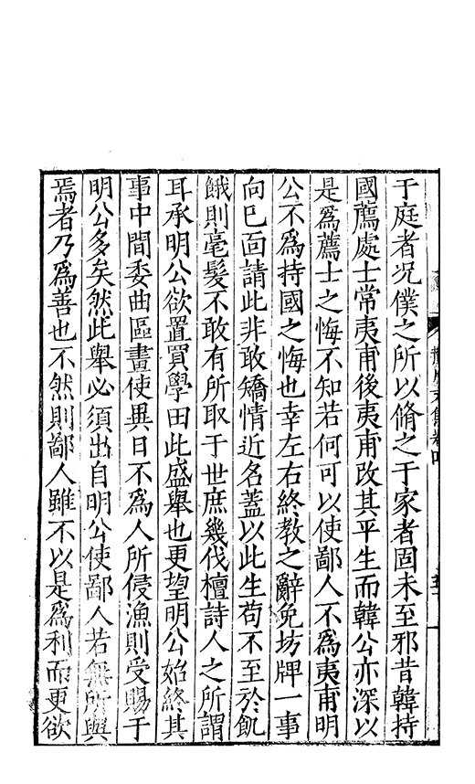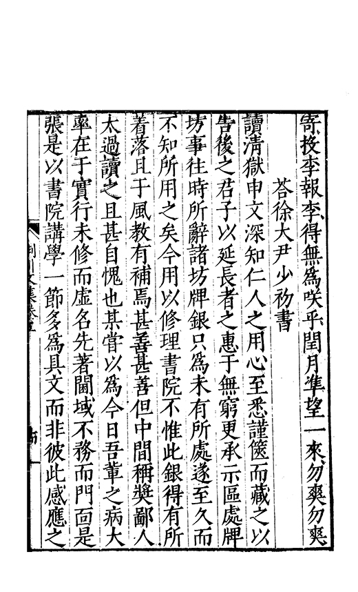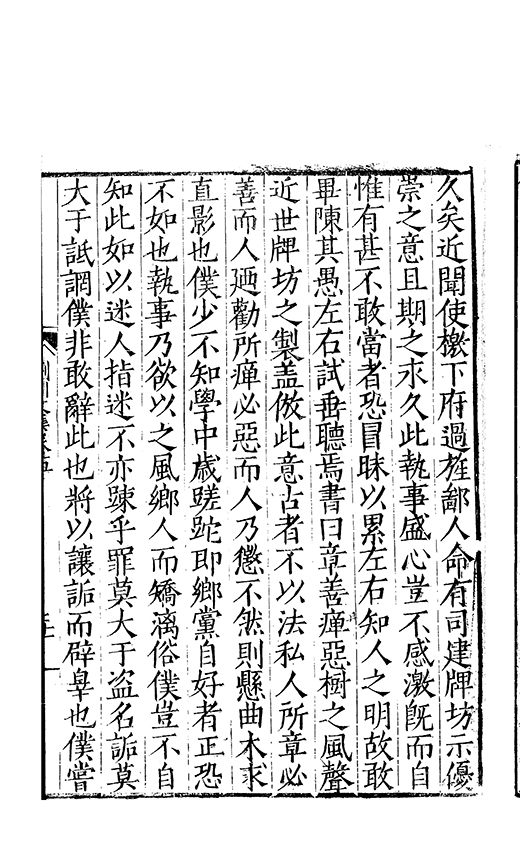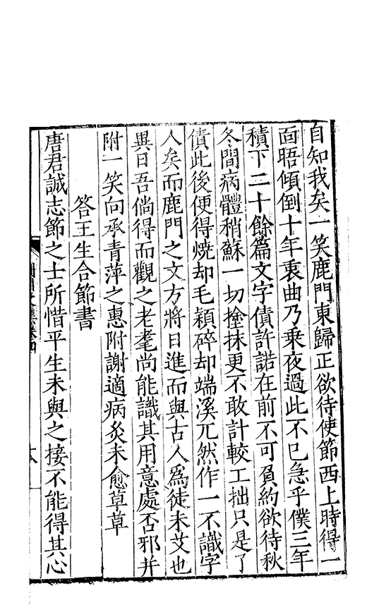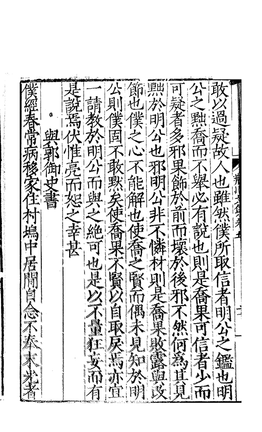 僕支離床席已成廢人久不能一奉晤言殊深耿耿近敝邑一刻字人云執事欲刻鄙言雖或傳言之妄然聞之殊不自安盖執事與善之過雖淺陋言語猶不欲遺之此在執事則爲盛心然本非立言之人而徒爲覆瓿之用此在鄙人則甚可愧且今世所謂文集者徧滿世間不爲少矣其實一字無用彼其初作者莫不妄意于不朽之圖而適足以自彰其陋以取誚於觀者徒所謂木災而已僕毎爲彼愧之而復自効尤之乎昔人論文章家惟見理明而用功深者乃能得之此未易言也况僕平生本無立言以求不朽