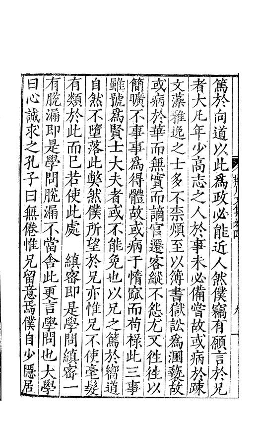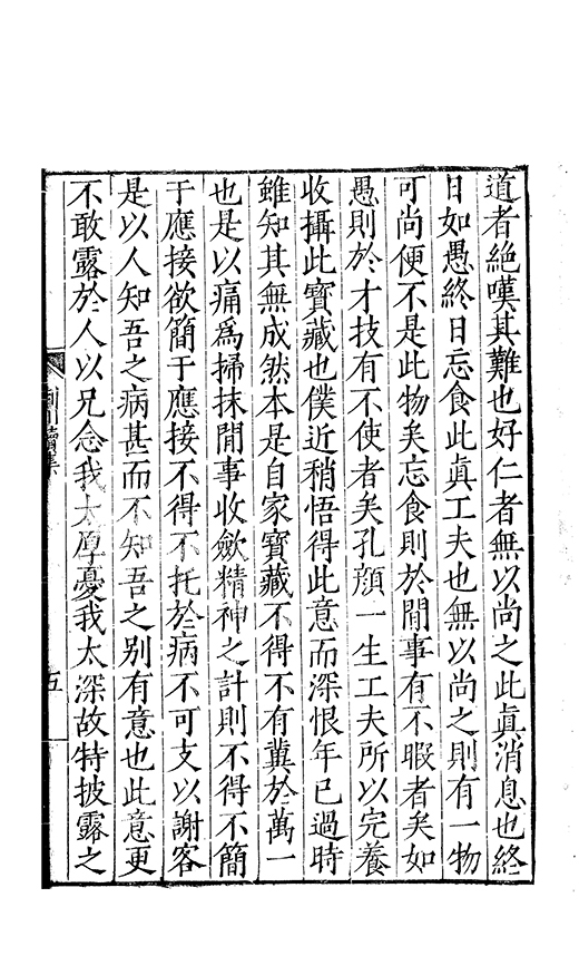 道者絶嘆其難也好仁者無以尚之此眞消息也終日如愚終日忘食此眞工夫也無以尚之則有一物可尚便不是此物矣忘食則於閒事有不暇者矣如愚則於才技有不使者矣孔顔一生工夫所以完養收攝此寳藏也僕近稍悟得此意而深恨年已過時雖知其無成然本是自家寳藏不得不有冀於萬一也是以痛爲掃抹閒事收斂精神之計則不得不簡于應接欲簡于應接不得不托於病不可支以謝客是以人知吾之病甚而不知吾之别有意也此意更不敢露於人以兄念我太厚憂我太深故特披露之