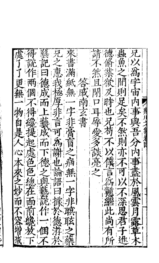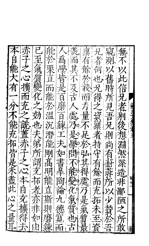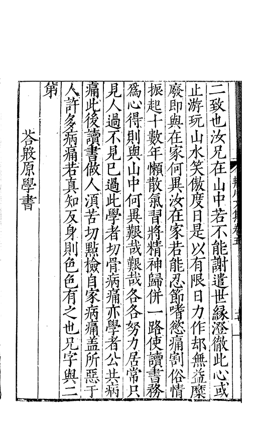 兄萬無洩我秘宻重增嘵嘵之口也安友爲我求序得託雄文以不朽甚幸過望僕舊從兄學爲文章有一二僅得處盡是兄之指教但才旣不長又不能竭精力以從事是以遂成廢罷韓子所謂徙業者不嚌其胾者也獨覺兄之奔逸絶塵而已矣近来自觀舊稿支離叛道之言篇篇有之理旣不當文亦未工赧然盡欲焚燒而後爲快縁頗爲人抄録無可柰何盖以吾今日文字伎倆須并却三四年精力專專幹此一事自謂可望於古閫域今自度必無此閒精神可以了此也旣自知不了則豈欲以不了者而信今傳