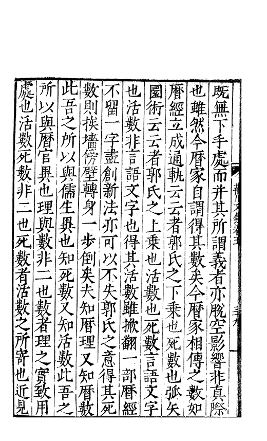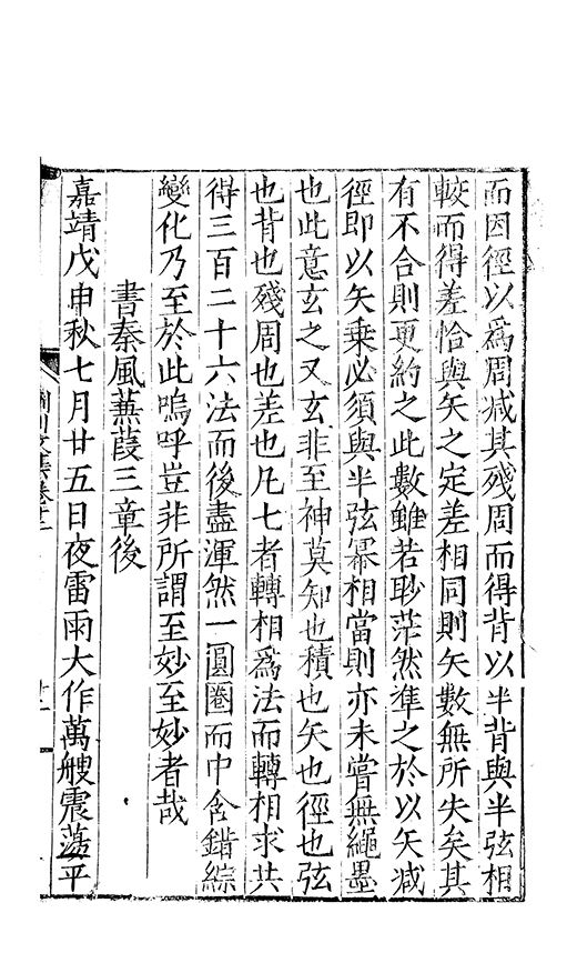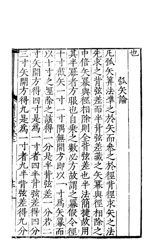 而因徑以爲周减其殘周而得背以半背與半弦相較而得差恰與矢之定差相同則矢數無所失矣其有不合則更約之此數雖若眇茫然凖之於以矢减徑即以矢乗必須與半弦冪相當則亦未嘗無繩墨也此意玄之又玄非至神莫知也積也矢也徑也弦也背也殘周也差也凡七者轉相爲法而轉相求共得三百二十六法而後盡渾然一圓圈而中含錯綜變化乃至於此嗚呼豈非所謂至妙至妙者哉