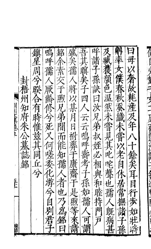輔老之具亦不能豐也時時有一二族子問起居翁據牀坐與之道說故事助遣歳時而已人謂翁由喧熱至落莫不能無介介翁獨翛然自得也然自翁而上友蘭翁年至四十有幾翁伯兄仲兄亦皆不及五十而卒竹窓翁卒以五十而翁在父子兄弟中獨巋然老壽至於八十有三其所得可不謂厚也歟翁配云云葬以卒後三月某甲子在黄塘祖塋之次於是一之圖所以不朽翁而欲請銘於立言君子乃謂順之述其事畧順之於翁爲姪孫而給事公之孫云