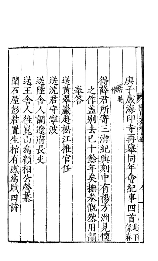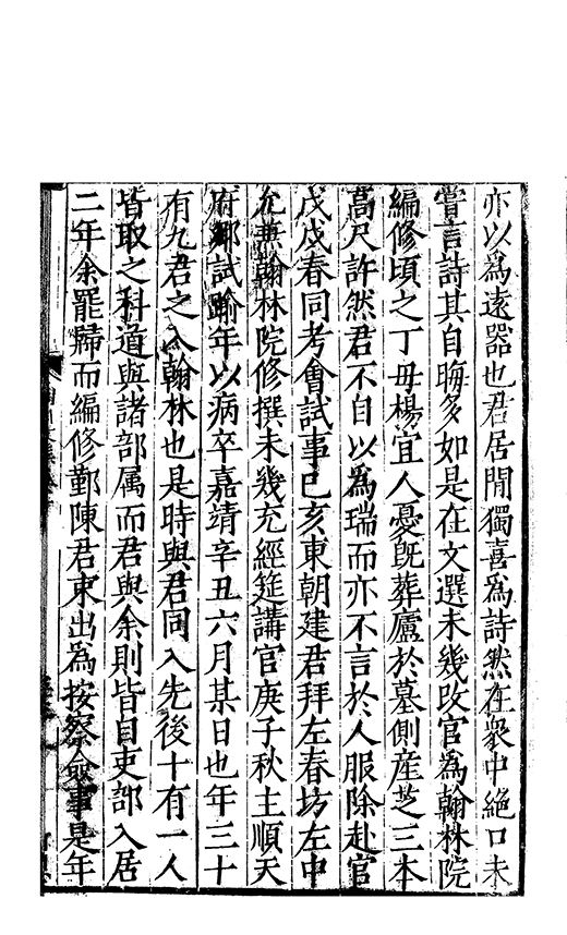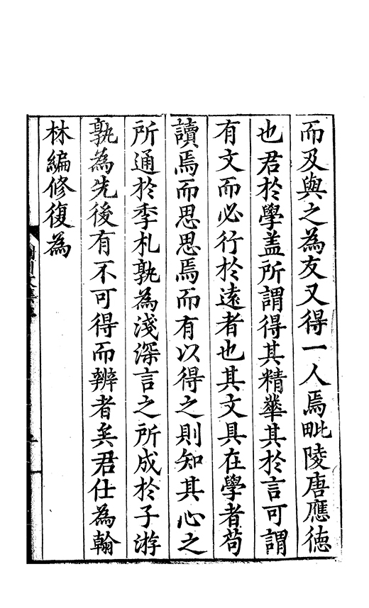 而及與之為友又得一人焉毗陵唐應徳也君扵學盖所謂得其精華其扵言可謂有文而必行扵逺者也其文具在學者苟讀焉而思思焉而有以得之則知其心之所通扵季札孰為淺深言之所成扵子游孰為先後有不可得而辨者矣君仕為翰林編修復為