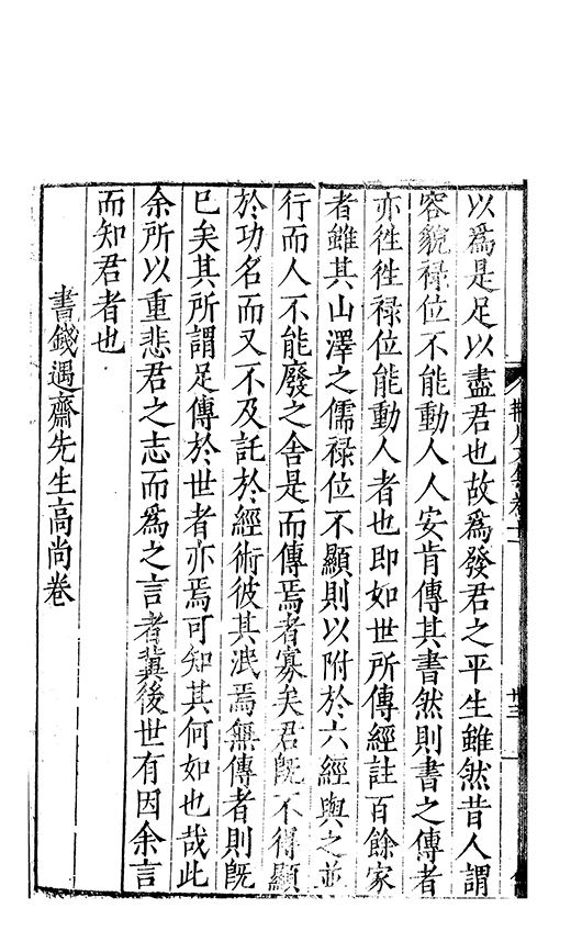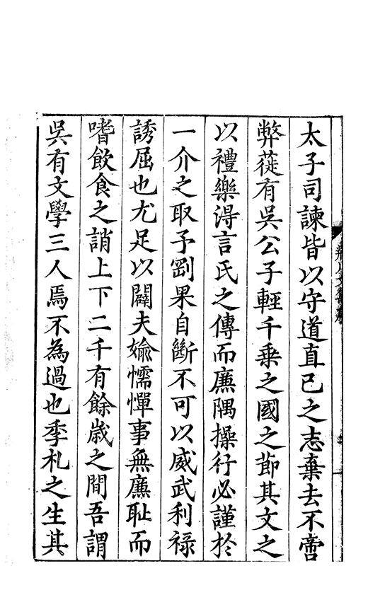 太子司諫皆以守道直已之志棄去不啻弊蓰有呉公子輕千乗之國之莭其文之以禮樂淂言氏之傳而廉隅操行必謹扵一介之取予剛果自斷不可以威武利禄誘屈也尤足以闢夫媮懦憚事無廉耻而嗜飲食之誚上下二千有餘嵗之間吾謂呉有文學三人焉不為過也季札之生其