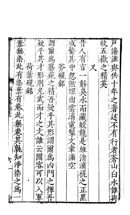 昔人有言一斛臭水而藏蛟龍是維涓滴視之正黒或蟄其中忽然躍出雲滃電掣文章滿空