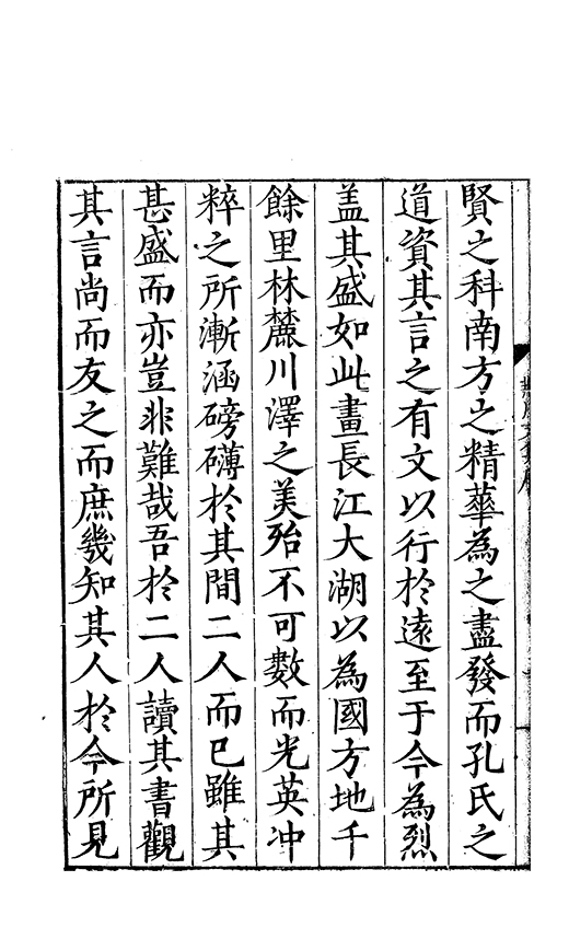 賢之科南方之精華為之盡發而孔氏之道資其言之有文以行扵逺至于今為烈盖其盛如此畫長江大湖以為國方地千餘里林麓川澤之美殆不可數而光英冲粹之所漸涵磅礴扵其間二人而已雖其甚盛而亦
