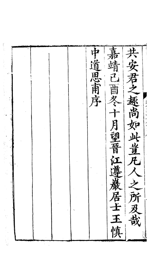 嘉靖己酉冬十月望晉江遵巖居士王慎中道思甫序