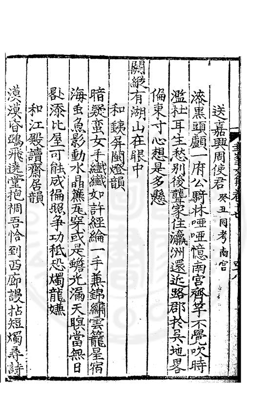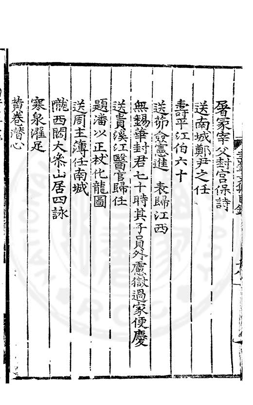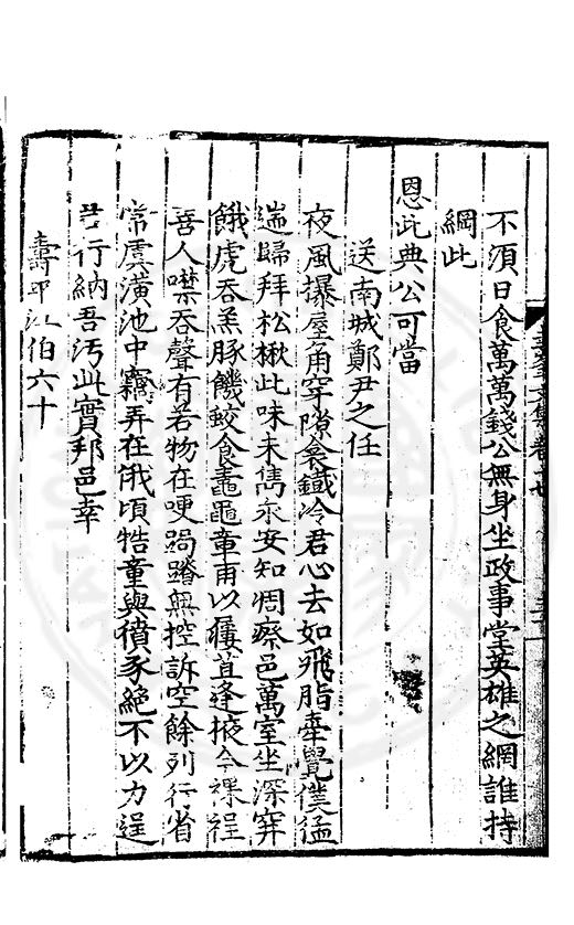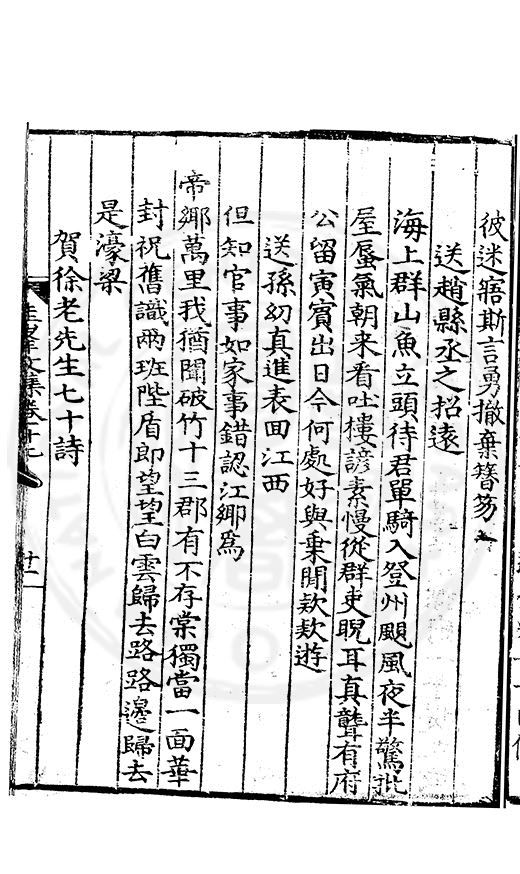 老於離别倍傷神珍重單車赴召身喜見王師□赤幟免逢黎庻逐黄巾重縻好爵周班舊却厭刑書鄭鑄新瀛海東邉幾隣竝依然相迓笑公貧