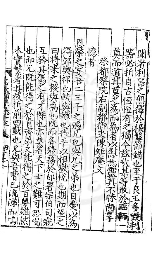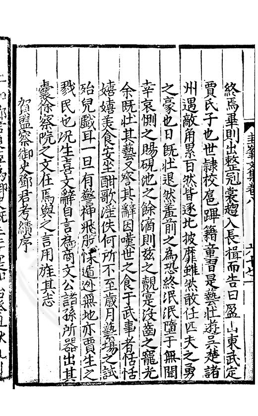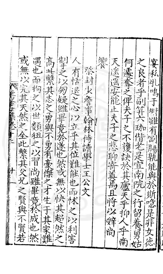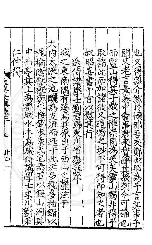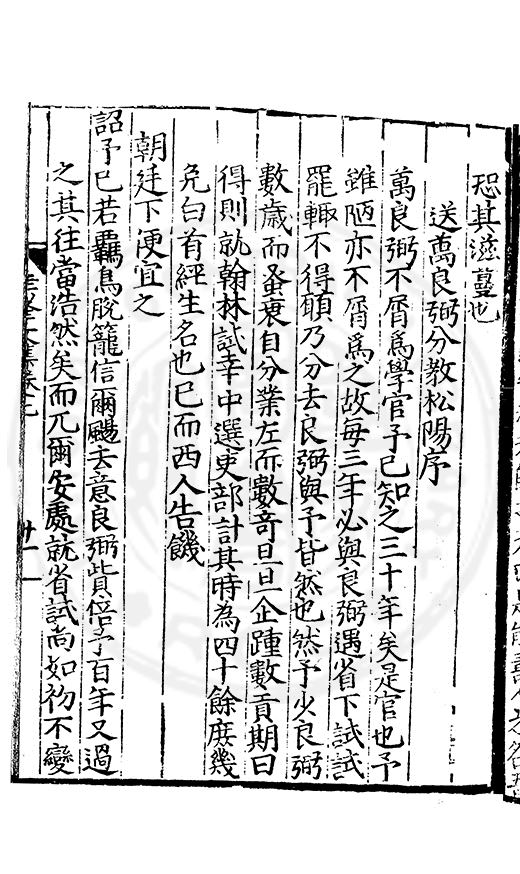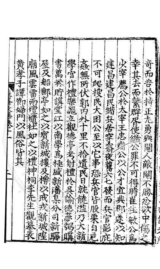 數易藁不憚人知先生之文之竒而不知由苦心中來也又可以易視乎哉舊刻本凡六卷予以為當存梓里日按旴方知爲荊本也本且遺佚郷士夫家亦罕有存焉者噫先生之文可俾其湮淪若此哉乃命郡官従其子姓復得續集二卷奏議一卷並鑱諸梓以傳郡官丐予題其首顧予學殖荒落惡能叙先生
