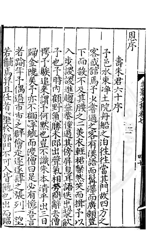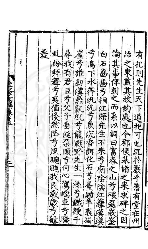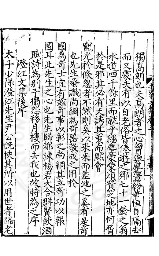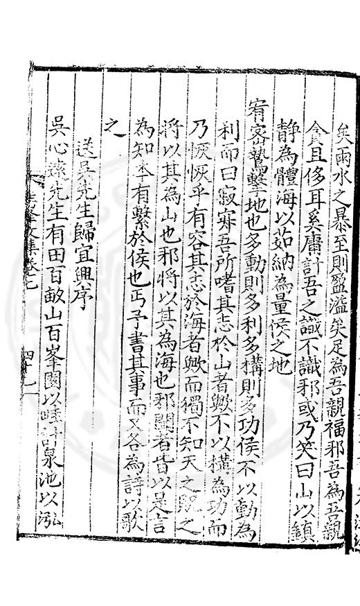 圭峯之所以文者爲序信若韓子爲宗師有作絶類宗師足以備古今之遺獨吾郡也哉昔人登鶴樓獨崔詩遂閣筆不賦矧良勝寡昧何以當末簡之役顧於先生靣受法程嘗從圭峯之後得其緒論弗敢隱也夫天下之至變者