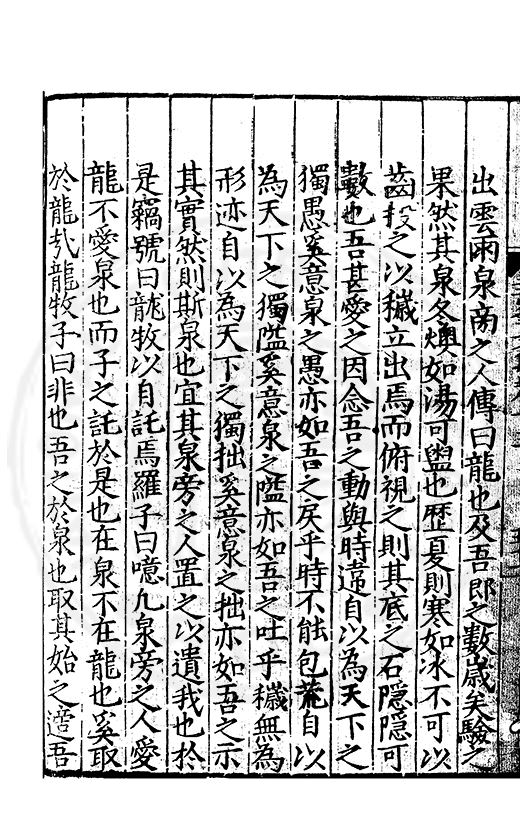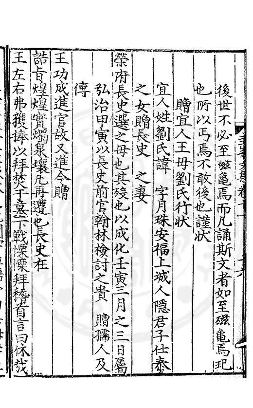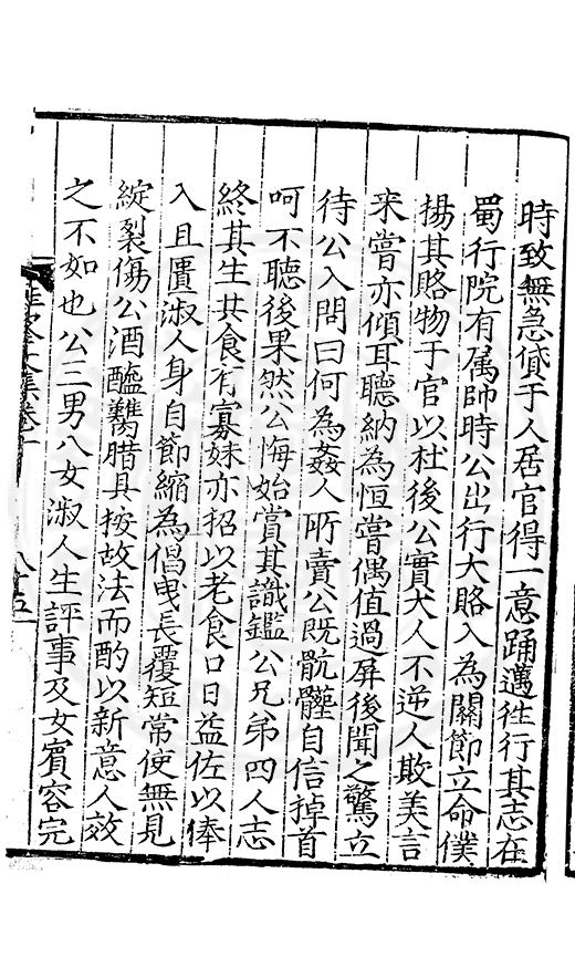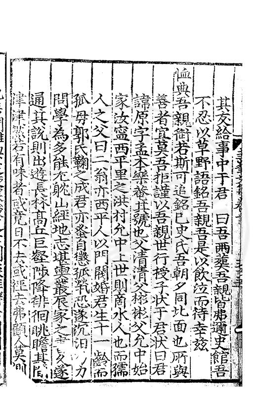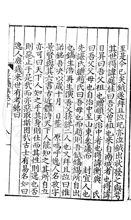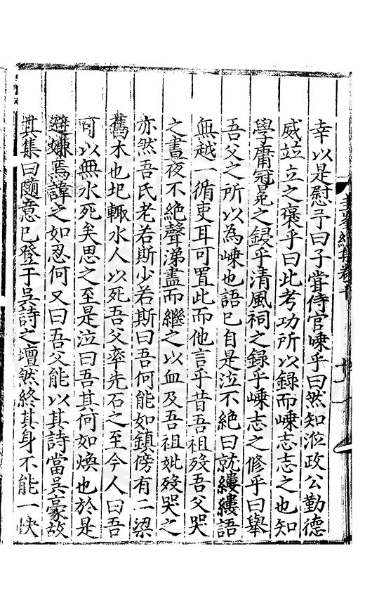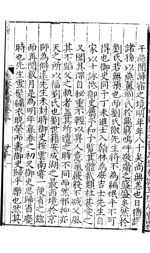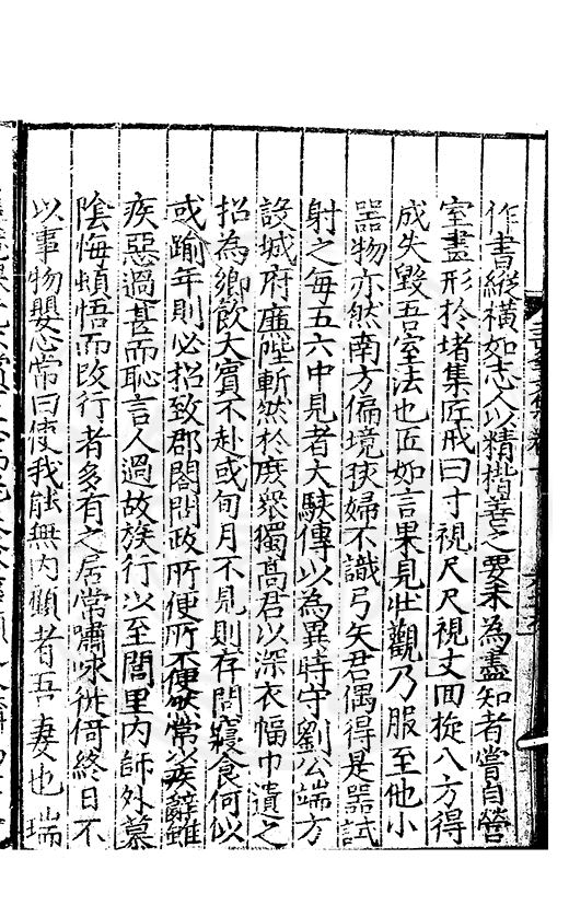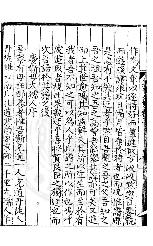 尋其脉絡則自龍門禹宂逺不可窺說者謂先生之言出左氏愚獨謂其直泝盤誥之支餘也雖然亦豈易能哉□者宋元君召畫史一史後至儃儃然獨就舘舎觧衣盤礴累日乃命筆則入神矣聞先生為文必嘔心積慮至扃戸牗或距木石隱度逾旬日或遲嵗時神生境具而後命筆稍渉扵萎陋詘誕之微雖