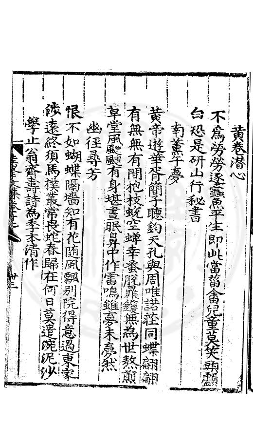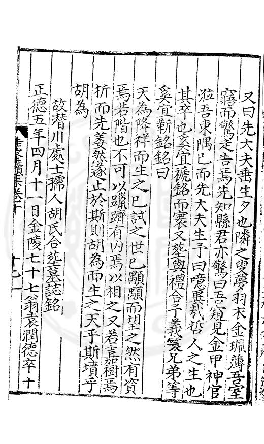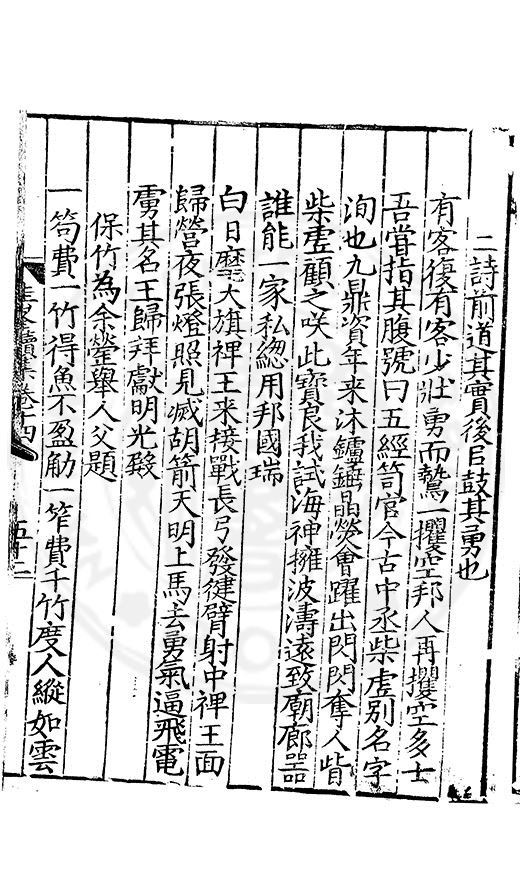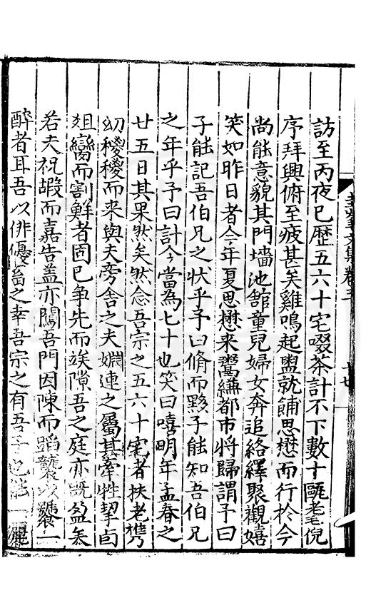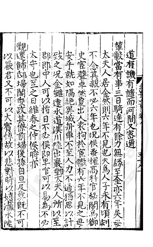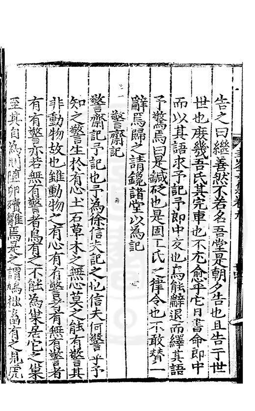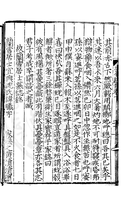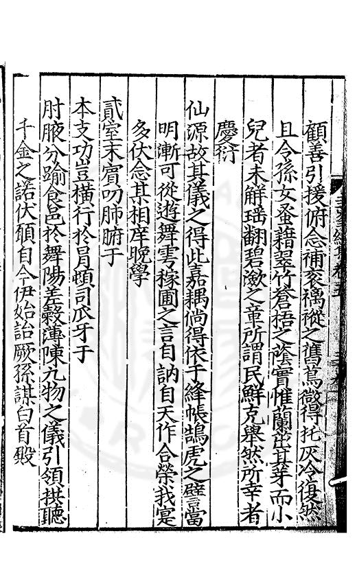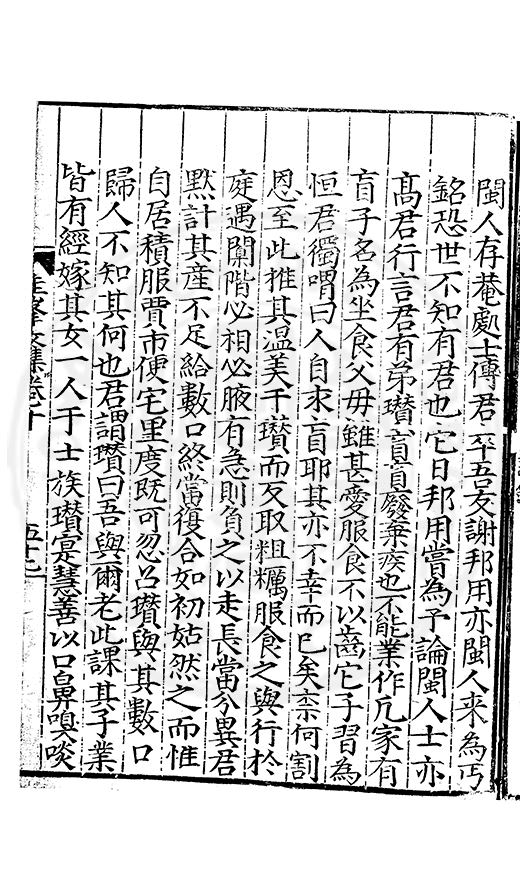 尋其脉絡則自龍門禹宂逺不可窺說者謂先生之言出左氏愚獨謂其直泝盤誥之支餘也雖然亦豈易能哉□者宋元君召畫史一史後至儃儃然獨就舘舎觧衣盤礴累日乃命筆則入神矣聞先生為文必嘔心積慮至扃戸牗或距木石隱度逾旬日或遲嵗時神生境具而後命筆稍渉扵萎陋詘誕之微雖