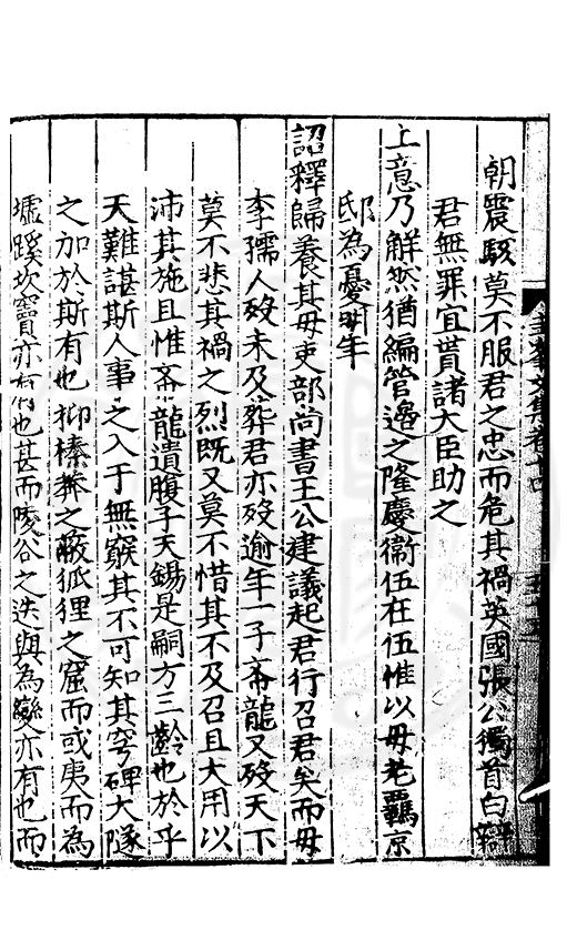 荣王借使當時顧命大臣以死助陛下諍留荣王張綵雖狡急扵助逆彼知有天潢血属之在肘腋其敢萌是心乎是無血属之在肘腋足以召亂明矣幸天啓聖衷卒殱滅之瑾滅之後可保决無瑾乎若綵則今班行中未必無綵也何以明之凢以公呼瑾者起此軰保能不以事瑾者事之乎綵獨悪着而先發焉耳頼列聖神靈俾瑾綵識膚慮淺其迹易見萬一有操莾者出扵其間不知何以殱之自古人主之孤立其危若是哉宋之司馬光婁寅亮其豈非忠扵社稷其卒有頼