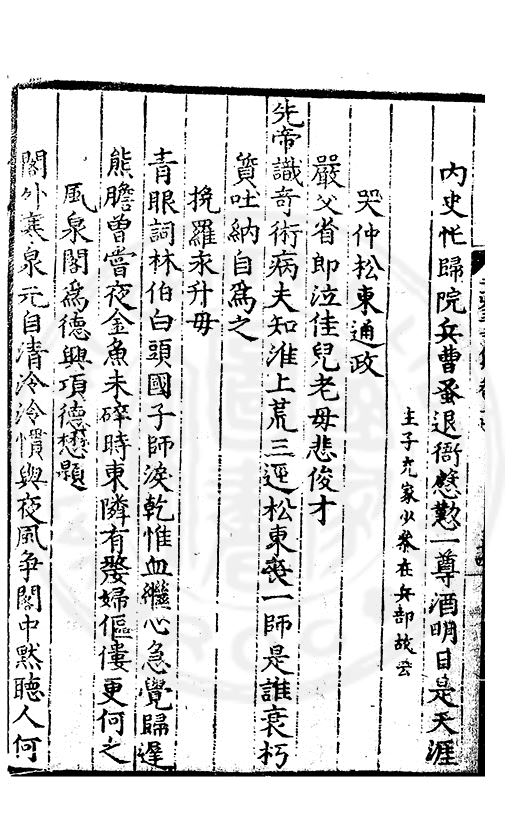 老諸公衮衮覺誰憂巳傳新將韓擒虎無復偷兒奡盪舟定到五更宫漏下可忘問寢到龍樓