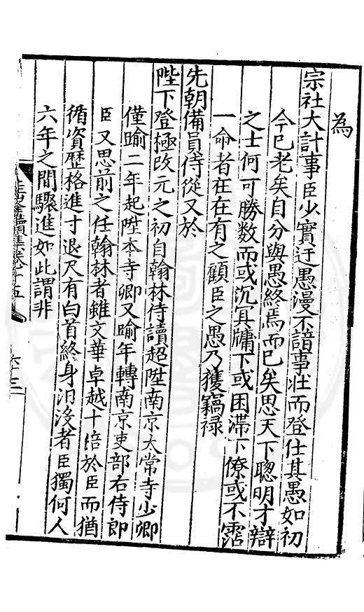 臣少實迂愚漫不諳事壮而登仕其愚如初今巳老矣自分與愚終焉而巳矣思天下聦明才辯之士何可勝数而或沉冥牖下或困滯下僚或不霑一命者在在有之顧臣之愚乃獲竊禄先朝備員侍從又於陛下登極攺元之初自翰林侍讀超陞南京太常寺少卿僅踰二年起陞本寺卿又踰年轉南京吏部右侍郎臣又思前之任翰林者雖文華卓越十倍於臣而猶循資歴格進寸退尺有白首終身汨沒者臣獨何人六年之間驟進如此謂非
