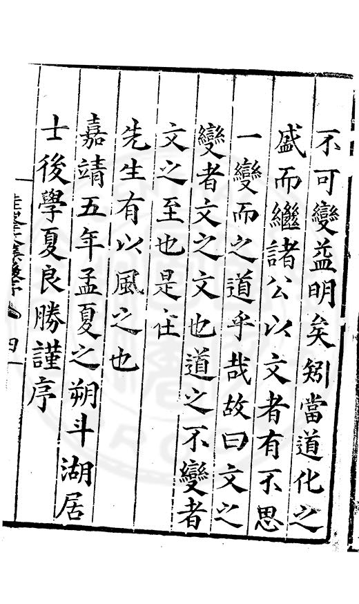 不可變益明矣矧當道化之盛而繼諸公以文者有不思一變而之道乎哉故曰文以變者文之文也道之不變者文之至也是在先生有以風之也
