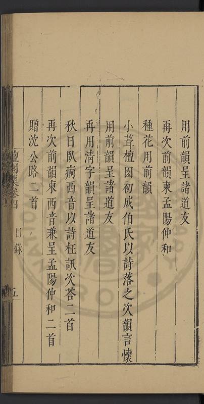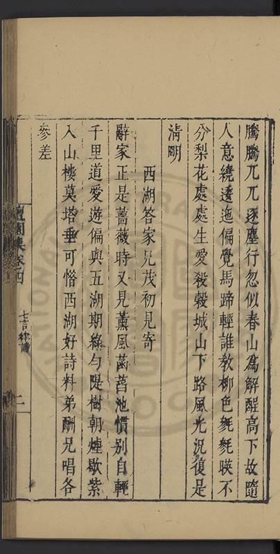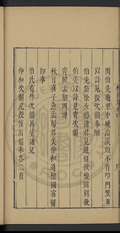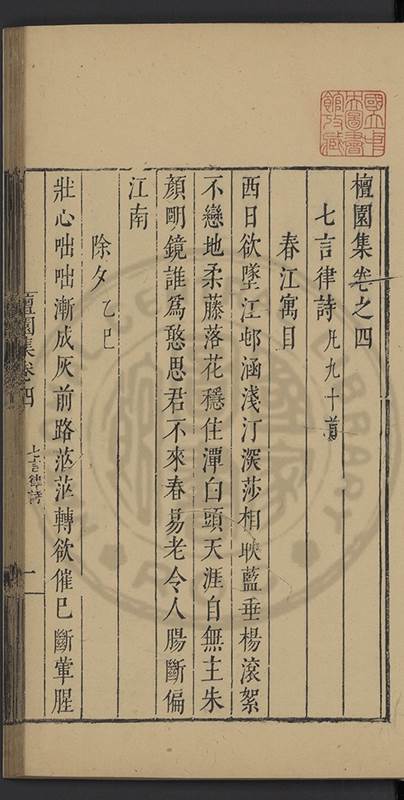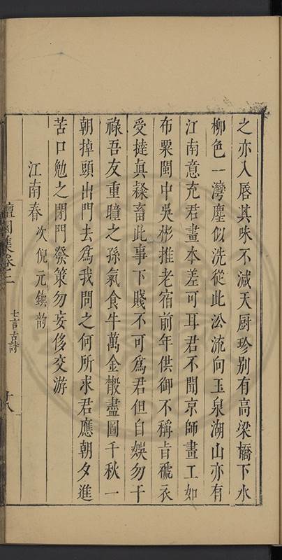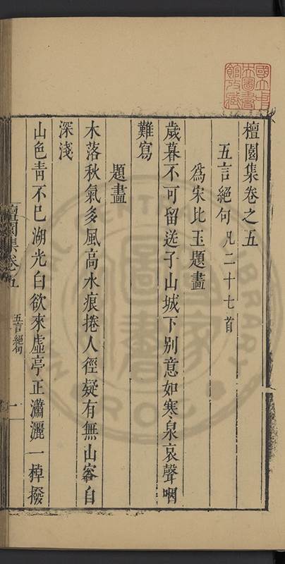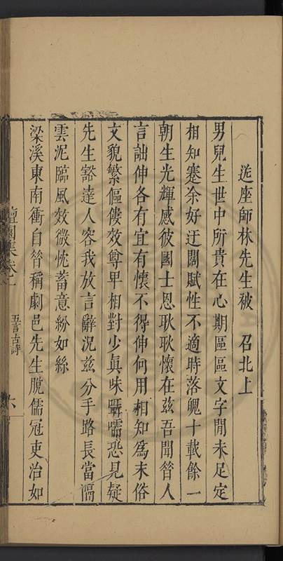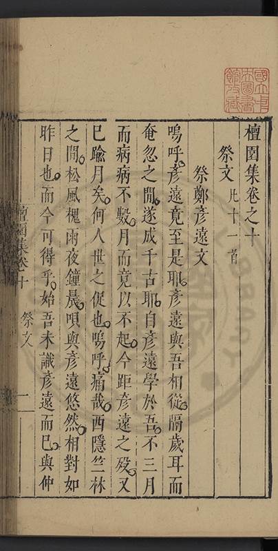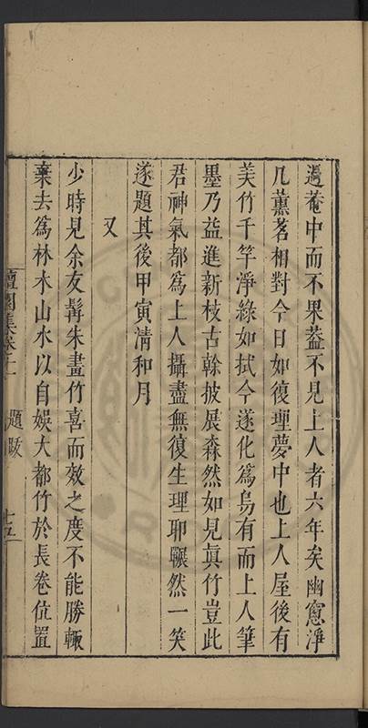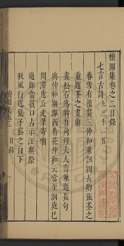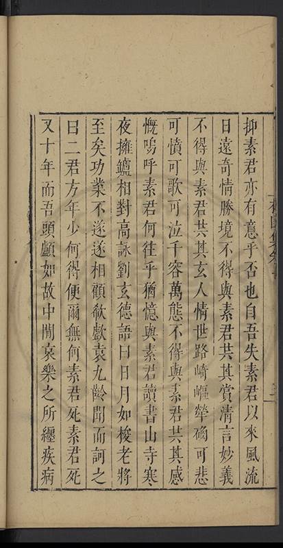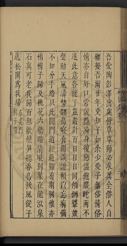 而絕愛叔父近作𡮢言長蘅之澄澹精緻受之之綿密彪炳皆七言之長城也至於五言古詩如南歸諸什則孟陽先生直口諷手抄比於淵朙靡詰之詩非僅徒鮑謝輩元白而已叔父身病而心壯病愈之日若不逃之空寂焚棄筆硯則詩文之斐灼方將與歲月俱無窮檀園一集殆非叔父之大全也宜之尚欲砥礪舉業晞覘科第未能根蒂前古承叔父通經之訓以究先太史未竟之業文章之道茫然望涯縱復覃精