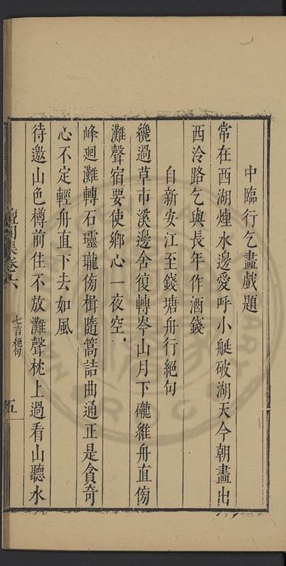 錢塘襟江帶湖山水映發昬旦百變出郭數武耳目豁然扁舟草履隨地得勝天下佳山水可居可遊可以飲食寢興其中而朝夕不厭者無